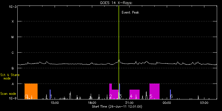 EIS Observation timeline overlay to GOES-Xray curve Code 1" 2" 40" 266" EIS Observations list for this event: STUDY ACRONYM ID DATE OBSERVED DESCRIPTION NOAA# TARGET 0 dhb_atlas_120m_30" | 22983 | 2011/06/26 12:36:04 | Detailed spectral atlas of AR core | 1236 | Quiet Sun TIMELINE ID DATE OBSERVED FITS FILE XCEN (+W/-E) YCEN (+N/-S) DUR ----------------------------------------------------------------------------------------------------------------- 22983 | 2011/06/26 12:36:04.000 | eis_l0_20110626_123604.fits.gz | 903.59 | 260.48 | 1h0m48s 1 PRY_slot_context_v3 | 22984 | 2011/06/26 14:36:52 | Spectral atlas of AR core (context) | 1236 | Active Region TIMELINE ID DATE OBSERVED FITS FILE XCEN (+W/-E) YCEN (+N/-S) DUR ----------------------------------------------------------------------------------------------------------------- 22984 | 2011/06/26 14:36:52.000 | eis_l0_20110626_143652.fits.gz | 859.82 | 214.40 | 2m56s 2 HPW021_VEL_120x512v2 | 22964 | 2011/06/26 19:23:19 | Detailed scan across active region (1 | | Active Region TIMELINE ID DATE OBSERVED FITS FILE XCEN (+W/-E) YCEN (+N/-S) DUR ----------------------------------------------------------------------------------------------------------------- 22964 | 2011/06/26 19:23:19.000 | eis_l0_20110626_192319.fits.gz | 983.37 | 214.40 | 10m55s 22964 | 2011/06/26 19:34:16.000 | eis_l0_20110626_193416.fits.gz | 983.37 | 214.40 | 35m56s 3 PRY_slot_context_v3 | 22965 | 2011/06/26 20:10:37 | Detailed scan across active region (co | 1236 | Active Region TIMELINE ID DATE OBSERVED FITS FILE XCEN (+W/-E) YCEN (+N/-S) DUR ----------------------------------------------------------------------------------------------------------------- 22965 | 2011/06/26 20:10:37.000 | eis_l0_20110626_201037.fits.gz | 859.89 | 214.40 | 2m56s 4 HPW021_VEL_120x512v2 | 22966 | 2011/06/26 21:00:50 | Detailed scan across active region (2 | 1236 | Active Region TIMELINE ID DATE OBSERVED FITS FILE XCEN (+W/-E) YCEN (+N/-S) DUR ----------------------------------------------------------------------------------------------------------------- 22966 | 2011/06/26 21:00:50.000 | eis_l0_20110626_210050.fits.gz | 874.54 | 214.40 | 46m53s 5 HPW021_VEL_120x512v2 | 22967 | 2011/06/26 22:36:39 | Detailed scan across active region (3 | 1239 | Active Region TIMELINE ID DATE OBSERVED FITS FILE XCEN (+W/-E) YCEN (+N/-S) DUR ----------------------------------------------------------------------------------------------------------------- 22967 | 2011/06/26 22:36:39.000 | eis_l0_20110626_223639.fits.gz | 765.87 | 214.33 | 46m52s 6 PRY_slot_context_v3 | 22968 | 2011/06/27 00:15:32 | Detailed scan across active region (co | 1236 | Active Region TIMELINE ID DATE OBSERVED FITS FILE XCEN (+W/-E) YCEN (+N/-S) DUR ----------------------------------------------------------------------------------------------------------------- 22968 | 2011/06/27 00:15:32.000 | eis_l0_20110627_001532.fits.gz | 859.82 | 214.56 | 2m57s : Check study information : Download file : View thumbnails For this event, also check for: