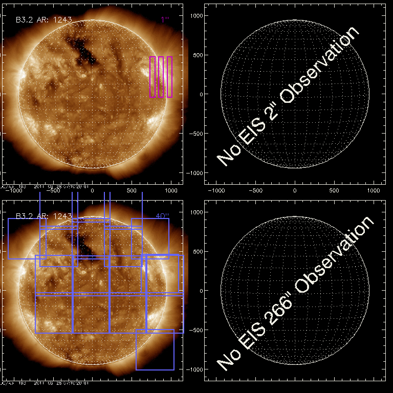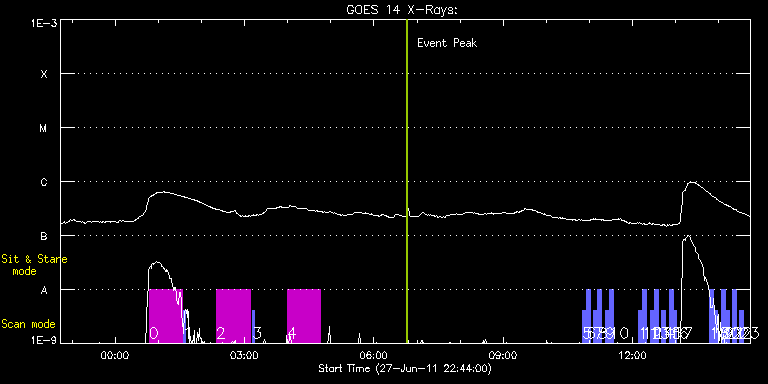 EIS Observation timeline overlay to GOES-Xray curve Code 1" 2" 40" 266" EIS Observations list for this event: STUDY ACRONYM ID DATE OBSERVED DESCRIPTION NOAA# TARGET 0 HPW021_VEL_120x512v2 | 22974 | 2011/06/28 00:47:18 | Detailed scan across active region (1 | | Active Region TIMELINE ID DATE OBSERVED FITS FILE XCEN (+W/-E) YCEN (+N/-S) DUR ----------------------------------------------------------------------------------------------------------------- 22974 | 2011/06/28 00:47:18.000 | eis_l0_20110628_004718.fits.gz | 983.37 | 214.40 | 46m54s 1 PRY_slot_context_v3 | 22975 | 2011/06/28 01:34:36 | Detailed scan across active region (co | 1241 | Active Region TIMELINE ID DATE OBSERVED FITS FILE XCEN (+W/-E) YCEN (+N/-S) DUR ----------------------------------------------------------------------------------------------------------------- 22975 | 2011/06/28 01:34:36.000 | eis_l0_20110628_013436.fits.gz | 859.89 | 214.56 | 2m57s 2 HPW021_VEL_120x512v2 | 22976 | 2011/06/28 02:20:49 | Detailed scan across active region (2 | | Active Region TIMELINE ID DATE OBSERVED FITS FILE XCEN (+W/-E) YCEN (+N/-S) DUR ----------------------------------------------------------------------------------------------------------------- 22976 | 2011/06/28 02:20:49.000 | eis_l0_20110628_022049.fits.gz | 874.54 | 214.40 | 46m53s 3 PRY_slot_context_v3 | 22978 | 2011/06/28 03:11:31 | Detailed scan across active region (co | 1241 | Active Region TIMELINE ID DATE OBSERVED FITS FILE XCEN (+W/-E) YCEN (+N/-S) DUR ----------------------------------------------------------------------------------------------------------------- 22978 | 2011/06/28 03:11:31.000 | eis_l0_20110628_031131.fits.gz | 859.82 | 214.48 | 2m57s 4 HPW021_VEL_120x512v2 | 22977 | 2011/06/28 03:59:19 | Detailed scan across active region (3 | | Active Region TIMELINE ID DATE OBSERVED FITS FILE XCEN (+W/-E) YCEN (+N/-S) DUR ----------------------------------------------------------------------------------------------------------------- 22977 | 2011/06/28 03:59:19.000 | eis_l0_20110628_035919.fits.gz | 765.72 | 214.48 | 46m53s 5 full_sun_slot_scan_1 | 22985 | 2011/06/28 10:50:34 | HOP 130 (1T of 15) | | Quiet Sun TIMELINE ID DATE OBSERVED FITS FILE XCEN (+W/-E) YCEN (+N/-S) DUR ----------------------------------------------------------------------------------------------------------------- 22985 | 2011/06/28 10:50:34.000 | eis_l0_20110628_105034.fits.gz | 920.84 | 185.65 | 5m27s 6 full_sun_slot_scan_1 | 22986 | 2011/06/28 10:56:06 | HOP 130 (1B of 15) | 1240 | Quiet Sun TIMELINE ID DATE OBSERVED FITS FILE XCEN (+W/-E) YCEN (+N/-S) DUR ----------------------------------------------------------------------------------------------------------------- 22986 | 2011/06/28 10:56:06.000 | eis_l0_20110628_105606.fits.gz | 920.69 | -286.35 | 5m27s 7 full_sun_slot_scan_1 | 22987 | 2011/06/28 11:06:14 | HOP 130 (2T of 15) | 1241 | Quiet Sun TIMELINE ID DATE OBSERVED FITS FILE XCEN (+W/-E) YCEN (+N/-S) DUR ----------------------------------------------------------------------------------------------------------------- 22987 | 2011/06/28 11:06:14.000 | eis_l0_20110628_110614.fits.gz | 452.64 | 185.50 | 5m27s 8 full_sun_slot_scan_1 | 22988 | 2011/06/28 11:11:46 | HOP 130 (2B of 15) | | Quiet Sun TIMELINE ID DATE OBSERVED FITS FILE XCEN (+W/-E) YCEN (+N/-S) DUR ----------------------------------------------------------------------------------------------------------------- 22988 | 2011/06/28 11:11:46.000 | eis_l0_20110628_111146.fits.gz | 452.64 | -286.42 | 5m27s 9 full_sun_slot_scan_1 | 22989 | 2011/06/28 11:22:14 | HOP 130 (3T of 15) | 1242 | Quiet Sun TIMELINE ID DATE OBSERVED FITS FILE XCEN (+W/-E) YCEN (+N/-S) DUR ----------------------------------------------------------------------------------------------------------------- 22989 | 2011/06/28 11:22:14.000 | eis_l0_20110628_112214.fits.gz | -15.32 | 185.50 | 5m27s 10 full_sun_slot_scan_1 | 22990 | 2011/06/28 11:27:46 | HOP 130 (3B of 15) | | Quiet Sun TIMELINE ID DATE OBSERVED FITS FILE XCEN (+W/-E) YCEN (+N/-S) DUR ----------------------------------------------------------------------------------------------------------------- 22990 | 2011/06/28 11:27:46.000 | eis_l0_20110628_112746.fits.gz | -15.32 | -286.42 | 5m27s 11 full_sun_slot_scan_1 | 22991 | 2011/06/28 12:08:44 | HOP 130 (4T of 15) | | Quiet Sun TIMELINE ID DATE OBSERVED FITS FILE XCEN (+W/-E) YCEN (+N/-S) DUR ----------------------------------------------------------------------------------------------------------------- 22991 | 2011/06/28 12:08:44.000 | eis_l0_20110628_120844.fits.gz | -483.29 | 185.58 | 5m27s 12 full_sun_slot_scan_1 | 22992 | 2011/06/28 12:14:16 | HOP 130 (4B of 15) | | Quiet Sun TIMELINE ID DATE OBSERVED FITS FILE XCEN (+W/-E) YCEN (+N/-S) DUR ----------------------------------------------------------------------------------------------------------------- 22992 | 2011/06/28 12:14:16.000 | eis_l0_20110628_121416.fits.gz | -483.21 | -286.50 | 5m27s 13 full_sun_slot_scan_1 | 22993 | 2011/06/28 12:24:44 | HOP 130 (5T of 15) | | Quiet Sun TIMELINE ID DATE OBSERVED FITS FILE XCEN (+W/-E) YCEN (+N/-S) DUR ----------------------------------------------------------------------------------------------------------------- 22993 | 2011/06/28 12:24:44.000 | eis_l0_20110628_122444.fits.gz | -9884.72 | -9777.20 | 5m27s 14 full_sun_slot_scan_1 | 22994 | 2011/06/28 12:30:16 | HOP 130 (5B of 15) | | Quiet Sun TIMELINE ID DATE OBSERVED FITS FILE XCEN (+W/-E) YCEN (+N/-S) DUR ----------------------------------------------------------------------------------------------------------------- 22994 | 2011/06/28 12:30:16.000 | eis_l0_20110628_123016.fits.gz | -9884.72 | -10249.20 | 5m26s 15 full_sun_slot_scan_1 | 22995 | 2011/06/28 12:40:44 | HOP 130 (6 of 15) | | Quiet Sun TIMELINE ID DATE OBSERVED FITS FILE XCEN (+W/-E) YCEN (+N/-S) DUR ----------------------------------------------------------------------------------------------------------------- 22995 | 2011/06/28