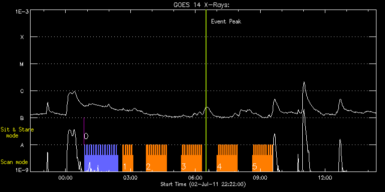 EIS Observation timeline overlay to GOES-Xray curve Code 1" 2" 40" 266" EIS Observations list for this event: STUDY ACRONYM ID DATE OBSERVED DESCRIPTION NOAA# TARGET 0 Alignment_modify_v2 | 23136 | 2011/07/03 00:50:20 | Co-alignment program | | Quiet Sun TIMELINE ID DATE OBSERVED FITS FILE XCEN (+W/-E) YCEN (+N/-S) DUR ----------------------------------------------------------------------------------------------------------------- 23136 | 2011/07/03 00:50:20.000 | eis_l0_20110703_005020.fits.gz | -9854.52 | -9963.20 | 1m 23136 | 2011/07/03 00:51:45.000 | eis_l0_20110703_005145.fits.gz | -9893.96 | -9963.20 | 2m34s 23136 | 2011/07/03 00:54:53.000 | eis_l0_20110703_005453.fits.gz | -9893.96 | -9963.20 | 2m34s 23136 | 2011/07/03 00:58:01.000 | eis_l0_20110703_005801.fits.gz | -9893.96 | -9963.20 | 2m33s 23136 | 2011/07/03 01:01:08.000 | eis_l0_20110703_010108.fits.gz | -9893.96 | -9963.20 | 2m34s 23136 | 2011/07/03 01:04:16.000 | eis_l0_20110703_010416.fits.gz | -9893.96 | -9963.20 | 2m34s 23136 | 2011/07/03 01:07:23.000 | eis_l0_20110703_010723.fits.gz | -9893.96 | -9963.20 | 2m34s 23136 | 2011/07/03 01:10:31.000 | eis_l0_20110703_011031.fits.gz | -9893.96 | -9963.20 | 2m34s 23136 | 2011/07/03 01:13:38.000 | eis_l0_20110703_011338.fits.gz | -9893.96 | -9963.20 | 2m34s 23136 | 2011/07/03 01:16:46.000 | eis_l0_20110703_011646.fits.gz | -9893.96 | -9963.20 | 2m33s 23136 | 2011/07/03 01:19:53.000 | eis_l0_20110703_011953.fits.gz | -9893.96 | -9963.20 | 2m34s 23136 | 2011/07/03 01:23:01.000 | eis_l0_20110703_012301.fits.gz | -9893.96 | -9963.20 | 2m33s 23136 | 2011/07/03 01:26:08.000 | eis_l0_20110703_012608.fits.gz | -9893.96 | -9963.20 | 2m34s 23136 | 2011/07/03 01:29:15.000 | eis_l0_20110703_012915.fits.gz | -9893.96 | -9963.20 | 2m34s 23136 | 2011/07/03 01:32:23.000 | eis_l0_20110703_013223.fits.gz | -9893.96 | -9963.20 | 2m34s 23136 | 2011/07/03 01:35:31.000 | eis_l0_20110703_013531.fits.gz | -9893.96 | -9963.20 | 2m33s 23136 | 2011/07/03 01:38:38.000 | eis_l0_20110703_013838.fits.gz | -9893.96 | -9963.20 | 2m34s 23136 | 2011/07/03 01:41:46.000 | eis_l0_20110703_014146.fits.gz | -9893.96 | -9963.20 | 2m34s 23136 | 2011/07/03 01:44:53.000 | eis_l0_20110703_014453.fits.gz | -9893.96 | -9963.20 | 2m34s 23136 | 2011/07/03 01:48:01.000 | eis_l0_20110703_014801.fits.gz | -9893.96 | -9963.20 | 2m34s 23136 | 2011/07/03 01:51:08.000 | eis_l0_20110703_015108.fits.gz | -9893.96 | -9963.20 | 2m34s 23136 | 2011/07/03 01:54:16.000 | eis_l0_20110703_015416.fits.gz | -9893.96 | -9963.20 | 2m34s 23136 | 2011/07/03 01:57:23.000 | eis_l0_20110703_015723.fits.gz | -9893.96 | -9963.20 | 2m34s 23136 | 2011/07/03 02:00:31.000 | eis_l0_20110703_020031.fits.gz | -9893.96 | -9963.20 | 2m33s 23136 | 2011/07/03 02:03:38.000 | eis_l0_20110703_020338.fits.gz | -9893.96 | -9963.20 | 2m34s 23136 | 2011/07/03 02:06:46.000 | eis_l0_20110703_020646.fits.gz | -9893.96 | -9963.20 | 2m34s 23136 | 2011/07/03 02:09:53.000 | eis_l0_20110703_020953.fits.gz | -9893.96 | -9963.20 | 2m34s 23136 | 2011/07/03 02:13:01.000 | eis_l0_20110703_021301.fits.gz | -9893.96 | -9963.20 | 2m34s 23136 | 2011/07/03 02:16:08.000 | eis_l0_20110703_021608.fits.gz | -9893.96 | -9963.20 | 2m34s 23136 | 2011/07/03 02:19:16.000 | eis_l0_20110703_021916.fits.gz | -9893.96 | -9963.20 | 2m34s 23136 | 2011/07/03 02:22:24.000 | eis_l0_20110703_022224.fits.gz | -9893.96 | -9963.20 | 2m33s 1 HH_Flare_60x152f | 23147 | 2011/07/03 02:38:35 | Active Region observations - Aoki | 1243 | Flare TIMELINE ID DATE OBSERVED FITS FILE XCEN (+W/-E) YCEN (+N/-S) DUR ----------------------------------------------------------------------------------------------------------------- 23147 | 2011/07/03 02:38:35.000 | eis_l0_20110703_023835.fits.gz | -137.31 | 180.96 | 2m48s 23147 | 2011/07/03 02:41:25.000 | eis_l0_20110703_024125.fits.gz | -136.93 | 181.03 | 2m49s 23147 | 2011/07/03 02:44:17.000 | eis_l0_20110703_024417.fits.gz | -136.54 | 180.80 | 2m48s 23147 | 2011/07/03 02:47:08.000 | eis_l0_20110703_024708.fits.gz | -136.08 | 180.88 | 2m48s 23147 | 2011/07/03 02:49:58.000 | eis_l0_20110703_024958.fits.gz | -135.69 | 180.88 | 2m49s 23147 | 2011/07/03 02:52:49.000 | eis_l0_20110703_025249.fits.gz | -9869.98 | -9963.20 | 2m48s 23147 | 2011/07/03 02:55:40.000 | eis_l0_20110703_025540.fits.gz | -9869.98 | -9963.20 | 2m48s 23147 | 2011/07/03 02:58:30.000 | eis_l0_20110703_025830.fits.gz | -9869.98 | -9963.20 | 2m48s 23147 | 2011/07/03 03:01:21.000 | eis_l0_20110703_030121.fits.gz | -9869.98 | -9963.20 | 2m48s 23147 | 2011/07/03 03:04:12.000 | eis_l0_20110703_030412.fits.gz | -9869.98 | -9963.20 | 2m49s 2 HH_Flare_60x152f | 23148 | 2011/07/03 03:43:13 | Active Region observations - Aoki | 1243 | Flare TIMELINE ID DATE OBSERVED FITS FILE XCEN (+W/-E) YCEN (+N/-S) DUR ----------------------------------------------------------------------------------------------------------------- 23148 | 2011/07/03 03:43:13.000 | eis_l0_20110703_034313.fits.gz | -9869.98 | -9963.20 | 2m48s 23148 | 2011/07/03 03:46:04.000 | eis_l0_20110703_034604.fits.gz | -9869.98 | -9963.20 | 1m46s 23148 | 2011/07/03 03:47:57.000 | eis_l0_20110703_034757.fits.gz | -9869.98 | -9963.20 | 55s 23148 | 2011/07/03 03:48:54.000 | eis_l0_20110703_034854.fits.gz | -9869.98 | -9963.20 | 2m48s 23148 | 2011/07/03 03:51:45.000 | eis_l0_20110703_035145.fits.gz | -126.26 | 180.80 | 2m48s 23148 | 2011/07/03 03:54:36.000 | eis_l0_20110703_035436.fits.gz | -126.26 | 180.65 | 2m48s 23148 | 2011/07/03 03:57:26.000 | eis_l0_20110703_035726.fits.gz | -125.80 | 180.88 | 2m48s 23148 | 2011/07/03 04:00:17.000 | eis_l0_20110703_040017.fits.gz | -125.42 | 180.65 | 2m48s 23148 | 2011/07/03 04:03:08.000 | eis_l0_20110703_040308.fits.gz | -125.03 | 180.72 | 2m47s 23148 | 2011/07/03 04:05:58.000 | eis_l0_20110703_040558.fits.gz | -124.57 | 180.65 | 2m48s 23148 | 2011/07/03 04:08:49.000 | eis_l0_20110703_040849.fits.gz | -124.10 | 180.57 | 2m48s 23148 | 2011/07/03 04:11:40.000 | eis_l0_20110703_041140.fits.gz | -123.79 | 180.72 | 2m48s 23148 | 2011/0