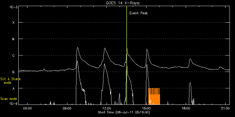 EIS Observation timeline overlay to GOES-Xray curve Code 1" 2" 40" 266" EIS Observations list for this event: STUDY ACRONYM ID DATE OBSERVED DESCRIPTION NOAA# TARGET 0 qub_hi-cad_flare_v1 | 23198 | 2011/07/08 15:10:40 | HOP 188: Joint Obs. with ROSA-IBIS | | Flare TIMELINE ID DATE OBSERVED FITS FILE XCEN (+W/-E) YCEN (+N/-S) DUR ----------------------------------------------------------------------------------------------------------------- 23198 | 2011/07/08 15:10:40.000 | eis_l0_20110708_151040.fits.gz | -703.23 | 154.54 | 3m10s 23198 | 2011/07/08 15:13:53.000 | eis_l0_20110708_151353.fits.gz | -703.00 | 154.46 | 3m10s 23198 | 2011/07/08 15:17:05.000 | eis_l0_20110708_151705.fits.gz | -702.69 | 154.69 | 3m10s 23198 | 2011/07/08 15:20:18.000 | eis_l0_20110708_152018.fits.gz | -702.38 | 154.46 | 3m10s 23198 | 2011/07/08 15:23:31.000 | eis_l0_20110708_152331.fits.gz | -702.07 | 154.54 | 3m10s 23198 | 2011/07/08 15:26:43.000 | eis_l0_20110708_152643.fits.gz | -701.76 | 154.38 | 3m10s 23198 | 2011/07/08 15:29:56.000 | eis_l0_20110708_152956.fits.gz | -701.53 | 154.38 | 3m10s 23198 | 2011/07/08 15:33:08.000 | eis_l0_20110708_153308.fits.gz | -701.22 | 154.46 | 3m10s 23198 | 2011/07/08 15:36:21.000 | eis_l0_20110708_153621.fits.gz | -700.83 | 154.30 | 3m9s 23198 | 2011/07/08 15:39:33.000 | eis_l0_20110708_153933.fits.gz | -700.52 | 154.30 | 3m10s 23198 | 2011/07/08 15:42:45.000 | eis_l0_20110708_154245.fits.gz | -700.22 | 154.30 | 3m10s 23198 | 2011/07/08 15:45:58.000 | eis_l0_20110708_154558.fits.gz | -699.91 | 154.23 | 3m10s 23198 | 2011/07/08 15:49:11.000 | eis_l0_20110708_154911.fits.gz | -699.60 | 154.30 | 3m9s 23198 | 2011/07/08 15:52:22.000 | eis_l0_20110708_155222.fits.gz | -699.21 | 154.23 | 3m11s 23198 | 2011/07/08 15:55:35.000 | eis_l0_20110708_155535.fits.gz | -698.98 | 154.23 | 3m10s 23198 | 2011/07/08 15:58:47.000 | eis_l0_20110708_155847.fits.gz | -698.67 | 154.23 | 3m10s : Check study information : Download file : View thumbnails For this event, also check for: