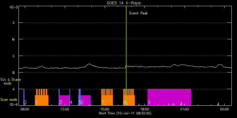 EIS Observation timeline overlay to GOES-Xray curve Code 1" 2" 40" 266" EIS Observations list for this event: STUDY ACRONYM ID DATE OBSERVED DESCRIPTION NOAA# TARGET 0 PRY_slot_context_v3 | 23226 | 2011/07/10 08:54:16 | context img of AR11247 | 1247 | Active Region TIMELINE ID DATE OBSERVED FITS FILE XCEN (+W/-E) YCEN (+N/-S) DUR ----------------------------------------------------------------------------------------------------------------- 23226 | 2011/07/10 08:54:16.000 | eis_l0_20110710_085416.fits.gz | 94.52 | -406.59 | 2m56s 1 IUU_SCAN_STEPS_002 | 23227 | 2011/07/10 09:45:33 | returning AR study (Warren) | | Active Region TIMELINE ID DATE OBSERVED FITS FILE XCEN (+W/-E) YCEN (+N/-S) DUR ----------------------------------------------------------------------------------------------------------------- 23227 | 2011/07/10 09:45:33.000 | eis_l0_20110710_094533.fits.gz | 115.37 | -406.51 | 5m24s 23227 | 2011/07/10 09:51:00.000 | eis_l0_20110710_095100.fits.gz | 116.14 | -406.59 | 5m24s 23227 | 2011/07/10 09:56:27.000 | eis_l0_20110710_095627.fits.gz | 116.92 | -406.67 | 5m24s 23227 | 2011/07/10 10:01:54.000 | eis_l0_20110710_100154.fits.gz | 117.61 | -406.59 | 5m23s 23227 | 2011/07/10 10:07:21.000 | eis_l0_20110710_100721.fits.gz | 118.38 | -406.59 | 5m23s 23227 | 2011/07/10 10:12:47.000 | eis_l0_20110710_101247.fits.gz | 119.08 | -406.74 | 5m24s 23227 | 2011/07/10 10:18:14.000 | eis_l0_20110710_101814.fits.gz | 119.93 | -406.59 | 5m24s 23227 | 2011/07/10 10:23:41.000 | eis_l0_20110710_102341.fits.gz | 120.55 | -406.51 | 5m23s 23227 | 2011/07/10 10:29:08.000 | eis_l0_20110710_102908.fits.gz | 121.40 | -406.59 | 5m23s 23227 | 2011/07/10 10:34:35.000 | eis_l0_20110710_103435.fits.gz | 122.17 | -406.59 | 5m23s 23227 | 2011/07/10 10:40:01.000 | eis_l0_20110710_104001.fits.gz | 122.94 | -406.51 | 5m24s 2 PRY_slot_context_v3 | 23228 | 2011/07/10 11:32:19 | context img of AR 11247 | 1247 | Active Region TIMELINE ID DATE OBSERVED FITS FILE XCEN (+W/-E) YCEN (+N/-S) DUR ----------------------------------------------------------------------------------------------------------------- 23228 | 2011/07/10 11:32:19.000 | eis_l0_20110710_113219.fits.gz | 116.46 | -406.67 | 2m57s 3 js2_decon_ref_vel_LT | 23229 | 2011/07/10 11:35:27 | EIS decon test (ref vel.) | | Active Region TIMELINE ID DATE OBSERVED FITS FILE XCEN (+W/-E) YCEN (+N/-S) DUR ----------------------------------------------------------------------------------------------------------------- 23229 | 2011/07/10 11:35:27.000 | eis_l0_20110710_113527.fits.gz | 132.32 | -406.67 | 45m7s 4 js2_decon_slot_sc_LT | 23230 | 2011/07/10 12:21:00 | EIS decon test (slot img) | | Active Region TIMELINE ID DATE OBSERVED FITS FILE XCEN (+W/-E) YCEN (+N/-S) DUR ----------------------------------------------------------------------------------------------------------------- 23230 | 2011/07/10 12:21:00.000 | eis_l0_20110710_122100.fits.gz | 123.70 | -406.44 | 1m23s 5 js2_decon_slot_sc_LT | 23231 | 2011/07/10 13:02:13 | EIS decon test (slot img) | | Active Region TIMELINE ID DATE OBSERVED FITS FILE XCEN (+W/-E) YCEN (+N/-S) DUR ----------------------------------------------------------------------------------------------------------------- 23231 | 2011/07/10 13:02:13.000 | eis_l0_20110710_130213.fits.gz | 129.42 | -406.44 | 1m23s 23231 | 2011/07/10 13:03:39.000 | eis_l0_20110710_130339.fits.gz | 129.57 | -406.44 | 1m23s 23231 | 2011/07/10 13:05:06.000 | eis_l0_20110710_130506.fits.gz | 129.88 | -406.51 | 1m22s 23231 | 2011/07/10 13:06:32.000 | eis_l0_20110710_130632.fits.gz | 130.11 | -406.36 | 1m23s 23231 | 2011/07/10 13:07:59.000 | eis_l0_20110710_130759.fits.gz | 130.26 | -406.51 | 1m23s 23231 | 2011/07/10 13:09:25.000 | eis_l0_20110710_130925.fits.gz | 130.42 | -406.51 | 1m23s 6 js2_decon_ref_vel_LT | 23232 | 2011/07/10 13:11:00 | EIS decon test (ref vel.) | | Active Region TIMELINE ID DATE OBSERVED FITS FILE XCEN (+W/-E) YCEN (+N/-S) DUR ----------------------------------------------------------------------------------------------------------------- 23232 | 2011/07/10 13:11:00.000 | eis_l0_20110710_131100.fits.gz | 145.38 | -406.44 | 45m5s 7 qub_hi-cad_flare_v1 | 23209 | 2011/07/10 14:44:26 | HOP 188: Joint Obs. with ROSA-IBIS | | Flare TIMELINE ID DATE OBSERVED FITS FILE XCEN (+W/-E) YCEN (+N/-S) DUR ----------------------------------------------------------------------------------------------------------------- 23209 | 2011/07/10 14:44:26.000 | eis_l0_20110710_144426.fits.gz | 139.74 | -360.44 | 3m10s 23209 | 2011/07/10 14:47:39.000 | eis_l0_20110710_144739.fits.gz | 140.13 | -360.44 | 3m9s 23209 | 2011/07/10 14:50:51.000 | eis_l0_20110710_145051.fits.gz | 140.52 | -360.44 | 3m10s 23209 | 2011/07/10 14:54:03.000 | eis_l0_20110710_145403.fits.gz | 141.13 | -360.59 | 3m10s 23209 | 2011/07/10 14:57:16.000 | eis_l0_20110710_145716.fits.gz | 141.52 | -360.36 | 3m9s 23209 | 2011/07/10 15:00:28.000 | eis_l0_20110710_150028.fits.gz | 141.91 | -360.51 | 2m59s 23209 | 2011/07/10 15:03:36.000 | eis_l0_20110710_150336.fits.gz | 142.29 | -360.51 | 2s 23209 | 2011/07/10 15:03:40.000 | eis_l0_20110710_150340.fits.gz | 142.37 | -360.51 | 3m11s 23209 | 2011/07/10 15:06:53.000 | eis_l0_20110710_150653.fits.gz | 142.76 | -360.44 | 3m10s 23209 | 2011/07/10 15:10:05.000 | eis_l0_20110710_151005.fits.gz | 143.22 | -360.59 | 3m10s 23209 | 2011/07/10 15:13:18.000 | eis_l0_20110710_151318.fits.gz | 143.61 | -360.44 | 3m9s 23209 | 2011/07/10 15:16:30.000 | eis_l0_20110710_151630.fits.gz | 144.07 | -360.36 | 3m10s 23209 | 2011/07/10 15:19:43.000 | eis_l0_20110710_151943.fits.gz | 144.46 | -360.36 | 3m10s 23209 | 2011/07/10 15:22:56.000 | eis_l0_20110710_152256.fits.gz | 144.92 | -360.44 | 3m9s 23209 | 2011/07/10 15:26:08.000 | eis_l0_20110710_152608.fits.gz | 145.38 | -360.44 | 3m10s 23209 | 2011/07/10 15:29:20.000 | eis_l0_20110710_152920.fits.gz | 145.85 | -360.51 | 3m10s 23209 | 2011/07/10 15:32:33.000 | eis_l0_20110710_153233.fits.gz | 146.31 | -360.44 | 2m18s 23209 | 2011/07/10 