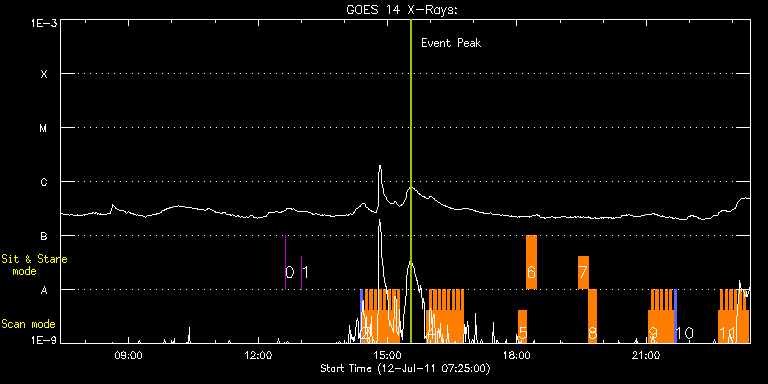 EIS Observation timeline overlay to GOES-Xray curve Code 1" 2" 40" 266" EIS Observations list for this event: STUDY ACRONYM ID DATE OBSERVED DESCRIPTION NOAA# TARGET 0 regcal070 | 23253 | 2011/07/12 12:37:43 | | | Engineering TIMELINE ID DATE OBSERVED FITS FILE XCEN (+W/-E) YCEN (+N/-S) DUR ----------------------------------------------------------------------------------------------------------------- 23253 | 2011/07/12 12:37:43.000 | eis_l0_20110712_123743.fits.gz | 522.34 | -192.79 | 2s 1 regcal076 | 23280 | 2011/07/12 13:00:12 | Flatfield, 1 exposure, led 100ms, ccd | | Engineering TIMELINE ID DATE OBSERVED FITS FILE XCEN (+W/-E) YCEN (+N/-S) DUR ----------------------------------------------------------------------------------------------------------------- 23280 | 2011/07/12 13:00:12.000 | eis_l0_20110712_130012.fits.gz | 524.81 | -448.63 | 1s 2 PRY_slot_context_v3 | 23254 | 2011/07/12 14:22:20 | Context for HOP 188 | 1247 | Active Region TIMELINE ID DATE OBSERVED FITS FILE XCEN (+W/-E) YCEN (+N/-S) DUR ----------------------------------------------------------------------------------------------------------------- 23254 | 2011/07/12 14:22:20.000 | eis_l0_20110712_142220.fits.gz | 504.40 | -398.25 | 2m56s 3 qub_hi-cad_flare_v1 | 23255 | 2011/07/12 14:25:42 | HOP 188: Joint Solar Flare Observation | | Flare TIMELINE ID DATE OBSERVED FITS FILE XCEN (+W/-E) YCEN (+N/-S) DUR ----------------------------------------------------------------------------------------------------------------- 23255 | 2011/07/12 14:25:42.000 | eis_l0_20110712_142542.fits.gz | 503.05 | -351.33 | 3m10s 23255 | 2011/07/12 14:28:54.000 | eis_l0_20110712_142854.fits.gz | 503.36 | -351.33 | 3m10s 23255 | 2011/07/12 14:32:07.000 | eis_l0_20110712_143207.fits.gz | 503.75 | -351.33 | 3m10s 23255 | 2011/07/12 14:35:20.000 | eis_l0_20110712_143520.fits.gz | 504.05 | -351.17 | 3m10s 23255 | 2011/07/12 14:38:33.000 | eis_l0_20110712_143833.fits.gz | 504.44 | -351.09 | 3m9s 23255 | 2011/07/12 14:41:45.000 | eis_l0_20110712_144145.fits.gz | 504.83 | -351.25 | 3m9s 23255 | 2011/07/12 14:44:57.000 | eis_l0_20110712_144457.fits.gz | 505.21 | -351.09 | 3m9s 23255 | 2011/07/12 14:48:09.000 | eis_l0_20110712_144809.fits.gz | 505.45 | -351.02 | 3m10s 23255 | 2011/07/12 14:51:21.000 | eis_l0_20110712_145121.fits.gz | 505.91 | -351.17 | 3m10s 23255 | 2011/07/12 14:54:34.000 | eis_l0_20110712_145434.fits.gz | 506.22 | -351.17 | 3m10s 23255 | 2011/07/12 14:57:47.000 | eis_l0_20110712_145747.fits.gz | 506.53 | -351.02 | 3m10s 23255 | 2011/07/12 15:00:59.000 | eis_l0_20110712_150059.fits.gz | 506.91 | -351.02 | 3m10s 23255 | 2011/07/12 15:04:11.000 | eis_l0_20110712_150411.fits.gz | 507.30 | -350.94 | 3m10s 23255 | 2011/07/12 15:07:24.000 | eis_l0_20110712_150724.fits.gz | 507.69 | -351.09 | 3m9s 23255 | 2011/07/12 15:10:36.000 | eis_l0_20110712_151036.fits.gz | 508.07 | -351.02 | 3m9s 23255 | 2011/07/12 15:13:48.000 | eis_l0_20110712_151348.fits.gz | 508.38 | -350.94 | 3m10s 4 qub_hi-cad_flare_v1 | 23256 | 2011/07/12 15:54:44 | HOP 188: Joint Solar Flare Observation | | Flare TIMELINE ID DATE OBSERVED FITS FILE XCEN (+W/-E) YCEN (+N/-S) DUR ----------------------------------------------------------------------------------------------------------------- 23256 | 2011/07/12 15:54:44.000 | eis_l0_20110712_155444.fits.gz | 512.78 | -350.86 | 3m9s 23256 | 2011/07/12 15:57:56.000 | eis_l0_20110712_155756.fits.gz | 513.33 | -350.78 | 3m10s 23256 | 2011/07/12 16:01:08.000 | eis_l0_20110712_160108.fits.gz | 513.63 | -350.63 | 3m10s 23256 | 2011/07/12 16:04:21.000 | eis_l0_20110712_160421.fits.gz | 513.94 | -350.71 | 3m9s 23256 | 2011/07/12 16:07:33.000 | eis_l0_20110712_160733.fits.gz | 514.33 | -350.71 | 3m10s 23256 | 2011/07/12 16:10:45.000 | eis_l0_20110712_161045.fits.gz | 514.72 | -350.71 | 3m10s 23256 | 2011/07/12 16:13:58.000 | eis_l0_20110712_161358.fits.gz | 515.02 | -350.71 | 3m10s 23256 | 2011/07/12 16:17:10.000 | eis_l0_20110712_161710.fits.gz | 515.33 | -350.71 | 3m10s 23256 | 2011/07/12 16:20:22.000 | eis_l0_20110712_162022.fits.gz | 515.72 | -350.63 | 3m10s 23256 | 2011/07/12 16:23:35.000 | eis_l0_20110712_162335.fits.gz | 516.18 | -350.63 | 3m10s 23256 | 2011/07/12 16:26:47.000 | eis_l0_20110712_162647.fits.gz | 516.41 | -350.55 | 3m10s 23256 | 2011/07/12 16:30:00.000 | eis_l0_20110712_163000.fits.gz | 516.80 | -350.63 | 3m10s 23256 | 2011/07/12 16:33:12.000 | eis_l0_20110712_163312.fits.gz | 517.19 | -350.55 | 3m10s 23256 | 2011/07/12 16:36:25.000 | eis_l0_20110712_163625.fits.gz | 517.50 | -350.55 | 3m9s 23256 | 2011/07/12 16:39:36.000 | eis_l0_20110712_163936.fits.gz | 517.80 | -350.48 | 3m10s 23256 | 2011/07/12 16:42:49.000 | eis_l0_20110712_164249.fits.gz | 518.19 | -350.48 | 3m10s 5 Cool_loop_response | 23257 | 2011/07/12 18:02:41 | HOP 191: Joint Obs. with BBSO | | Active Region TIMELINE ID DATE OBSERVED FITS FILE XCEN (+W/-E) YCEN (+N/-S) DUR ----------------------------------------------------------------------------------------------------------------- 23257 | 2011/07/12 18:02:41.000 | eis_l0_20110712_180241.fits.gz | 233.67 | 91.50 | 10m48s 6 madj_qs_sns_15m | 23258 | 2011/07/12 18:13:33 | HOP 191: Joint Obs. with BBSO | | Quiet Sun TIMELINE ID DATE OBSERVED FITS FILE XCEN (+W/-E) YCEN (+N/-S) DUR ----------------------------------------------------------------------------------------------------------------- 23258 | 2011/07/12 18:13:33.000 | eis_l0_20110712_181333.fits.gz | 235.87 | 91.42 | 13m8s 7 madj_qs_sns_15m | 23259 | 2011/07/12 19:26:13 | HOP 191: Joint Obs. with BBSO | | Quiet Sun TIMELINE ID DATE OBSERVED FITS FILE XCEN (+W/-E) YCEN (+N/-S) DUR ----------------------------------------------------------------------------------------------------------------- 23259 | 2011/07/12 19:26:13.000 | eis_l0_20110712_192613.fits.gz | 246.38 | 91.66 | 13m9s 8 Cool_loop_response | 23260 | 2011/07/12 19:39:26 | HOP 191: Joint Obs. with BBSO | | Active Region TIMELINE ID DATE OBSERVED FITS FILE XCEN (+W/-E) YCEN (+N/-S) DUR 