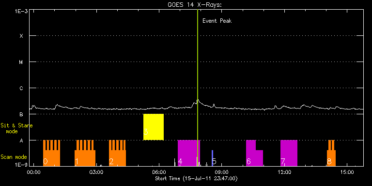 EIS Observation timeline overlay to GOES-Xray curve Code 1" 2" 40" 266" EIS Observations list for this event: STUDY ACRONYM ID DATE OBSERVED DESCRIPTION NOAA# TARGET 0 HH_Flare+AR_180x152 | 23307 | 2011/07/16 00:27:12 | EIS activity hunting | 1251 | Flare TIMELINE ID DATE OBSERVED FITS FILE XCEN (+W/-E) YCEN (+N/-S) DUR ----------------------------------------------------------------------------------------------------------------- 23307 | 2011/07/16 00:27:12.000 | eis_l0_20110716_002712.fits.gz | -281.84 | 189.70 | 5m19s 23307 | 2011/07/16 00:32:34.000 | eis_l0_20110716_003234.fits.gz | -281.06 | 189.39 | 5m17s 23307 | 2011/07/16 00:37:54.000 | eis_l0_20110716_003754.fits.gz | -280.14 | 189.23 | 5m18s 23307 | 2011/07/16 00:43:15.000 | eis_l0_20110716_004315.fits.gz | -279.60 | 189.46 | 5m18s 23307 | 2011/07/16 00:48:36.000 | eis_l0_20110716_004836.fits.gz | -278.90 | 189.46 | 5m18s 23307 | 2011/07/16 00:53:57.000 | eis_l0_20110716_005357.fits.gz | -278.05 | 189.31 | 5m17s 23307 | 2011/07/16 00:59:28.000 | eis_l0_20110716_005928.fits.gz | -277.28 | 189.31 | 5m6s 23307 | 2011/07/16 01:04:37.000 | eis_l0_20110716_010437.fits.gz | -276.66 | 189.15 | 5m18s 23307 | 2011/07/16 01:09:58.000 | eis_l0_20110716_010958.fits.gz | -275.73 | 189.31 | 5m17s 1 HH_Flare+AR_180x152 | 23308 | 2011/07/16 01:57:42 | EIS activity hunting | 1251 | Flare TIMELINE ID DATE OBSERVED FITS FILE XCEN (+W/-E) YCEN (+N/-S) DUR ----------------------------------------------------------------------------------------------------------------- 23308 | 2011/07/16 01:57:42.000 | eis_l0_20110716_015742.fits.gz | -271.09 | 189.08 | 5m19s 23308 | 2011/07/16 02:03:04.000 | eis_l0_20110716_020304.fits.gz | -270.24 | 189.08 | 5m17s 23308 | 2011/07/16 02:08:24.000 | eis_l0_20110716_020824.fits.gz | -269.54 | 189.15 | 5m18s 23308 | 2011/07/16 02:13:45.000 | eis_l0_20110716_021345.fits.gz | -268.69 | 189.00 | 5m17s 23308 | 2011/07/16 02:19:05.000 | eis_l0_20110716_021905.fits.gz | -268.08 | 189.00 | 5m18s 23308 | 2011/07/16 02:24:26.000 | eis_l0_20110716_022426.fits.gz | -267.30 | 188.92 | 5m19s 23308 | 2011/07/16 02:29:48.000 | eis_l0_20110716_022948.fits.gz | -266.53 | 188.92 | 5m18s 23308 | 2011/07/16 02:35:08.000 | eis_l0_20110716_023508.fits.gz | -265.76 | 188.92 | 5m18s 23308 | 2011/07/16 02:40:29.000 | eis_l0_20110716_024029.fits.gz | -264.98 | 188.85 | 5m18s 23308 | 2011/07/16 02:45:50.000 | eis_l0_20110716_024550.fits.gz | -264.29 | 188.92 | 5m19s 23308 | 2011/07/16 02:51:11.000 | eis_l0_20110716_025111.fits.gz | -263.44 | 188.77 | 5m19s 2 HH_Flare+AR_180x152 | 23309 | 2011/07/16 03:36:12 | EIS activity hunting | 1251 | Flare TIMELINE ID DATE OBSERVED FITS FILE XCEN (+W/-E) YCEN (+N/-S) DUR ----------------------------------------------------------------------------------------------------------------- 23309 | 2011/07/16 03:36:12.000 | eis_l0_20110716_033612.fits.gz | -255.26 | 188.69 | 5m19s 23309 | 2011/07/16 03:41:34.000 | eis_l0_20110716_034134.fits.gz | -254.34 | 188.69 | 5m18s 23309 | 2011/07/16 03:46:55.000 | eis_l0_20110716_034655.fits.gz | -253.56 | 188.61 | 5m18s 23309 | 2011/07/16 03:52:16.000 | eis_l0_20110716_035216.fits.gz | -252.87 | 188.54 | 5m18s 23309 | 2011/07/16 03:57:37.000 | eis_l0_20110716_035737.fits.gz | -252.02 | 188.69 | 5m18s 23309 | 2011/07/16 04:02:57.000 | eis_l0_20110716_040257.fits.gz | -251.25 | 188.38 | 5m19s 23309 | 2011/07/16 04:08:18.000 | eis_l0_20110716_040818.fits.gz | -250.55 | 188.54 | 5m18s 23309 | 2011/07/16 04:13:39.000 | eis_l0_20110716_041339.fits.gz | -249.70 | 188.46 | 5m17s 23309 | 2011/07/16 04:18:59.000 | eis_l0_20110716_041859.fits.gz | -249.08 | 188.54 | 2m49s 23309 | 2011/07/16 04:22:00.000 | eis_l0_20110716_042200.fits.gz | -248.62 | 188.54 | 2m17s 3 FLARE266_TEST1 | 23311 | 2011/07/16 05:15:03 | EIS Flare Trigger test: consecutive pl | 1250 | Active Region TIMELINE ID DATE OBSERVED FITS FILE XCEN (+W/-E) YCEN (+N/-S) DUR ----------------------------------------------------------------------------------------------------------------- 23311 | 2011/07/16 05:15:03.000 | eis_l0_20110716_051503.fits.gz | 206.44 | -523.85 | 56m47s 4 inn_ar_lmb_ra01 | 23312 | 2011/07/16 06:53:33 | Double-exposure raster across 11250 (W | | Active Region TIMELINE ID DATE OBSERVED FITS FILE XCEN (+W/-E) YCEN (+N/-S) DUR ----------------------------------------------------------------------------------------------------------------- 23312 | 2011/07/16 06:53:33.000 | eis_l0_20110716_065333.fits.gz | 350.30 | -523.54 | 1h3m7s 5 PRY_slot_context_v3 | 23313 | 2011/07/16 08:32:03 | Double-exposure raster across 11250 (W | 1250 | Active Region TIMELINE ID DATE OBSERVED FITS FILE XCEN (+W/-E) YCEN (+N/-S) DUR ----------------------------------------------------------------------------------------------------------------- 23313 | 2011/07/16 08:32:03.000 | eis_l0_20110716_083203.fits.gz | 346.35 | -523.23 | 2m56s 6 HPW021_VEL_120x512v2 | 23339 | 2011/07/16 10:10:21 | Observation of AR/CH outflow area | 1251 | Active Region TIMELINE ID DATE OBSERVED FITS FILE XCEN (+W/-E) YCEN (+N/-S) DUR ----------------------------------------------------------------------------------------------------------------- 23339 | 2011/07/16 10:10:21.000 | eis_l0_20110716_101021.fits.gz | -46.37 | 178.50 | 26m34s 23339 | 2011/07/16 10:36:57.000 | eis_l0_20110716_103657.fits.gz | -42.36 | 178.42 | 20m17s 7 HPW021_VEL_120x512v2 | 23340 | 2011/07/16 11:49:11 | Observation of AR loops | 1251 | Active Region TIMELINE ID DATE OBSERVED FITS FILE XCEN (+W/-E) YCEN (+N/-S) DUR ----------------------------------------------------------------------------------------------------------------- 23340 | 2011/07/16 11:49:11.000 | eis_l0_20110716_114911.fits.gz | -278.61 | 275.19 | 46m54s 8 AR_filament | 23314 | 2011/07/16 14:02:27 | The Formation and Evolution of Filamen | 1250 | Active Region TIMELINE ID DATE OBSERVED FITS FILE XCEN (+W/-E) YCEN (+N/-S) DUR ----------------------------------------------------------------------------------------