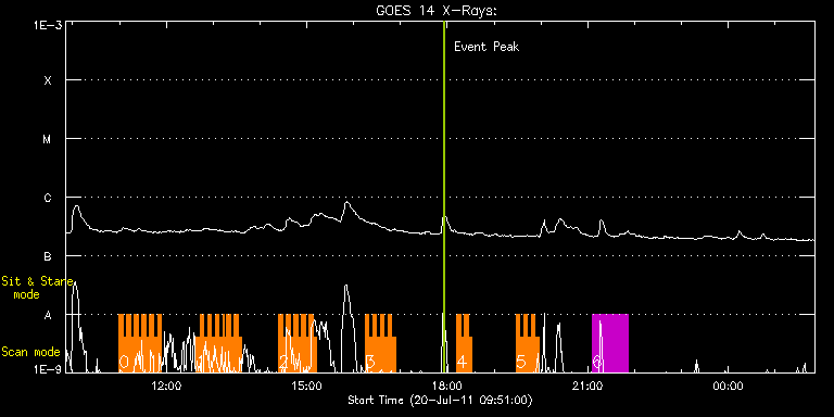 EIS Observation timeline overlay to GOES-Xray curve Code 1" 2" 40" 266" EIS Observations list for this event: STUDY ACRONYM ID DATE OBSERVED DESCRIPTION NOAA# TARGET 0 AR_filament | 23361 | 2011/07/20 10:59:42 | Vector Magnetic Field Structure Within | | Active Region TIMELINE ID DATE OBSERVED FITS FILE XCEN (+W/-E) YCEN (+N/-S) DUR ----------------------------------------------------------------------------------------------------------------- 23361 | 2011/07/20 10:59:42.000 | eis_l0_20110720_105942.fits.gz | 372.26 | 202.82 | 4m51s 23361 | 2011/07/20 11:04:36.000 | eis_l0_20110720_110436.fits.gz | 373.03 | 202.82 | 4m50s 23361 | 2011/07/20 11:09:29.000 | eis_l0_20110720_110929.fits.gz | 373.57 | 202.66 | 4m51s 23361 | 2011/07/20 11:14:22.000 | eis_l0_20110720_111422.fits.gz | 374.26 | 202.89 | 4m51s 23361 | 2011/07/20 11:19:16.000 | eis_l0_20110720_111916.fits.gz | 374.88 | 202.82 | 4m50s 23361 | 2011/07/20 11:24:09.000 | eis_l0_20110720_112409.fits.gz | 375.42 | 202.74 | 4m51s 23361 | 2011/07/20 11:29:03.000 | eis_l0_20110720_112903.fits.gz | 376.04 | 202.89 | 4m50s 23361 | 2011/07/20 11:33:56.000 | eis_l0_20110720_113356.fits.gz | 376.66 | 202.82 | 4m50s 23361 | 2011/07/20 11:38:49.000 | eis_l0_20110720_113849.fits.gz | 377.43 | 202.82 | 4m50s 23361 | 2011/07/20 11:43:42.000 | eis_l0_20110720_114342.fits.gz | 378.05 | 202.82 | 4m51s 23361 | 2011/07/20 11:48:36.000 | eis_l0_20110720_114836.fits.gz | 378.67 | 203.05 | 4m51s 1 AR_filament | 23368 | 2011/07/20 12:38:12 | Vector Magnetic Field Structure Within | | Active Region TIMELINE ID DATE OBSERVED FITS FILE XCEN (+W/-E) YCEN (+N/-S) DUR ----------------------------------------------------------------------------------------------------------------- 23368 | 2011/07/20 12:38:12.000 | eis_l0_20110720_123812.fits.gz | 385.08 | 203.20 | 4m50s 23368 | 2011/07/20 12:43:05.000 | eis_l0_20110720_124305.fits.gz | 385.85 | 203.12 | 4m50s 23368 | 2011/07/20 12:47:58.000 | eis_l0_20110720_124758.fits.gz | 386.47 | 203.12 | 4m50s 23368 | 2011/07/20 12:52:51.000 | eis_l0_20110720_125251.fits.gz | 387.09 | 203.20 | 4m50s 23368 | 2011/07/20 12:57:44.000 | eis_l0_20110720_125744.fits.gz | 387.70 | 203.20 | 4m50s 23368 | 2011/07/20 13:02:37.000 | eis_l0_20110720_130237.fits.gz | 388.40 | 203.20 | 4m51s 23368 | 2011/07/20 13:07:31.000 | eis_l0_20110720_130731.fits.gz | 389.02 | 203.28 | 4m50s 23368 | 2011/07/20 13:12:24.000 | eis_l0_20110720_131224.fits.gz | 389.64 | 203.20 | 1m20s 23368 | 2011/07/20 13:14:21.000 | eis_l0_20110720_131421.fits.gz | 389.87 | 203.28 | 2m54s 23368 | 2011/07/20 13:17:18.000 | eis_l0_20110720_131718.fits.gz | 390.25 | 203.28 | 4m50s 23368 | 2011/07/20 13:22:11.000 | eis_l0_20110720_132211.fits.gz | 390.95 | 203.28 | 4m50s 23368 | 2011/07/20 13:27:04.000 | eis_l0_20110720_132704.fits.gz | 391.57 | 203.28 | 4m51s 23368 | 2011/07/20 13:31:58.000 | eis_l0_20110720_133158.fits.gz | 392.18 | 203.36 | 4m51s 2 AR_filament | 23362 | 2011/07/20 14:24:12 | The Formation and Evolution of Filamen | 1256 | Active Region TIMELINE ID DATE OBSERVED FITS FILE XCEN (+W/-E) YCEN (+N/-S) DUR ----------------------------------------------------------------------------------------------------------------- 23362 | 2011/07/20 14:24:12.000 | eis_l0_20110720_142412.fits.gz | 421.38 | 50.72 | 4m50s 23362 | 2011/07/20 14:29:05.000 | eis_l0_20110720_142905.fits.gz | 421.92 | 50.72 | 4m50s 23362 | 2011/07/20 14:33:58.000 | eis_l0_20110720_143358.fits.gz | 422.62 | 50.79 | 4m50s 23362 | 2011/07/20 14:38:51.000 | eis_l0_20110720_143851.fits.gz | 423.32 | 50.72 | 4m50s 23362 | 2011/07/20 14:43:44.000 | eis_l0_20110720_144344.fits.gz | 423.86 | 50.87 | 4m51s 23362 | 2011/07/20 14:48:38.000 | eis_l0_20110720_144838.fits.gz | 424.55 | 50.79 | 4m50s 23362 | 2011/07/20 14:53:30.000 | eis_l0_20110720_145330.fits.gz | 425.32 | 50.87 | 4m51s 23362 | 2011/07/20 14:58:24.000 | eis_l0_20110720_145824.fits.gz | 425.86 | 50.79 | 4m50s 23362 | 2011/07/20 15:03:17.000 | eis_l0_20110720_150317.fits.gz | 426.64 | 50.95 | 4m50s 23362 | 2011/07/20 15:08:10.000 | eis_l0_20110720_150810.fits.gz | 427.26 | 50.95 | 4m50s 3 AR_filament | 23363 | 2011/07/20 16:14:42 | The Formation and Evolution of Filamen | 1256 | Active Region TIMELINE ID DATE OBSERVED FITS FILE XCEN (+W/-E) YCEN (+N/-S) DUR ----------------------------------------------------------------------------------------------------------------- 23363 | 2011/07/20 16:14:42.000 | eis_l0_20110720_161442.fits.gz | 436.14 | 51.26 | 4m38s 23363 | 2011/07/20 16:19:46.000 | eis_l0_20110720_161946.fits.gz | 436.83 | 51.33 | 4m39s 23363 | 2011/07/20 16:24:28.000 | eis_l0_20110720_162428.fits.gz | 437.53 | 51.26 | 4m50s 23363 | 2011/07/20 16:29:21.000 | eis_l0_20110720_162921.fits.gz | 438.15 | 51.26 | 4m50s 23363 | 2011/07/20 16:34:14.000 | eis_l0_20110720_163414.fits.gz | 438.77 | 51.33 | 4m50s 23363 | 2011/07/20 16:39:07.000 | eis_l0_20110720_163907.fits.gz | 439.38 | 51.41 | 4m50s 23363 | 2011/07/20 16:44:00.000 | eis_l0_20110720_164400.fits.gz | 440.08 | 51.41 | 4m50s 23363 | 2011/07/20 16:48:53.000 | eis_l0_20110720_164853.fits.gz | 440.77 | 51.41 | 4m50s 4 AR_filament | 23364 | 2011/07/20 18:12:12 | The Formation and Evolution of Filamen | 1256 | Active Region TIMELINE ID DATE OBSERVED FITS FILE XCEN (+W/-E) YCEN (+N/-S) DUR ----------------------------------------------------------------------------------------------------------------- 23364 | 2011/07/20 18:12:12.000 | eis_l0_20110720_181212.fits.gz | 151.40 | 51.95 | 4m50s 23364 | 2011/07/20 18:17:05.000 | eis_l0_20110720_181705.fits.gz | 452.59 | 51.87 | 4m51s 23364 | 2011/07/20 18:21:59.000 | eis_l0_20110720_182159.fits.gz | 453.06 | 51.87 | 4m50s 23364 | 2011/07/20 18:26:52.000 | eis_l0_20110720_182652.fits.gz | 453.75 | 51.95 | 4m50s 5 AR_filament | 23365 | 2011/07/20 19:28:11 | The Formation and Evolution of Filamen | | Active Region TIMELINE ID DATE OBSERVED FITS FILE XCEN (+W/-E) YCEN (+N/-S) DUR -----------------------------------------------------------------------