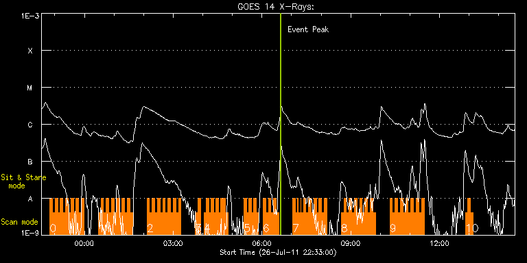 EIS Observation timeline overlay to GOES-Xray curve Code 1" 2" 40" 266" EIS Observations list for this event: STUDY ACRONYM ID DATE OBSERVED DESCRIPTION NOAA# TARGET 0 HH_Flare+AR_180x152 | 23468 | 2011/07/26 22:49:44 | AR observation | | Flare TIMELINE ID DATE OBSERVED FITS FILE XCEN (+W/-E) YCEN (+N/-S) DUR ----------------------------------------------------------------------------------------------------------------- 23468 | 2011/07/26 22:49:44.000 | eis_l0_20110726_224944.fits.gz | 488.42 | 286.32 | 5m17s 23468 | 2011/07/26 22:55:04.000 | eis_l0_20110726_225504.fits.gz | 489.04 | 286.24 | 5m17s 23468 | 2011/07/26 23:00:24.000 | eis_l0_20110726_230024.fits.gz | 489.74 | 286.24 | 5m18s 23468 | 2011/07/26 23:05:45.000 | eis_l0_20110726_230545.fits.gz | 490.36 | 286.17 | 5m17s 23468 | 2011/07/26 23:11:05.000 | eis_l0_20110726_231105.fits.gz | 490.89 | 286.24 | 5m18s 23468 | 2011/07/26 23:16:26.000 | eis_l0_20110726_231626.fits.gz | 491.51 | 286.32 | 5m18s 23468 | 2011/07/26 23:21:47.000 | eis_l0_20110726_232147.fits.gz | 492.13 | 286.32 | 5m18s 23468 | 2011/07/26 23:27:07.000 | eis_l0_20110726_232707.fits.gz | 492.75 | 286.32 | 5m18s 23468 | 2011/07/26 23:32:27.000 | eis_l0_20110726_233227.fits.gz | 493.37 | 286.32 | 5m18s 23468 | 2011/07/26 23:37:48.000 | eis_l0_20110726_233748.fits.gz | 493.98 | 286.40 | 5m17s 23468 | 2011/07/26 23:43:08.000 | eis_l0_20110726_234308.fits.gz | 494.53 | 286.48 | 5m18s 23468 | 2011/07/26 23:48:29.000 | eis_l0_20110726_234829.fits.gz | 495.14 | 286.55 | 5m18s 23468 | 2011/07/26 23:53:50.000 | eis_l0_20110726_235350.fits.gz | 495.76 | 286.48 | 5m18s 1 HH_Flare+AR_180x152 | 23469 | 2011/07/27 00:28:14 | AR observation | | Flare TIMELINE ID DATE OBSERVED FITS FILE XCEN (+W/-E) YCEN (+N/-S) DUR ----------------------------------------------------------------------------------------------------------------- 23469 | 2011/07/27 00:28:14.000 | eis_l0_20110727_002814.fits.gz | 499.70 | 286.86 | 5m17s 23469 | 2011/07/27 00:33:34.000 | eis_l0_20110727_003334.fits.gz | 500.24 | 286.86 | 5m18s 23469 | 2011/07/27 00:38:55.000 | eis_l0_20110727_003855.fits.gz | 500.94 | 286.78 | 5m18s 23469 | 2011/07/27 00:44:16.000 | eis_l0_20110727_004416.fits.gz | 501.56 | 286.86 | 5m18s 23469 | 2011/07/27 00:49:36.000 | eis_l0_20110727_004936.fits.gz | 502.10 | 286.94 | 5m18s 23469 | 2011/07/27 00:54:57.000 | eis_l0_20110727_005457.fits.gz | 502.79 | 286.86 | 5m18s 23469 | 2011/07/27 01:00:18.000 | eis_l0_20110727_010018.fits.gz | 503.33 | 286.94 | 5m18s 23469 | 2011/07/27 01:05:38.000 | eis_l0_20110727_010538.fits.gz | 503.87 | 286.94 | 5m19s 23469 | 2011/07/27 01:11:00.000 | eis_l0_20110727_011100.fits.gz | 504.49 | 287.02 | 5m17s 23469 | 2011/07/27 01:16:20.000 | eis_l0_20110727_011620.fits.gz | 505.11 | 287.02 | 5m18s 23469 | 2011/07/27 01:21:40.000 | eis_l0_20110727_012140.fits.gz | 505.73 | 287.17 | 5m18s 23469 | 2011/07/27 01:27:00.000 | eis_l0_20110727_012700.fits.gz | 506.42 | 287.09 | 5m18s 23469 | 2011/07/27 01:32:21.000 | eis_l0_20110727_013221.fits.gz | 506.96 | 287.09 | 5m17s 2 HH_Flare+AR_180x152 | 23470 | 2011/07/27 02:06:43 | AR observation | | Flare TIMELINE ID DATE OBSERVED FITS FILE XCEN (+W/-E) YCEN (+N/-S) DUR ----------------------------------------------------------------------------------------------------------------- 23470 | 2011/07/27 02:06:43.000 | eis_l0_20110727_020643.fits.gz | 510.75 | 287.63 | 5m18s 23470 | 2011/07/27 02:12:04.000 | eis_l0_20110727_021204.fits.gz | 511.29 | 287.56 | 5m19s 23470 | 2011/07/27 02:17:25.000 | eis_l0_20110727_021725.fits.gz | 512.06 | 287.56 | 5m18s 23470 | 2011/07/27 02:22:46.000 | eis_l0_20110727_022246.fits.gz | 512.68 | 287.48 | 5m17s 23470 | 2011/07/27 02:28:06.000 | eis_l0_20110727_022806.fits.gz | 513.14 | 287.63 | 5m17s 23470 | 2011/07/27 02:33:26.000 | eis_l0_20110727_023326.fits.gz | 513.91 | 287.56 | 5m17s 23470 | 2011/07/27 02:38:46.000 | eis_l0_20110727_023846.fits.gz | 514.46 | 287.63 | 5m18s 23470 | 2011/07/27 02:44:06.000 | eis_l0_20110727_024406.fits.gz | 515.00 | 287.48 | 5m18s 23470 | 2011/07/27 02:49:27.000 | eis_l0_20110727_024927.fits.gz | 515.61 | 287.63 | 5m17s 23470 | 2011/07/27 02:54:47.000 | eis_l0_20110727_025447.fits.gz | 516.16 | 287.71 | 5m18s 23470 | 2011/07/27 03:00:08.000 | eis_l0_20110727_030008.fits.gz | 516.85 | 287.79 | 5m18s 23470 | 2011/07/27 03:05:29.000 | eis_l0_20110727_030529.fits.gz | 517.47 | 287.71 | 5m18s 23470 | 2011/07/27 03:10:50.000 | eis_l0_20110727_031050.fits.gz | 517.93 | 287.79 | 5m17s 3 HH_Flare+AR_180x152 | 23490 | 2011/07/27 03:45:13 | AR observation | | Flare TIMELINE ID DATE OBSERVED FITS FILE XCEN (+W/-E) YCEN (+N/-S) DUR ----------------------------------------------------------------------------------------------------------------- 23490 | 2011/07/27 03:45:13.000 | eis_l0_20110727_034513.fits.gz | 521.72 | 288.17 | 5m7s 23490 | 2011/07/27 03:50:33.000 | eis_l0_20110727_035033.fits.gz | 522.41 | 288.10 | 5m19s 4 AR_filament | 23491 | 2011/07/27 04:02:13 | filament observation | | Active Region TIMELINE ID DATE OBSERVED FITS FILE XCEN (+W/-E) YCEN (+N/-S) DUR ----------------------------------------------------------------------------------------------------------------- 23491 | 2011/07/27 04:02:13.000 | eis_l0_20110727_040213.fits.gz | 895.76 | 209.38 | 4m50s 23491 | 2011/07/27 04:07:06.000 | eis_l0_20110727_040706.fits.gz | 895.76 | 209.30 | 4m51s 23491 | 2011/07/27 04:12:00.000 | eis_l0_20110727_041200.fits.gz | 895.68 | 209.46 | 4m50s 23491 | 2011/07/27 04:16:53.000 | eis_l0_20110727_041653.fits.gz | 895.76 | 209.23 | 4m50s 23491 | 2011/07/27 04:21:46.000 | eis_l0_20110727_042146.fits.gz | 895.68 | 209.38 | 4m50s 23491 | 2011/07/27 04:26:39.000 | eis_l0_20110727_042639.fits.gz | 895.68 | 209.46 | 4m50s 23491 | 2011/07/27 04:31:32.000 | eis_l0_20110727_043132.fits.gz | 895.76 | 209.46 | 4m50s 23491 | 2011/07/27 04:36:25.000 | eis_l0_20110727_043625.fits.gz | 895.68 | 209.46 | 4m50s 23491 | 2011/07/27 04:41:18.000 | eis_l0_20110727_044118.fits.gz | 895.76 |