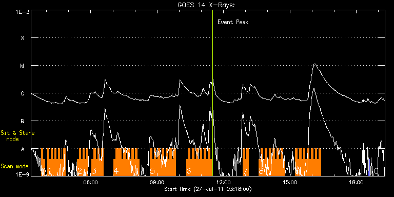 EIS Observation timeline overlay to GOES-Xray curve Code 1" 2" 40" 266" EIS Observations list for this event: STUDY ACRONYM ID DATE OBSERVED DESCRIPTION NOAA# TARGET 0 HH_Flare+AR_180x152 | 23490 | 2011/07/27 03:45:13 | AR observation | | Flare TIMELINE ID DATE OBSERVED FITS FILE XCEN (+W/-E) YCEN (+N/-S) DUR ----------------------------------------------------------------------------------------------------------------- 23490 | 2011/07/27 03:45:13.000 | eis_l0_20110727_034513.fits.gz | 521.72 | 288.17 | 5m7s 23490 | 2011/07/27 03:50:33.000 | eis_l0_20110727_035033.fits.gz | 522.41 | 288.10 | 5m19s 1 AR_filament | 23491 | 2011/07/27 04:02:13 | filament observation | | Active Region TIMELINE ID DATE OBSERVED FITS FILE XCEN (+W/-E) YCEN (+N/-S) DUR ----------------------------------------------------------------------------------------------------------------- 23491 | 2011/07/27 04:02:13.000 | eis_l0_20110727_040213.fits.gz | 895.76 | 209.38 | 4m50s 23491 | 2011/07/27 04:07:06.000 | eis_l0_20110727_040706.fits.gz | 895.76 | 209.30 | 4m51s 23491 | 2011/07/27 04:12:00.000 | eis_l0_20110727_041200.fits.gz | 895.68 | 209.46 | 4m50s 23491 | 2011/07/27 04:16:53.000 | eis_l0_20110727_041653.fits.gz | 895.76 | 209.23 | 4m50s 23491 | 2011/07/27 04:21:46.000 | eis_l0_20110727_042146.fits.gz | 895.68 | 209.38 | 4m50s 23491 | 2011/07/27 04:26:39.000 | eis_l0_20110727_042639.fits.gz | 895.68 | 209.46 | 4m50s 23491 | 2011/07/27 04:31:32.000 | eis_l0_20110727_043132.fits.gz | 895.76 | 209.46 | 4m50s 23491 | 2011/07/27 04:36:25.000 | eis_l0_20110727_043625.fits.gz | 895.68 | 209.46 | 4m50s 23491 | 2011/07/27 04:41:18.000 | eis_l0_20110727_044118.fits.gz | 895.76 | 209.30 | 45s 23491 | 2011/07/27 04:42:28.000 | eis_l0_20110727_044228.fits.gz | 895.76 | 209.30 | 3m41s 23491 | 2011/07/27 04:46:12.000 | eis_l0_20110727_044612.fits.gz | 895.76 | 209.23 | 4m50s 2 AR_filament | 23492 | 2011/07/27 05:23:43 | filament observation | | Active Region TIMELINE ID DATE OBSERVED FITS FILE XCEN (+W/-E) YCEN (+N/-S) DUR ----------------------------------------------------------------------------------------------------------------- 23492 | 2011/07/27 05:23:43.000 | eis_l0_20110727_052343.fits.gz | 895.61 | 209.46 | 4m50s 23492 | 2011/07/27 05:28:36.000 | eis_l0_20110727_052836.fits.gz | 895.68 | 209.46 | 4m51s 23492 | 2011/07/27 05:33:30.000 | eis_l0_20110727_053330.fits.gz | 895.68 | 209.46 | 4m50s 23492 | 2011/07/27 05:38:23.000 | eis_l0_20110727_053823.fits.gz | 895.68 | 209.30 | 4m51s 23492 | 2011/07/27 05:43:17.000 | eis_l0_20110727_054317.fits.gz | 895.68 | 209.38 | 4m50s 23492 | 2011/07/27 05:48:10.000 | eis_l0_20110727_054810.fits.gz | 895.68 | 209.38 | 4m50s 3 HH_Flare+AR_180x152 | 23471 | 2011/07/27 06:02:13 | AR observation | | Flare TIMELINE ID DATE OBSERVED FITS FILE XCEN (+W/-E) YCEN (+N/-S) DUR ----------------------------------------------------------------------------------------------------------------- 23471 | 2011/07/27 06:02:13.000 | eis_l0_20110727_060213.fits.gz | 536.86 | 289.10 | 5m18s 23471 | 2011/07/27 06:07:34.000 | eis_l0_20110727_060734.fits.gz | 537.55 | 289.02 | 5m18s 23471 | 2011/07/27 06:12:55.000 | eis_l0_20110727_061255.fits.gz | 538.02 | 289.10 | 5m19s 23471 | 2011/07/27 06:18:17.000 | eis_l0_20110727_061817.fits.gz | 538.71 | 289.10 | 5m17s 23471 | 2011/07/27 06:23:37.000 | eis_l0_20110727_062337.fits.gz | 539.25 | 289.10 | 5m18s 23471 | 2011/07/27 06:28:58.000 | eis_l0_20110727_062858.fits.gz | 539.87 | 289.10 | 5m17s 4 HH_Flare+AR_180x152 | 23472 | 2011/07/27 07:02:13 | AR observation | | Flare TIMELINE ID DATE OBSERVED FITS FILE XCEN (+W/-E) YCEN (+N/-S) DUR ----------------------------------------------------------------------------------------------------------------- 23472 | 2011/07/27 07:02:13.000 | eis_l0_20110727_070213.fits.gz | 543.35 | 289.57 | 5m18s 23472 | 2011/07/27 07:07:34.000 | eis_l0_20110727_070734.fits.gz | 543.96 | 289.41 | 3m31s 23472 | 2011/07/27 07:12:21.000 | eis_l0_20110727_071221.fits.gz | 544.58 | 289.57 | 30s 23472 | 2011/07/27 07:12:54.000 | eis_l0_20110727_071254.fits.gz | 544.58 | 289.49 | 5m18s 23472 | 2011/07/27 07:18:14.000 | eis_l0_20110727_071814.fits.gz | 545.20 | 289.57 | 52s 23472 | 2011/07/27 07:19:29.000 | eis_l0_20110727_071929.fits.gz | 545.35 | 289.57 | 3m10s 23472 | 2011/07/27 07:23:56.000 | eis_l0_20110727_072356.fits.gz | 545.74 | 289.72 | 4m46s 23472 | 2011/07/27 07:29:06.000 | eis_l0_20110727_072906.fits.gz | 546.36 | 289.72 | 5m7s 23472 | 2011/07/27 07:34:16.000 | eis_l0_20110727_073416.fits.gz | 546.90 | 289.80 | 5m18s 23472 | 2011/07/27 07:39:37.000 | eis_l0_20110727_073937.fits.gz | 547.44 | 289.80 | 5m18s 23472 | 2011/07/27 07:44:58.000 | eis_l0_20110727_074458.fits.gz | 547.98 | 289.80 | 5m18s 23472 | 2011/07/27 07:50:18.000 | eis_l0_20110727_075018.fits.gz | 548.60 | 289.87 | 5m18s 23472 | 2011/07/27 07:55:39.000 | eis_l0_20110727_075539.fits.gz | 549.22 | 289.87 | 5m17s 23472 | 2011/07/27 08:00:59.000 | eis_l0_20110727_080059.fits.gz | 549.76 | 289.87 | 5m18s 23472 | 2011/07/27 08:06:20.000 | eis_l0_20110727_080620.fits.gz | 550.45 | 289.95 | 5m19s 5 HH_Flare+AR_180x152 | 23473 | 2011/07/27 08:40:43 | AR observation | | Flare TIMELINE ID DATE OBSERVED FITS FILE XCEN (+W/-E) YCEN (+N/-S) DUR ----------------------------------------------------------------------------------------------------------------- 23473 | 2011/07/27 08:40:43.000 | eis_l0_20110727_084043.fits.gz | 554.08 | 290.26 | 5m18s 23473 | 2011/07/27 08:46:04.000 | eis_l0_20110727_084604.fits.gz | 554.62 | 290.26 | 5m17s 23473 | 2011/07/27 08:51:24.000 | eis_l0_20110727_085124.fits.gz | 555.24 | 290.26 | 5m17s 23473 | 2011/07/27 08:56:44.000 | eis_l0_20110727_085644.fits.gz | 555.71 | 290.34 | 5m18s 23473 | 2011/07/27 09:02:04.000 | eis_l0_20110727_090204.fits.gz | 556.32 | 290.34 | 5m18s 23473 | 2011/07/27 09:07:25.000 | eis_l0_20110727_090725.fits.gz | 556.94 | 290.34 | 5m18s 23473 | 2011/07/27 09:12:46.000 | eis_l0_20110727_091246.fits.gz | 557.48 | 290.42 | 5m18s