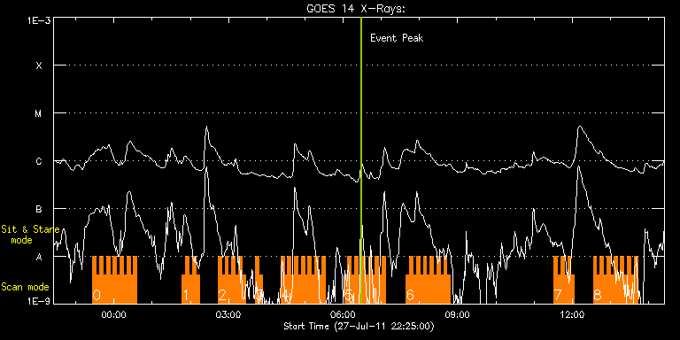 EIS Observation timeline overlay to GOES-Xray curve Code 1" 2" 40" 266" EIS Observations list for this event: STUDY ACRONYM ID DATE OBSERVED DESCRIPTION NOAA# TARGET 0 HH_Flare+AR_180x152 | 23482 | 2011/07/27 23:26:43 | AR observation | | Flare TIMELINE ID DATE OBSERVED FITS FILE XCEN (+W/-E) YCEN (+N/-S) DUR ----------------------------------------------------------------------------------------------------------------- 23482 | 2011/07/27 23:26:43.000 | eis_l0_20110727_232643.fits.gz | 643.07 | 297.52 | 5m18s 23482 | 2011/07/27 23:32:04.000 | eis_l0_20110727_233204.fits.gz | 643.69 | 297.44 | 5m18s 23482 | 2011/07/27 23:37:25.000 | eis_l0_20110727_233725.fits.gz | 644.16 | 297.52 | 5m19s 23482 | 2011/07/27 23:42:47.000 | eis_l0_20110727_234247.fits.gz | 644.70 | 297.52 | 5m18s 23482 | 2011/07/27 23:48:08.000 | eis_l0_20110727_234808.fits.gz | 645.16 | 297.68 | 5m18s 23482 | 2011/07/27 23:53:29.000 | eis_l0_20110727_235329.fits.gz | 645.70 | 297.60 | 5m18s 23482 | 2011/07/27 23:58:50.000 | eis_l0_20110727_235850.fits.gz | 646.16 | 297.68 | 5m18s 23482 | 2011/07/28 00:04:11.000 | eis_l0_20110728_000411.fits.gz | 646.63 | 297.83 | 5m18s 23482 | 2011/07/28 00:09:32.000 | eis_l0_20110728_000932.fits.gz | 647.17 | 297.60 | 5m17s 23482 | 2011/07/28 00:14:52.000 | eis_l0_20110728_001452.fits.gz | 647.55 | 297.83 | 5m18s 23482 | 2011/07/28 00:20:13.000 | eis_l0_20110728_002013.fits.gz | 648.25 | 297.83 | 5m17s 23482 | 2011/07/28 00:25:33.000 | eis_l0_20110728_002533.fits.gz | 648.64 | 297.91 | 5m17s 23482 | 2011/07/28 00:30:53.000 | eis_l0_20110728_003053.fits.gz | 649.10 | 297.98 | 5m17s 1 HH_Flare+AR_180x152 | 23483 | 2011/07/28 01:47:13 | AR observation | | Flare TIMELINE ID DATE OBSERVED FITS FILE XCEN (+W/-E) YCEN (+N/-S) DUR ----------------------------------------------------------------------------------------------------------------- 23483 | 2011/07/28 01:47:13.000 | eis_l0_20110728_014713.fits.gz | 656.21 | 298.45 | 5m17s 23483 | 2011/07/28 01:52:33.000 | eis_l0_20110728_015233.fits.gz | 656.67 | 298.60 | 5m19s 23483 | 2011/07/28 01:57:55.000 | eis_l0_20110728_015755.fits.gz | 657.13 | 298.76 | 5m17s 23483 | 2011/07/28 02:03:15.000 | eis_l0_20110728_020315.fits.gz | 657.60 | 298.83 | 5m18s 23483 | 2011/07/28 02:08:36.000 | eis_l0_20110728_020836.fits.gz | 658.06 | 298.91 | 5m17s 2 HH_Flare+AR_180x152 | 23484 | 2011/07/28 02:43:43 | AR observation | | Flare TIMELINE ID DATE OBSERVED FITS FILE XCEN (+W/-E) YCEN (+N/-S) DUR ----------------------------------------------------------------------------------------------------------------- 23484 | 2011/07/28 02:43:43.000 | eis_l0_20110728_024343.fits.gz | 661.23 | 299.22 | 5m18s 23484 | 2011/07/28 02:49:04.000 | eis_l0_20110728_024904.fits.gz | 661.69 | 299.30 | 5m18s 23484 | 2011/07/28 02:54:25.000 | eis_l0_20110728_025425.fits.gz | 662.15 | 299.45 | 5m18s 23484 | 2011/07/28 02:59:46.000 | eis_l0_20110728_025946.fits.gz | 662.69 | 299.38 | 5m18s 23484 | 2011/07/28 03:05:06.000 | eis_l0_20110728_030506.fits.gz | 663.16 | 299.30 | 5m18s 23484 | 2011/07/28 03:10:27.000 | eis_l0_20110728_031027.fits.gz | 663.70 | 299.45 | 5m19s 23484 | 2011/07/28 03:15:48.000 | eis_l0_20110728_031548.fits.gz | 664.08 | 299.68 | 5m19s 23484 | 2011/07/28 03:21:10.000 | eis_l0_20110728_032110.fits.gz | 664.62 | 299.53 | 5m18s 3 HH_Flare+AR_180x152 | 23485 | 2011/07/28 03:42:12 | AR observation | 1260 | Flare TIMELINE ID DATE OBSERVED FITS FILE XCEN (+W/-E) YCEN (+N/-S) DUR ----------------------------------------------------------------------------------------------------------------- 23485 | 2011/07/28 03:42:12.000 | eis_l0_20110728_034212.fits.gz | -452.14 | 186.52 | 5m18s 23485 | 2011/07/28 03:47:33.000 | eis_l0_20110728_034733.fits.gz | -451.37 | 186.44 | 5m19s 4 HH_Flare+AR_180x152 | 23486 | 2011/07/28 04:22:13 | AR observation | 1260 | Flare TIMELINE ID DATE OBSERVED FITS FILE XCEN (+W/-E) YCEN (+N/-S) DUR ----------------------------------------------------------------------------------------------------------------- 23486 | 2011/07/28 04:22:13.000 | eis_l0_20110728_042213.fits.gz | -447.05 | 186.29 | 5m18s 23486 | 2011/07/28 04:27:34.000 | eis_l0_20110728_042734.fits.gz | -446.43 | 186.21 | 5m18s 23486 | 2011/07/28 04:32:55.000 | eis_l0_20110728_043255.fits.gz | -445.65 | 186.13 | 5m18s 23486 | 2011/07/28 04:38:16.000 | eis_l0_20110728_043816.fits.gz | -445.04 | 185.98 | 5m17s 23486 | 2011/07/28 04:43:36.000 | eis_l0_20110728_044336.fits.gz | -444.26 | 185.98 | 5m18s 23486 | 2011/07/28 04:48:57.000 | eis_l0_20110728_044857.fits.gz | -443.65 | 185.98 | 5m18s 23486 | 2011/07/28 04:54:18.000 | eis_l0_20110728_045418.fits.gz | -442.95 | 185.90 | 5m18s 23486 | 2011/07/28 04:59:38.000 | eis_l0_20110728_045938.fits.gz | -442.41 | 185.90 | 5m18s 23486 | 2011/07/28 05:04:59.000 | eis_l0_20110728_050459.fits.gz | -441.56 | 185.82 | 5m18s 23486 | 2011/07/28 05:10:20.000 | eis_l0_20110728_051020.fits.gz | -440.94 | 185.82 | 5m17s 23486 | 2011/07/28 05:15:40.000 | eis_l0_20110728_051540.fits.gz | -440.25 | 185.74 | 5m18s 23486 | 2011/07/28 05:21:00.000 | eis_l0_20110728_052100.fits.gz | -439.55 | 185.74 | 5m18s 23486 | 2011/07/28 05:26:21.000 | eis_l0_20110728_052621.fits.gz | -438.86 | 185.67 | 5m19s 5 HH_Flare+AR_180x152 | 23487 | 2011/07/28 06:02:12 | AR observation | | Flare TIMELINE ID DATE OBSERVED FITS FILE XCEN (+W/-E) YCEN (+N/-S) DUR ----------------------------------------------------------------------------------------------------------------- 23487 | 2011/07/28 06:02:12.000 | eis_l0_20110728_060212.fits.gz | 678.99 | 301.08 | 5m19s 23487 | 2011/07/28 06:07:34.000 | eis_l0_20110728_060734.fits.gz | 679.38 | 301.15 | 5m17s 23487 | 2011/07/28 06:12:54.000 | eis_l0_20110728_061254.fits.gz | 679.84 | 301.15 | 5m17s 23487 | 2011/07/28 06:18:14.000 | eis_l0_20110728_061814.fits.gz | 680.31 | 301.23 | 5m17s 23487 | 2011/07/28 06:23:34.000 | eis_l0_20110728_062334.fits.gz | 680.77 | 301.31 | 5m18s 23487 | 2011/07/28 06:28:55.000 | eis_l0_20110728_062855.fits.gz | 68