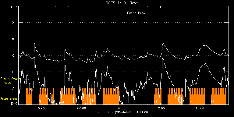 EIS Observation timeline overlay to GOES-Xray curve Code 1" 2" 40" 266" EIS Observations list for this event: STUDY ACRONYM ID DATE OBSERVED DESCRIPTION NOAA# TARGET 0 HH_Flare+AR_180x152 | 23483 | 2011/07/28 01:47:13 | AR observation | | Flare TIMELINE ID DATE OBSERVED FITS FILE XCEN (+W/-E) YCEN (+N/-S) DUR ----------------------------------------------------------------------------------------------------------------- 23483 | 2011/07/28 01:47:13.000 | eis_l0_20110728_014713.fits.gz | 656.21 | 298.45 | 5m17s 23483 | 2011/07/28 01:52:33.000 | eis_l0_20110728_015233.fits.gz | 656.67 | 298.60 | 5m19s 23483 | 2011/07/28 01:57:55.000 | eis_l0_20110728_015755.fits.gz | 657.13 | 298.76 | 5m17s 23483 | 2011/07/28 02:03:15.000 | eis_l0_20110728_020315.fits.gz | 657.60 | 298.83 | 5m18s 23483 | 2011/07/28 02:08:36.000 | eis_l0_20110728_020836.fits.gz | 658.06 | 298.91 | 5m17s 1 HH_Flare+AR_180x152 | 23484 | 2011/07/28 02:43:43 | AR observation | | Flare TIMELINE ID DATE OBSERVED FITS FILE XCEN (+W/-E) YCEN (+N/-S) DUR ----------------------------------------------------------------------------------------------------------------- 23484 | 2011/07/28 02:43:43.000 | eis_l0_20110728_024343.fits.gz | 661.23 | 299.22 | 5m18s 23484 | 2011/07/28 02:49:04.000 | eis_l0_20110728_024904.fits.gz | 661.69 | 299.30 | 5m18s 23484 | 2011/07/28 02:54:25.000 | eis_l0_20110728_025425.fits.gz | 662.15 | 299.45 | 5m18s 23484 | 2011/07/28 02:59:46.000 | eis_l0_20110728_025946.fits.gz | 662.69 | 299.38 | 5m18s 23484 | 2011/07/28 03:05:06.000 | eis_l0_20110728_030506.fits.gz | 663.16 | 299.30 | 5m18s 23484 | 2011/07/28 03:10:27.000 | eis_l0_20110728_031027.fits.gz | 663.70 | 299.45 | 5m19s 23484 | 2011/07/28 03:15:48.000 | eis_l0_20110728_031548.fits.gz | 664.08 | 299.68 | 5m19s 23484 | 2011/07/28 03:21:10.000 | eis_l0_20110728_032110.fits.gz | 664.62 | 299.53 | 5m18s 2 HH_Flare+AR_180x152 | 23485 | 2011/07/28 03:42:12 | AR observation | 1260 | Flare TIMELINE ID DATE OBSERVED FITS FILE XCEN (+W/-E) YCEN (+N/-S) DUR ----------------------------------------------------------------------------------------------------------------- 23485 | 2011/07/28 03:42:12.000 | eis_l0_20110728_034212.fits.gz | -452.14 | 186.52 | 5m18s 23485 | 2011/07/28 03:47:33.000 | eis_l0_20110728_034733.fits.gz | -451.37 | 186.44 | 5m19s 3 HH_Flare+AR_180x152 | 23486 | 2011/07/28 04:22:13 | AR observation | 1260 | Flare TIMELINE ID DATE OBSERVED FITS FILE XCEN (+W/-E) YCEN (+N/-S) DUR ----------------------------------------------------------------------------------------------------------------- 23486 | 2011/07/28 04:22:13.000 | eis_l0_20110728_042213.fits.gz | -447.05 | 186.29 | 5m18s 23486 | 2011/07/28 04:27:34.000 | eis_l0_20110728_042734.fits.gz | -446.43 | 186.21 | 5m18s 23486 | 2011/07/28 04:32:55.000 | eis_l0_20110728_043255.fits.gz | -445.65 | 186.13 | 5m18s 23486 | 2011/07/28 04:38:16.000 | eis_l0_20110728_043816.fits.gz | -445.04 | 185.98 | 5m17s 23486 | 2011/07/28 04:43:36.000 | eis_l0_20110728_044336.fits.gz | -444.26 | 185.98 | 5m18s 23486 | 2011/07/28 04:48:57.000 | eis_l0_20110728_044857.fits.gz | -443.65 | 185.98 | 5m18s 23486 | 2011/07/28 04:54:18.000 | eis_l0_20110728_045418.fits.gz | -442.95 | 185.90 | 5m18s 23486 | 2011/07/28 04:59:38.000 | eis_l0_20110728_045938.fits.gz | -442.41 | 185.90 | 5m18s 23486 | 2011/07/28 05:04:59.000 | eis_l0_20110728_050459.fits.gz | -441.56 | 185.82 | 5m18s 23486 | 2011/07/28 05:10:20.000 | eis_l0_20110728_051020.fits.gz | -440.94 | 185.82 | 5m17s 23486 | 2011/07/28 05:15:40.000 | eis_l0_20110728_051540.fits.gz | -440.25 | 185.74 | 5m18s 23486 | 2011/07/28 05:21:00.000 | eis_l0_20110728_052100.fits.gz | -439.55 | 185.74 | 5m18s 23486 | 2011/07/28 05:26:21.000 | eis_l0_20110728_052621.fits.gz | -438.86 | 185.67 | 5m19s 4 HH_Flare+AR_180x152 | 23487 | 2011/07/28 06:02:12 | AR observation | | Flare TIMELINE ID DATE OBSERVED FITS FILE XCEN (+W/-E) YCEN (+N/-S) DUR ----------------------------------------------------------------------------------------------------------------- 23487 | 2011/07/28 06:02:12.000 | eis_l0_20110728_060212.fits.gz | 678.99 | 301.08 | 5m19s 23487 | 2011/07/28 06:07:34.000 | eis_l0_20110728_060734.fits.gz | 679.38 | 301.15 | 5m17s 23487 | 2011/07/28 06:12:54.000 | eis_l0_20110728_061254.fits.gz | 679.84 | 301.15 | 5m17s 23487 | 2011/07/28 06:18:14.000 | eis_l0_20110728_061814.fits.gz | 680.31 | 301.23 | 5m17s 23487 | 2011/07/28 06:23:34.000 | eis_l0_20110728_062334.fits.gz | 680.77 | 301.31 | 5m18s 23487 | 2011/07/28 06:28:55.000 | eis_l0_20110728_062855.fits.gz | 681.23 | 301.38 | 5m18s 23487 | 2011/07/28 06:34:16.000 | eis_l0_20110728_063416.fits.gz | 681.62 | 301.31 | 5m18s 23487 | 2011/07/28 06:39:37.000 | eis_l0_20110728_063937.fits.gz | 682.08 | 301.54 | 5m18s 23487 | 2011/07/28 06:44:58.000 | eis_l0_20110728_064458.fits.gz | 682.55 | 301.46 | 5m18s 23487 | 2011/07/28 06:50:19.000 | eis_l0_20110728_065019.fits.gz | 683.16 | 301.38 | 5m18s 23487 | 2011/07/28 06:55:40.000 | eis_l0_20110728_065540.fits.gz | 683.47 | 301.54 | 5m18s 23487 | 2011/07/28 07:01:00.000 | eis_l0_20110728_070100.fits.gz | 683.94 | 301.46 | 5m19s 5 HH_Flare+AR_180x152 | 23488 | 2011/07/28 07:39:13 | AR observation | | Flare TIMELINE ID DATE OBSERVED FITS FILE XCEN (+W/-E) YCEN (+N/-S) DUR ----------------------------------------------------------------------------------------------------------------- 23488 | 2011/07/28 07:39:13.000 | eis_l0_20110728_073913.fits.gz | 687.18 | 302.16 | 5m18s 23488 | 2011/07/28 07:44:34.000 | eis_l0_20110728_074434.fits.gz | 687.72 | 302.16 | 5m19s 23488 | 2011/07/28 07:49:56.000 | eis_l0_20110728_074956.fits.gz | 688.26 | 302.08 | 5m17s 23488 | 2011/07/28 07:55:16.000 | eis_l0_20110728_075516.fits.gz | 688.65 | 302.08 | 5m18s 23488 | 2011/07/28 08:00:37.000 | eis_l0_20110728_080037.fits.gz | 689.11 | 302.31 | 5m18s 23488 | 2011/07/28 08:05:58.000 | eis_l0_20110728_080558.fits.gz | 689.50 | 302.23 | 5m19s 23488 | 2011/07/28 08:11:19.000 | eis_l0_20110728_081119.fits.gz | 68