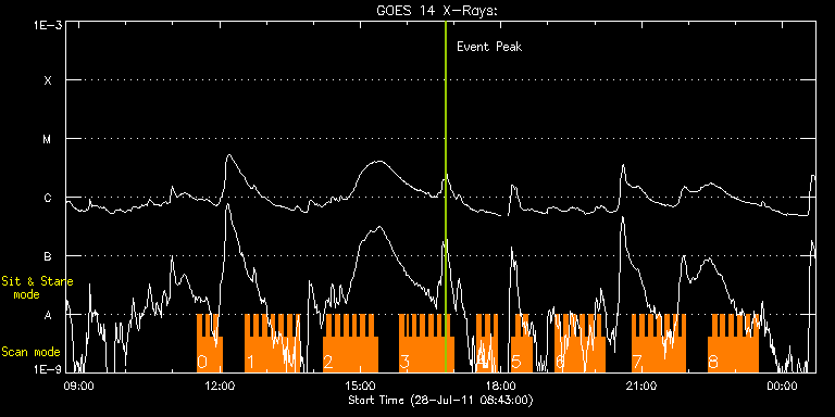 EIS Observation timeline overlay to GOES-Xray curve Code 1" 2" 40" 266" EIS Observations list for this event: STUDY ACRONYM ID DATE OBSERVED DESCRIPTION NOAA# TARGET 0 HH_Flare+AR_180x152 | 23515 | 2011/07/28 11:31:15 | AR observation | 1260 | Flare TIMELINE ID DATE OBSERVED FITS FILE XCEN (+W/-E) YCEN (+N/-S) DUR ----------------------------------------------------------------------------------------------------------------- 23515 | 2011/07/28 11:31:15.000 | eis_l0_20110728_113115.fits.gz | -397.07 | 197.87 | 5m18s 23515 | 2011/07/28 11:36:36.000 | eis_l0_20110728_113636.fits.gz | -396.37 | 197.95 | 5m19s 23515 | 2011/07/28 11:41:57.000 | eis_l0_20110728_114157.fits.gz | -395.68 | 197.95 | 5m18s 23515 | 2011/07/28 11:47:18.000 | eis_l0_20110728_114718.fits.gz | -394.98 | 197.95 | 5m19s 23515 | 2011/07/28 11:52:40.000 | eis_l0_20110728_115240.fits.gz | -394.21 | 197.79 | 5m18s 23515 | 2011/07/28 11:58:01.000 | eis_l0_20110728_115801.fits.gz | -393.51 | 197.87 | 5m18s 1 HH_Flare+AR_180x152 | 23516 | 2011/07/28 12:33:14 | AR observation | 1260 | Flare TIMELINE ID DATE OBSERVED FITS FILE XCEN (+W/-E) YCEN (+N/-S) DUR ----------------------------------------------------------------------------------------------------------------- 23516 | 2011/07/28 12:33:14.000 | eis_l0_20110728_123314.fits.gz | -388.95 | 197.79 | 5m18s 23516 | 2011/07/28 12:38:35.000 | eis_l0_20110728_123835.fits.gz | -388.26 | 197.64 | 5m18s 23516 | 2011/07/28 12:43:55.000 | eis_l0_20110728_124355.fits.gz | -387.49 | 197.49 | 5m18s 23516 | 2011/07/28 12:49:16.000 | eis_l0_20110728_124916.fits.gz | -386.87 | 197.72 | 5m18s 23516 | 2011/07/28 12:54:37.000 | eis_l0_20110728_125437.fits.gz | -386.17 | 197.49 | 5m17s 23516 | 2011/07/28 12:59:57.000 | eis_l0_20110728_125957.fits.gz | -385.40 | 197.49 | 5m17s 23516 | 2011/07/28 13:05:17.000 | eis_l0_20110728_130517.fits.gz | -384.71 | 197.56 | 5m18s 23516 | 2011/07/28 13:10:38.000 | eis_l0_20110728_131038.fits.gz | -384.01 | 197.33 | 5m18s 23516 | 2011/07/28 13:15:59.000 | eis_l0_20110728_131559.fits.gz | -383.24 | 197.18 | 5m18s 23516 | 2011/07/28 13:21:20.000 | eis_l0_20110728_132120.fits.gz | -382.62 | 197.25 | 5m18s 23516 | 2011/07/28 13:26:40.000 | eis_l0_20110728_132640.fits.gz | -381.93 | 197.25 | 5m18s 23516 | 2011/07/28 13:32:01.000 | eis_l0_20110728_133201.fits.gz | -381.08 | 197.10 | 5m18s 23516 | 2011/07/28 13:37:22.000 | eis_l0_20110728_133722.fits.gz | -380.54 | 197.18 | 5m18s 2 HH_Flare+AR_180x152 | 23517 | 2011/07/28 14:12:14 | AR observation | 1260 | Flare TIMELINE ID DATE OBSERVED FITS FILE XCEN (+W/-E) YCEN (+N/-S) DUR ----------------------------------------------------------------------------------------------------------------- 23517 | 2011/07/28 14:12:14.000 | eis_l0_20110728_141214.fits.gz | -375.98 | 197.10 | 5m18s 23517 | 2011/07/28 14:17:35.000 | eis_l0_20110728_141735.fits.gz | -375.28 | 196.95 | 5m18s 23517 | 2011/07/28 14:22:55.000 | eis_l0_20110728_142255.fits.gz | -374.51 | 196.87 | 5m18s 23517 | 2011/07/28 14:28:15.000 | eis_l0_20110728_142815.fits.gz | -373.74 | 196.71 | 5m18s 23517 | 2011/07/28 14:33:36.000 | eis_l0_20110728_143336.fits.gz | -373.20 | 196.95 | 5m18s 23517 | 2011/07/28 14:38:56.000 | eis_l0_20110728_143856.fits.gz | -372.42 | 196.79 | 5m18s 23517 | 2011/07/28 14:44:17.000 | eis_l0_20110728_144417.fits.gz | -371.73 | 196.79 | 5m18s 23517 | 2011/07/28 14:49:37.000 | eis_l0_20110728_144937.fits.gz | -371.11 | 196.79 | 5m19s 23517 | 2011/07/28 14:54:59.000 | eis_l0_20110728_145459.fits.gz | -370.26 | 196.56 | 5m18s 23517 | 2011/07/28 15:00:19.000 | eis_l0_20110728_150019.fits.gz | -369.64 | 196.64 | 5m18s 23517 | 2011/07/28 15:05:40.000 | eis_l0_20110728_150540.fits.gz | -368.87 | 196.64 | 5m18s 23517 | 2011/07/28 15:11:01.000 | eis_l0_20110728_151101.fits.gz | -368.17 | 196.48 | 5m17s 23517 | 2011/07/28 15:16:21.000 | eis_l0_20110728_151621.fits.gz | -367.48 | 196.48 | 5m18s 3 HH_Flare+AR_180x152 | 23518 | 2011/07/28 15:50:14 | AR observation | 1260 | Flare TIMELINE ID DATE OBSERVED FITS FILE XCEN (+W/-E) YCEN (+N/-S) DUR ----------------------------------------------------------------------------------------------------------------- 23518 | 2011/07/28 15:50:14.000 | eis_l0_20110728_155014.fits.gz | -363.00 | 196.64 | 5m18s 23518 | 2011/07/28 15:55:35.000 | eis_l0_20110728_155535.fits.gz | -362.30 | 196.33 | 4m36s 23518 | 2011/07/28 16:00:33.000 | eis_l0_20110728_160033.fits.gz | -361.61 | 196.33 | 20s 23518 | 2011/07/28 16:00:56.000 | eis_l0_20110728_160056.fits.gz | -361.61 | 196.25 | 5m18s 23518 | 2011/07/28 16:06:17.000 | eis_l0_20110728_160617.fits.gz | -360.84 | 196.33 | 5m17s 23518 | 2011/07/28 16:11:37.000 | eis_l0_20110728_161137.fits.gz | -360.14 | 196.25 | 5m17s 23518 | 2011/07/28 16:16:57.000 | eis_l0_20110728_161657.fits.gz | -359.52 | 196.25 | 5m18s 23518 | 2011/07/28 16:22:18.000 | eis_l0_20110728_162218.fits.gz | -358.67 | 196.17 | 5m19s 23518 | 2011/07/28 16:27:39.000 | eis_l0_20110728_162739.fits.gz | -358.06 | 196.10 | 5m18s 23518 | 2011/07/28 16:33:00.000 | eis_l0_20110728_163300.fits.gz | -357.28 | 196.10 | 5m18s 23518 | 2011/07/28 16:38:21.000 | eis_l0_20110728_163821.fits.gz | -356.59 | 195.86 | 5m18s 23518 | 2011/07/28 16:43:42.000 | eis_l0_20110728_164342.fits.gz | -355.89 | 196.02 | 5m17s 23518 | 2011/07/28 16:49:02.000 | eis_l0_20110728_164902.fits.gz | -355.12 | 195.94 | 5m18s 23518 | 2011/07/28 16:54:23.000 | eis_l0_20110728_165423.fits.gz | -354.42 | 195.86 | 5m18s 4 HH_Flare+AR_180x152 | 23519 | 2011/07/28 17:29:14 | AR observation | 1260 | Flare TIMELINE ID DATE OBSERVED FITS FILE XCEN (+W/-E) YCEN (+N/-S) DUR ----------------------------------------------------------------------------------------------------------------- 23519 | 2011/07/28 17:29:14.000 | eis_l0_20110728_172914.fits.gz | -349.79 | 195.86 | 5m7s 23519 | 2011/07/28 17:34:35.000 | eis_l0_20110728_173435.fits.gz | -349.17 | 195.63 | 5m17s 23519 | 2011/07/28 17:39:55.000 | eis_l0_20110728_173955.fits.gz | -348.40 | 195.79 | 5m18s 23519 | 2