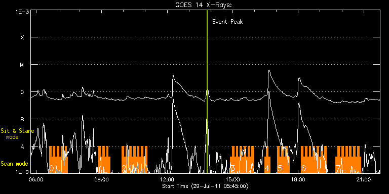 EIS Observation timeline overlay to GOES-Xray curve Code 1" 2" 40" 266" EIS Observations list for this event: STUDY ACRONYM ID DATE OBSERVED DESCRIPTION NOAA# TARGET 0 HH_Flare+AR_180x152 | 23528 | 2011/07/29 06:36:13 | AR observation | 1260 | Flare TIMELINE ID DATE OBSERVED FITS FILE XCEN (+W/-E) YCEN (+N/-S) DUR ----------------------------------------------------------------------------------------------------------------- 23528 | 2011/07/29 06:36:13.000 | eis_l0_20110729_063613.fits.gz | -242.42 | 191.62 | 5m18s 23528 | 2011/07/29 06:41:34.000 | eis_l0_20110729_064134.fits.gz | -241.57 | 191.62 | 5m17s 23528 | 2011/07/29 06:46:54.000 | eis_l0_20110729_064654.fits.gz | -240.72 | 191.54 | 5m18s 23528 | 2011/07/29 06:52:14.000 | eis_l0_20110729_065214.fits.gz | -240.10 | 191.46 | 5m18s 23528 | 2011/07/29 06:57:35.000 | eis_l0_20110729_065735.fits.gz | -239.33 | 191.46 | 5m18s 23528 | 2011/07/29 07:02:56.000 | eis_l0_20110729_070256.fits.gz | -238.63 | 191.46 | 5m17s 23528 | 2011/07/29 07:08:16.000 | eis_l0_20110729_070816.fits.gz | -237.86 | 191.31 | 5m17s 23528 | 2011/07/29 07:13:36.000 | eis_l0_20110729_071336.fits.gz | -237.16 | 191.38 | 5m18s 23528 | 2011/07/29 07:18:57.000 | eis_l0_20110729_071857.fits.gz | -236.39 | 191.54 | 5m18s 23528 | 2011/07/29 07:24:18.000 | eis_l0_20110729_072418.fits.gz | -235.54 | 191.23 | 2m38s 1 HH_Flare+AR_180x152 | 23529 | 2011/07/29 08:52:00 | AR observation | 1260 | Flare TIMELINE ID DATE OBSERVED FITS FILE XCEN (+W/-E) YCEN (+N/-S) DUR ----------------------------------------------------------------------------------------------------------------- 23529 | 2011/07/29 08:52:00.000 | eis_l0_20110729_085200.fits.gz | -223.34 | 190.92 | 4m57s 23529 | 2011/07/29 08:57:00.000 | eis_l0_20110729_085700.fits.gz | -222.56 | 190.84 | 5m18s 23529 | 2011/07/29 09:02:21.000 | eis_l0_20110729_090221.fits.gz | -221.87 | 190.92 | 5m17s 23529 | 2011/07/29 09:07:41.000 | eis_l0_20110729_090741.fits.gz | -221.17 | 190.92 | 5m18s 23529 | 2011/07/29 09:13:01.000 | eis_l0_20110729_091301.fits.gz | -220.32 | 190.76 | 5m18s 23529 | 2011/07/29 09:18:22.000 | eis_l0_20110729_091822.fits.gz | -219.63 | 190.92 | 5m18s 2 HH_Flare+AR_180x152 | 23530 | 2011/07/29 09:55:13 | AR observation | 1260 | Flare TIMELINE ID DATE OBSERVED FITS FILE XCEN (+W/-E) YCEN (+N/-S) DUR ----------------------------------------------------------------------------------------------------------------- 23530 | 2011/07/29 09:55:13.000 | eis_l0_20110729_095513.fits.gz | -214.61 | 190.92 | 5m18s 23530 | 2011/07/29 10:00:34.000 | eis_l0_20110729_100034.fits.gz | -213.60 | 190.69 | 5m18s 23530 | 2011/07/29 10:05:55.000 | eis_l0_20110729_100555.fits.gz | -212.91 | 190.84 | 5m18s 23530 | 2011/07/29 10:11:15.000 | eis_l0_20110729_101115.fits.gz | -212.21 | 190.69 | 5m18s 23530 | 2011/07/29 10:16:36.000 | eis_l0_20110729_101636.fits.gz | -211.44 | 190.76 | 5m19s 23530 | 2011/07/29 10:21:58.000 | eis_l0_20110729_102158.fits.gz | -210.67 | 190.53 | 5m17s 23530 | 2011/07/29 10:27:18.000 | eis_l0_20110729_102718.fits.gz | -209.90 | 190.53 | 5m18s 23530 | 2011/07/29 10:32:39.000 | eis_l0_20110729_103239.fits.gz | -209.20 | 190.61 | 5m17s 23530 | 2011/07/29 10:37:59.000 | eis_l0_20110729_103759.fits.gz | -208.43 | 190.53 | 5m17s 23530 | 2011/07/29 10:43:19.000 | eis_l0_20110729_104319.fits.gz | -207.73 | 190.53 | 5m18s 23530 | 2011/07/29 10:48:40.000 | eis_l0_20110729_104840.fits.gz | -206.88 | 190.38 | 5m18s 23530 | 2011/07/29 10:54:01.000 | eis_l0_20110729_105401.fits.gz | -206.11 | 190.46 | 5m18s 23530 | 2011/07/29 10:59:22.000 | eis_l0_20110729_105922.fits.gz | -205.34 | 190.38 | 5m18s 3 HH_Flare+AR_180x152 | 23531 | 2011/07/29 14:53:14 | AR observation | 1260 | Flare TIMELINE ID DATE OBSERVED FITS FILE XCEN (+W/-E) YCEN (+N/-S) DUR ----------------------------------------------------------------------------------------------------------------- 23531 | 2011/07/29 14:53:14.000 | eis_l0_20110729_145314.fits.gz | -172.43 | 189.68 | 5m18s 23531 | 2011/07/29 14:58:34.000 | eis_l0_20110729_145834.fits.gz | -171.58 | 189.53 | 5m18s 23531 | 2011/07/29 15:03:55.000 | eis_l0_20110729_150355.fits.gz | -170.73 | 189.61 | 5m18s 23531 | 2011/07/29 15:09:16.000 | eis_l0_20110729_150916.fits.gz | -170.04 | 189.53 | 5m17s 23531 | 2011/07/29 15:14:36.000 | eis_l0_20110729_151436.fits.gz | -169.19 | 189.38 | 5m17s 23531 | 2011/07/29 15:19:56.000 | eis_l0_20110729_151956.fits.gz | -168.49 | 189.38 | 5m17s 23531 | 2011/07/29 15:25:16.000 | eis_l0_20110729_152516.fits.gz | -167.79 | 189.45 | 5m17s 23531 | 2011/07/29 15:30:36.000 | eis_l0_20110729_153036.fits.gz | -167.02 | 189.38 | 5m18s 23531 | 2011/07/29 15:35:57.000 | eis_l0_20110729_153557.fits.gz | -166.25 | 189.45 | 5m18s 23531 | 2011/07/29 15:41:18.000 | eis_l0_20110729_154118.fits.gz | -165.48 | 189.30 | 5m18s 23531 | 2011/07/29 15:46:39.000 | eis_l0_20110729_154639.fits.gz | -164.71 | 189.38 | 5m17s 23531 | 2011/07/29 15:51:59.000 | eis_l0_20110729_155159.fits.gz | -163.93 | 189.30 | 5m18s 4 HH_Flare+AR_180x152 | 23532 | 2011/07/29 16:27:13 | AR observation | | Flare TIMELINE ID DATE OBSERVED FITS FILE XCEN (+W/-E) YCEN (+N/-S) DUR ----------------------------------------------------------------------------------------------------------------- 23532 | 2011/07/29 16:27:13.000 | eis_l0_20110729_162713.fits.gz | -158.99 | 189.61 | 5m18s 23532 | 2011/07/29 16:32:34.000 | eis_l0_20110729_163234.fits.gz | -158.22 | 189.30 | 5m17s 23532 | 2011/07/29 16:37:54.000 | eis_l0_20110729_163754.fits.gz | -157.44 | 189.30 | 5m18s 5 HH_Flare+AR_180x152 | 23533 | 2011/07/29 17:03:14 | AR observation | | Flare TIMELINE ID DATE OBSERVED FITS FILE XCEN (+W/-E) YCEN (+N/-S) DUR ----------------------------------------------------------------------------------------------------------------- 23533 | 2011/07/29 17:03:14.000 | eis_l0_20110729_170314.fits.gz | -153.89 | 189.14 | 5m18s 23533 | 2011/07/29 17:08:35.000 | eis_l0_20110729_170835.fits.gz | -153.12 | 189.07 | 5m18s 23533 | 2011/07/29 17:13:56.