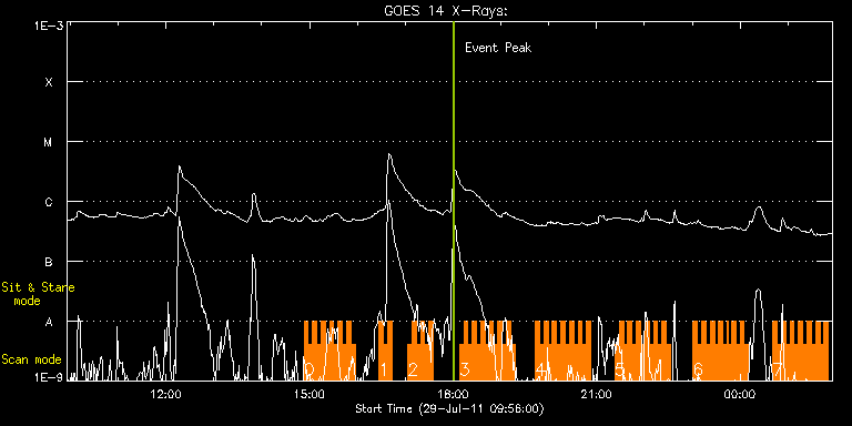 EIS Observation timeline overlay to GOES-Xray curve Code 1" 2" 40" 266" EIS Observations list for this event: STUDY ACRONYM ID DATE OBSERVED DESCRIPTION NOAA# TARGET 0 HH_Flare+AR_180x152 | 23531 | 2011/07/29 14:53:14 | AR observation | 1260 | Flare TIMELINE ID DATE OBSERVED FITS FILE XCEN (+W/-E) YCEN (+N/-S) DUR ----------------------------------------------------------------------------------------------------------------- 23531 | 2011/07/29 14:53:14.000 | eis_l0_20110729_145314.fits.gz | -172.43 | 189.68 | 5m18s 23531 | 2011/07/29 14:58:34.000 | eis_l0_20110729_145834.fits.gz | -171.58 | 189.53 | 5m18s 23531 | 2011/07/29 15:03:55.000 | eis_l0_20110729_150355.fits.gz | -170.73 | 189.61 | 5m18s 23531 | 2011/07/29 15:09:16.000 | eis_l0_20110729_150916.fits.gz | -170.04 | 189.53 | 5m17s 23531 | 2011/07/29 15:14:36.000 | eis_l0_20110729_151436.fits.gz | -169.19 | 189.38 | 5m17s 23531 | 2011/07/29 15:19:56.000 | eis_l0_20110729_151956.fits.gz | -168.49 | 189.38 | 5m17s 23531 | 2011/07/29 15:25:16.000 | eis_l0_20110729_152516.fits.gz | -167.79 | 189.45 | 5m17s 23531 | 2011/07/29 15:30:36.000 | eis_l0_20110729_153036.fits.gz | -167.02 | 189.38 | 5m18s 23531 | 2011/07/29 15:35:57.000 | eis_l0_20110729_153557.fits.gz | -166.25 | 189.45 | 5m18s 23531 | 2011/07/29 15:41:18.000 | eis_l0_20110729_154118.fits.gz | -165.48 | 189.30 | 5m18s 23531 | 2011/07/29 15:46:39.000 | eis_l0_20110729_154639.fits.gz | -164.71 | 189.38 | 5m17s 23531 | 2011/07/29 15:51:59.000 | eis_l0_20110729_155159.fits.gz | -163.93 | 189.30 | 5m18s 1 HH_Flare+AR_180x152 | 23532 | 2011/07/29 16:27:13 | AR observation | | Flare TIMELINE ID DATE OBSERVED FITS FILE XCEN (+W/-E) YCEN (+N/-S) DUR ----------------------------------------------------------------------------------------------------------------- 23532 | 2011/07/29 16:27:13.000 | eis_l0_20110729_162713.fits.gz | -158.99 | 189.61 | 5m18s 23532 | 2011/07/29 16:32:34.000 | eis_l0_20110729_163234.fits.gz | -158.22 | 189.30 | 5m17s 23532 | 2011/07/29 16:37:54.000 | eis_l0_20110729_163754.fits.gz | -157.44 | 189.30 | 5m18s 2 HH_Flare+AR_180x152 | 23533 | 2011/07/29 17:03:14 | AR observation | | Flare TIMELINE ID DATE OBSERVED FITS FILE XCEN (+W/-E) YCEN (+N/-S) DUR ----------------------------------------------------------------------------------------------------------------- 23533 | 2011/07/29 17:03:14.000 | eis_l0_20110729_170314.fits.gz | -153.89 | 189.14 | 5m18s 23533 | 2011/07/29 17:08:35.000 | eis_l0_20110729_170835.fits.gz | -153.12 | 189.07 | 5m18s 23533 | 2011/07/29 17:13:56.000 | eis_l0_20110729_171356.fits.gz | -152.35 | 189.07 | 5m17s 23533 | 2011/07/29 17:19:16.000 | eis_l0_20110729_171916.fits.gz | -151.57 | 189.14 | 5m18s 23533 | 2011/07/29 17:24:37.000 | eis_l0_20110729_172437.fits.gz | -150.72 | 189.14 | 5m19s 23533 | 2011/07/29 17:29:59.000 | eis_l0_20110729_172959.fits.gz | -149.95 | 189.07 | 5m18s 3 HH_Flare+AR_180x152 | 23534 | 2011/07/29 18:08:13 | AR observation | 1260 | Flare TIMELINE ID DATE OBSERVED FITS FILE XCEN (+W/-E) YCEN (+N/-S) DUR ----------------------------------------------------------------------------------------------------------------- 23534 | 2011/07/29 18:08:13.000 | eis_l0_20110729_180813.fits.gz | -144.54 | 188.99 | 5m18s 23534 | 2011/07/29 18:13:33.000 | eis_l0_20110729_181333.fits.gz | -143.77 | 188.99 | 5m18s 23534 | 2011/07/29 18:18:54.000 | eis_l0_20110729_181854.fits.gz | -143.00 | 188.99 | 5m17s 23534 | 2011/07/29 18:24:14.000 | eis_l0_20110729_182414.fits.gz | -142.23 | 188.83 | 5m19s 23534 | 2011/07/29 18:29:35.000 | eis_l0_20110729_182935.fits.gz | -141.45 | 188.83 | 5m18s 23534 | 2011/07/29 18:34:56.000 | eis_l0_20110729_183456.fits.gz | -140.76 | 188.91 | 5m18s 23534 | 2011/07/29 18:40:17.000 | eis_l0_20110729_184017.fits.gz | -139.99 | 188.91 | 5m18s 23534 | 2011/07/29 18:45:38.000 | eis_l0_20110729_184538.fits.gz | -139.29 | 188.68 | 5m18s 23534 | 2011/07/29 18:50:58.000 | eis_l0_20110729_185058.fits.gz | -138.44 | 188.76 | 5m18s 23534 | 2011/07/29 18:56:19.000 | eis_l0_20110729_185619.fits.gz | -137.75 | 188.76 | 5m17s 23534 | 2011/07/29 19:01:39.000 | eis_l0_20110729_190139.fits.gz | -136.97 | 188.83 | 5m18s 23534 | 2011/07/29 19:07:00.000 | eis_l0_20110729_190700.fits.gz | -136.12 | 188.83 | 5m18s 23534 | 2011/07/29 19:12:20.000 | eis_l0_20110729_191220.fits.gz | -135.35 | 188.76 | 5m18s 4 HH_Flare+AR_180x152 | 23535 | 2011/07/29 19:43:13 | AR observation | 1260 | Flare TIMELINE ID DATE OBSERVED FITS FILE XCEN (+W/-E) YCEN (+N/-S) DUR ----------------------------------------------------------------------------------------------------------------- 23535 | 2011/07/29 19:43:13.000 | eis_l0_20110729_194313.fits.gz | -130.87 | 188.76 | 5m19s 23535 | 2011/07/29 19:48:35.000 | eis_l0_20110729_194835.fits.gz | -130.33 | 188.76 | 5m18s 23535 | 2011/07/29 19:53:56.000 | eis_l0_20110729_195356.fits.gz | -129.40 | 188.76 | 5m17s 23535 | 2011/07/29 19:59:16.000 | eis_l0_20110729_195916.fits.gz | -128.63 | 188.60 | 5m18s 23535 | 2011/07/29 20:04:37.000 | eis_l0_20110729_200437.fits.gz | -127.93 | 188.52 | 5m18s 23535 | 2011/07/29 20:09:58.000 | eis_l0_20110729_200958.fits.gz | -127.16 | 188.60 | 5m19s 23535 | 2011/07/29 20:15:19.000 | eis_l0_20110729_201519.fits.gz | -126.31 | 188.52 | 5m18s 23535 | 2011/07/29 20:20:40.000 | eis_l0_20110729_202040.fits.gz | -125.62 | 188.60 | 5m18s 23535 | 2011/07/29 20:26:01.000 | eis_l0_20110729_202601.fits.gz | -124.85 | 188.45 | 5m18s 23535 | 2011/07/29 20:31:22.000 | eis_l0_20110729_203122.fits.gz | -124.07 | 188.45 | 5m18s 23535 | 2011/07/29 20:36:43.000 | eis_l0_20110729_203643.fits.gz | -123.22 | 188.52 | 5m18s 23535 | 2011/07/29 20:42:03.000 | eis_l0_20110729_204203.fits.gz | -122.53 | 188.52 | 5m19s 23535 | 2011/07/29 20:47:25.000 | eis_l0_20110729_204725.fits.gz | -121.76 | 188.37 | 5m18s 5 HH_Flare+AR_180x152 | 23536 | 2011/07/29 21:23:13 | AR observation | 1260 | Flare TIMELINE ID DATE OBSERVED FITS FILE XCEN (+W/-E) YCEN (+N/-S) DUR --------------------------------------------------