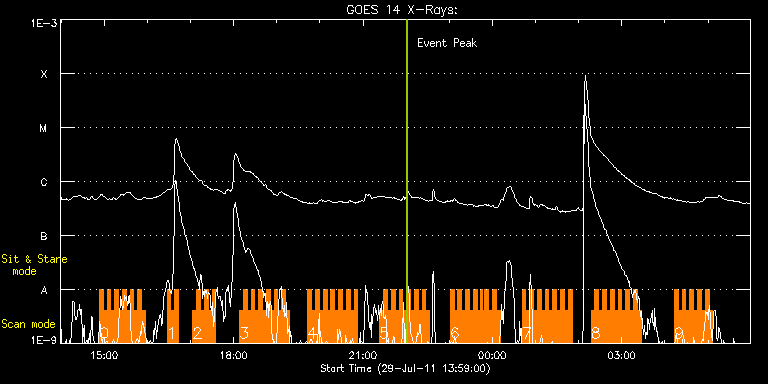 EIS Observation timeline overlay to GOES-Xray curve Code 1" 2" 40" 266" EIS Observations list for this event: STUDY ACRONYM ID DATE OBSERVED DESCRIPTION NOAA# TARGET 0 HH_Flare+AR_180x152 | 23531 | 2011/07/29 14:53:14 | AR observation | 1260 | Flare TIMELINE ID DATE OBSERVED FITS FILE XCEN (+W/-E) YCEN (+N/-S) DUR ----------------------------------------------------------------------------------------------------------------- 23531 | 2011/07/29 14:53:14.000 | eis_l0_20110729_145314.fits.gz | -172.43 | 189.68 | 5m18s 23531 | 2011/07/29 14:58:34.000 | eis_l0_20110729_145834.fits.gz | -171.58 | 189.53 | 5m18s 23531 | 2011/07/29 15:03:55.000 | eis_l0_20110729_150355.fits.gz | -170.73 | 189.61 | 5m18s 23531 | 2011/07/29 15:09:16.000 | eis_l0_20110729_150916.fits.gz | -170.04 | 189.53 | 5m17s 23531 | 2011/07/29 15:14:36.000 | eis_l0_20110729_151436.fits.gz | -169.19 | 189.38 | 5m17s 23531 | 2011/07/29 15:19:56.000 | eis_l0_20110729_151956.fits.gz | -168.49 | 189.38 | 5m17s 23531 | 2011/07/29 15:25:16.000 | eis_l0_20110729_152516.fits.gz | -167.79 | 189.45 | 5m17s 23531 | 2011/07/29 15:30:36.000 | eis_l0_20110729_153036.fits.gz | -167.02 | 189.38 | 5m18s 23531 | 2011/07/29 15:35:57.000 | eis_l0_20110729_153557.fits.gz | -166.25 | 189.45 | 5m18s 23531 | 2011/07/29 15:41:18.000 | eis_l0_20110729_154118.fits.gz | -165.48 | 189.30 | 5m18s 23531 | 2011/07/29 15:46:39.000 | eis_l0_20110729_154639.fits.gz | -164.71 | 189.38 | 5m17s 23531 | 2011/07/29 15:51:59.000 | eis_l0_20110729_155159.fits.gz | -163.93 | 189.30 | 5m18s 1 HH_Flare+AR_180x152 | 23532 | 2011/07/29 16:27:13 | AR observation | | Flare TIMELINE ID DATE OBSERVED FITS FILE XCEN (+W/-E) YCEN (+N/-S) DUR ----------------------------------------------------------------------------------------------------------------- 23532 | 2011/07/29 16:27:13.000 | eis_l0_20110729_162713.fits.gz | -158.99 | 189.61 | 5m18s 23532 | 2011/07/29 16:32:34.000 | eis_l0_20110729_163234.fits.gz | -158.22 | 189.30 | 5m17s 23532 | 2011/07/29 16:37:54.000 | eis_l0_20110729_163754.fits.gz | -157.44 | 189.30 | 5m18s 2 HH_Flare+AR_180x152 | 23533 | 2011/07/29 17:03:14 | AR observation | | Flare TIMELINE ID DATE OBSERVED FITS FILE XCEN (+W/-E) YCEN (+N/-S) DUR ----------------------------------------------------------------------------------------------------------------- 23533 | 2011/07/29 17:03:14.000 | eis_l0_20110729_170314.fits.gz | -153.89 | 189.14 | 5m18s 23533 | 2011/07/29 17:08:35.000 | eis_l0_20110729_170835.fits.gz | -153.12 | 189.07 | 5m18s 23533 | 2011/07/29 17:13:56.000 | eis_l0_20110729_171356.fits.gz | -152.35 | 189.07 | 5m17s 23533 | 2011/07/29 17:19:16.000 | eis_l0_20110729_171916.fits.gz | -151.57 | 189.14 | 5m18s 23533 | 2011/07/29 17:24:37.000 | eis_l0_20110729_172437.fits.gz | -150.72 | 189.14 | 5m19s 23533 | 2011/07/29 17:29:59.000 | eis_l0_20110729_172959.fits.gz | -149.95 | 189.07 | 5m18s 3 HH_Flare+AR_180x152 | 23534 | 2011/07/29 18:08:13 | AR observation | 1260 | Flare TIMELINE ID DATE OBSERVED FITS FILE XCEN (+W/-E) YCEN (+N/-S) DUR ----------------------------------------------------------------------------------------------------------------- 23534 | 2011/07/29 18:08:13.000 | eis_l0_20110729_180813.fits.gz | -144.54 | 188.99 | 5m18s 23534 | 2011/07/29 18:13:33.000 | eis_l0_20110729_181333.fits.gz | -143.77 | 188.99 | 5m18s 23534 | 2011/07/29 18:18:54.000 | eis_l0_20110729_181854.fits.gz | -143.00 | 188.99 | 5m17s 23534 | 2011/07/29 18:24:14.000 | eis_l0_20110729_182414.fits.gz | -142.23 | 188.83 | 5m19s 23534 | 2011/07/29 18:29:35.000 | eis_l0_20110729_182935.fits.gz | -141.45 | 188.83 | 5m18s 23534 | 2011/07/29 18:34:56.000 | eis_l0_20110729_183456.fits.gz | -140.76 | 188.91 | 5m18s 23534 | 2011/07/29 18:40:17.000 | eis_l0_20110729_184017.fits.gz | -139.99 | 188.91 | 5m18s 23534 | 2011/07/29 18:45:38.000 | eis_l0_20110729_184538.fits.gz | -139.29 | 188.68 | 5m18s 23534 | 2011/07/29 18:50:58.000 | eis_l0_20110729_185058.fits.gz | -138.44 | 188.76 | 5m18s 23534 | 2011/07/29 18:56:19.000 | eis_l0_20110729_185619.fits.gz | -137.75 | 188.76 | 5m17s 23534 | 2011/07/29 19:01:39.000 | eis_l0_20110729_190139.fits.gz | -136.97 | 188.83 | 5m18s 23534 | 2011/07/29 19:07:00.000 | eis_l0_20110729_190700.fits.gz | -136.12 | 188.83 | 5m18s 23534 | 2011/07/29 19:12:20.000 | eis_l0_20110729_191220.fits.gz | -135.35 | 188.76 | 5m18s 4 HH_Flare+AR_180x152 | 23535 | 2011/07/29 19:43:13 | AR observation | 1260 | Flare TIMELINE ID DATE OBSERVED FITS FILE XCEN (+W/-E) YCEN (+N/-S) DUR ----------------------------------------------------------------------------------------------------------------- 23535 | 2011/07/29 19:43:13.000 | eis_l0_20110729_194313.fits.gz | -130.87 | 188.76 | 5m19s 23535 | 2011/07/29 19:48:35.000 | eis_l0_20110729_194835.fits.gz | -130.33 | 188.76 | 5m18s 23535 | 2011/07/29 19:53:56.000 | eis_l0_20110729_195356.fits.gz | -129.40 | 188.76 | 5m17s 23535 | 2011/07/29 19:59:16.000 | eis_l0_20110729_195916.fits.gz | -128.63 | 188.60 | 5m18s 23535 | 2011/07/29 20:04:37.000 | eis_l0_20110729_200437.fits.gz | -127.93 | 188.52 | 5m18s 23535 | 2011/07/29 20:09:58.000 | eis_l0_20110729_200958.fits.gz | -127.16 | 188.60 | 5m19s 23535 | 2011/07/29 20:15:19.000 | eis_l0_20110729_201519.fits.gz | -126.31 | 188.52 | 5m18s 23535 | 2011/07/29 20:20:40.000 | eis_l0_20110729_202040.fits.gz | -125.62 | 188.60 | 5m18s 23535 | 2011/07/29 20:26:01.000 | eis_l0_20110729_202601.fits.gz | -124.85 | 188.45 | 5m18s 23535 | 2011/07/29 20:31:22.000 | eis_l0_20110729_203122.fits.gz | -124.07 | 188.45 | 5m18s 23535 | 2011/07/29 20:36:43.000 | eis_l0_20110729_203643.fits.gz | -123.22 | 188.52 | 5m18s 23535 | 2011/07/29 20:42:03.000 | eis_l0_20110729_204203.fits.gz | -122.53 | 188.52 | 5m19s 23535 | 2011/07/29 20:47:25.000 | eis_l0_20110729_204725.fits.gz | -121.76 | 188.37 | 5m18s 5 HH_Flare+AR_180x152 | 23536 | 2011/07/29 21:23:13 | AR observation | 1260 | Flare TIMELINE ID DATE OBSERVED FITS FILE XCEN (+W/-E) YCEN (+N/-S) DUR --------------------------------------------------