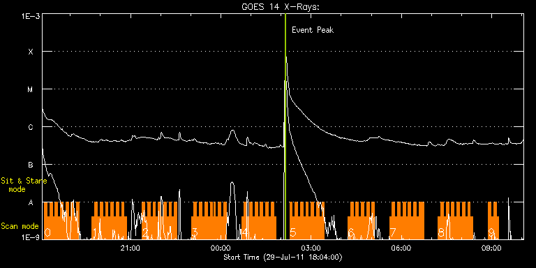 EIS Observation timeline overlay to GOES-Xray curve Code 1" 2" 40" 266" EIS Observations list for this event: STUDY ACRONYM ID DATE OBSERVED DESCRIPTION NOAA# TARGET 0 HH_Flare+AR_180x152 | 23534 | 2011/07/29 18:08:13 | AR observation | 1260 | Flare TIMELINE ID DATE OBSERVED FITS FILE XCEN (+W/-E) YCEN (+N/-S) DUR ----------------------------------------------------------------------------------------------------------------- 23534 | 2011/07/29 18:08:13.000 | eis_l0_20110729_180813.fits.gz | -144.54 | 188.99 | 5m18s 23534 | 2011/07/29 18:13:33.000 | eis_l0_20110729_181333.fits.gz | -143.77 | 188.99 | 5m18s 23534 | 2011/07/29 18:18:54.000 | eis_l0_20110729_181854.fits.gz | -143.00 | 188.99 | 5m17s 23534 | 2011/07/29 18:24:14.000 | eis_l0_20110729_182414.fits.gz | -142.23 | 188.83 | 5m19s 23534 | 2011/07/29 18:29:35.000 | eis_l0_20110729_182935.fits.gz | -141.45 | 188.83 | 5m18s 23534 | 2011/07/29 18:34:56.000 | eis_l0_20110729_183456.fits.gz | -140.76 | 188.91 | 5m18s 23534 | 2011/07/29 18:40:17.000 | eis_l0_20110729_184017.fits.gz | -139.99 | 188.91 | 5m18s 23534 | 2011/07/29 18:45:38.000 | eis_l0_20110729_184538.fits.gz | -139.29 | 188.68 | 5m18s 23534 | 2011/07/29 18:50:58.000 | eis_l0_20110729_185058.fits.gz | -138.44 | 188.76 | 5m18s 23534 | 2011/07/29 18:56:19.000 | eis_l0_20110729_185619.fits.gz | -137.75 | 188.76 | 5m17s 23534 | 2011/07/29 19:01:39.000 | eis_l0_20110729_190139.fits.gz | -136.97 | 188.83 | 5m18s 23534 | 2011/07/29 19:07:00.000 | eis_l0_20110729_190700.fits.gz | -136.12 | 188.83 | 5m18s 23534 | 2011/07/29 19:12:20.000 | eis_l0_20110729_191220.fits.gz | -135.35 | 188.76 | 5m18s 1 HH_Flare+AR_180x152 | 23535 | 2011/07/29 19:43:13 | AR observation | 1260 | Flare TIMELINE ID DATE OBSERVED FITS FILE XCEN (+W/-E) YCEN (+N/-S) DUR ----------------------------------------------------------------------------------------------------------------- 23535 | 2011/07/29 19:43:13.000 | eis_l0_20110729_194313.fits.gz | -130.87 | 188.76 | 5m19s 23535 | 2011/07/29 19:48:35.000 | eis_l0_20110729_194835.fits.gz | -130.33 | 188.76 | 5m18s 23535 | 2011/07/29 19:53:56.000 | eis_l0_20110729_195356.fits.gz | -129.40 | 188.76 | 5m17s 23535 | 2011/07/29 19:59:16.000 | eis_l0_20110729_195916.fits.gz | -128.63 | 188.60 | 5m18s 23535 | 2011/07/29 20:04:37.000 | eis_l0_20110729_200437.fits.gz | -127.93 | 188.52 | 5m18s 23535 | 2011/07/29 20:09:58.000 | eis_l0_20110729_200958.fits.gz | -127.16 | 188.60 | 5m19s 23535 | 2011/07/29 20:15:19.000 | eis_l0_20110729_201519.fits.gz | -126.31 | 188.52 | 5m18s 23535 | 2011/07/29 20:20:40.000 | eis_l0_20110729_202040.fits.gz | -125.62 | 188.60 | 5m18s 23535 | 2011/07/29 20:26:01.000 | eis_l0_20110729_202601.fits.gz | -124.85 | 188.45 | 5m18s 23535 | 2011/07/29 20:31:22.000 | eis_l0_20110729_203122.fits.gz | -124.07 | 188.45 | 5m18s 23535 | 2011/07/29 20:36:43.000 | eis_l0_20110729_203643.fits.gz | -123.22 | 188.52 | 5m18s 23535 | 2011/07/29 20:42:03.000 | eis_l0_20110729_204203.fits.gz | -122.53 | 188.52 | 5m19s 23535 | 2011/07/29 20:47:25.000 | eis_l0_20110729_204725.fits.gz | -121.76 | 188.37 | 5m18s 2 HH_Flare+AR_180x152 | 23536 | 2011/07/29 21:23:13 | AR observation | 1260 | Flare TIMELINE ID DATE OBSERVED FITS FILE XCEN (+W/-E) YCEN (+N/-S) DUR ----------------------------------------------------------------------------------------------------------------- 23536 | 2011/07/29 21:23:13.000 | eis_l0_20110729_212313.fits.gz | -116.58 | 188.60 | 5m18s 23536 | 2011/07/29 21:28:34.000 | eis_l0_20110729_212834.fits.gz | -115.81 | 188.37 | 5m18s 23536 | 2011/07/29 21:33:55.000 | eis_l0_20110729_213355.fits.gz | -114.96 | 188.29 | 5m19s 23536 | 2011/07/29 21:39:17.000 | eis_l0_20110729_213917.fits.gz | -114.34 | 188.37 | 5m17s 23536 | 2011/07/29 21:44:37.000 | eis_l0_20110729_214437.fits.gz | -113.57 | 188.37 | 5m18s 23536 | 2011/07/29 21:49:58.000 | eis_l0_20110729_214958.fits.gz | -112.79 | 188.29 | 5m17s 23536 | 2011/07/29 21:55:18.000 | eis_l0_20110729_215518.fits.gz | -112.02 | 188.29 | 5m17s 23536 | 2011/07/29 22:00:38.000 | eis_l0_20110729_220038.fits.gz | -111.33 | 188.29 | 5m19s 23536 | 2011/07/29 22:06:00.000 | eis_l0_20110729_220600.fits.gz | -110.48 | 188.14 | 5m18s 23536 | 2011/07/29 22:11:20.000 | eis_l0_20110729_221120.fits.gz | -109.86 | 188.22 | 5m18s 23536 | 2011/07/29 22:16:41.000 | eis_l0_20110729_221641.fits.gz | -109.01 | 188.29 | 5m18s 23536 | 2011/07/29 22:22:02.000 | eis_l0_20110729_222202.fits.gz | -108.16 | 188.29 | 5m18s 23536 | 2011/07/29 22:27:23.000 | eis_l0_20110729_222723.fits.gz | -107.39 | 188.14 | 5m18s 3 HH_Flare+AR_180x152 | 23538 | 2011/07/29 23:01:13 | AR observation | 1260 | Flare TIMELINE ID DATE OBSERVED FITS FILE XCEN (+W/-E) YCEN (+N/-S) DUR ----------------------------------------------------------------------------------------------------------------- 23538 | 2011/07/29 23:01:13.000 | eis_l0_20110729_230113.fits.gz | -102.68 | 188.45 | 5m18s 23538 | 2011/07/29 23:06:33.000 | eis_l0_20110729_230633.fits.gz | -101.75 | 188.22 | 5m18s 23538 | 2011/07/29 23:11:54.000 | eis_l0_20110729_231154.fits.gz | -100.90 | 188.14 | 5m17s 23538 | 2011/07/29 23:17:14.000 | eis_l0_20110729_231714.fits.gz | -100.13 | 187.98 | 5m18s 23538 | 2011/07/29 23:22:35.000 | eis_l0_20110729_232235.fits.gz | -99.51 | 187.98 | 5m18s 23538 | 2011/07/29 23:27:56.000 | eis_l0_20110729_232756.fits.gz | -98.74 | 188.14 | 5m17s 23538 | 2011/07/29 23:33:16.000 | eis_l0_20110729_233316.fits.gz | -97.96 | 188.06 | 5m18s 23538 | 2011/07/29 23:38:37.000 | eis_l0_20110729_233837.fits.gz | -97.19 | 188.06 | 5m18s 23538 | 2011/07/29 23:43:58.000 | eis_l0_20110729_234358.fits.gz | -96.42 | 187.98 | 1m56s 23538 | 2011/07/29 23:46:06.000 | eis_l0_20110729_234606.fits.gz | -96.11 | 187.98 | 3m10s 23538 | 2011/07/29 23:49:18.000 | eis_l0_20110729_234918.fits.gz | -95.72 | 188.06 | 5m19s 23538 | 2011/07/29 23:54:40.000 | eis_l0_20110729_235440.fits.gz | -94.87 | 187.98 | 5m17s 23538 | 2011/07/30 00:00:00.000 | eis_l0_20110730_000000.fits.gz | -94.10 | 187.98 | 5m18s 235