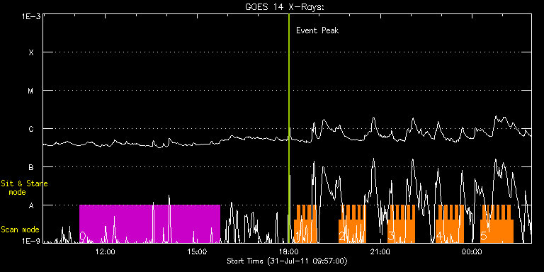 EIS Observation timeline overlay to GOES-Xray curve Code 1" 2" 40" 266" EIS Observations list for this event: STUDY ACRONYM ID DATE OBSERVED DESCRIPTION NOAA# TARGET 0 SK_CH_DIAG_320x384 | 23554 | 2011/07/31 11:08:57 | HOP 81 Polar Monitoring Campaign durin | | Coronal Hole TIMELINE ID DATE OBSERVED FITS FILE XCEN (+W/-E) YCEN (+N/-S) DUR ----------------------------------------------------------------------------------------------------------------- 23554 | 2011/07/31 11:08:57.000 | eis_l0_20110731_110857.fits.gz | -6.03 | 865.83 | 4h35m38s 1 HH_Flare+AR_180x152 | 23564 | 2011/07/31 18:10:57 | Flare monitoring of AR 11260 | 1260 | Flare TIMELINE ID DATE OBSERVED FITS FILE XCEN (+W/-E) YCEN (+N/-S) DUR ----------------------------------------------------------------------------------------------------------------- 23564 | 2011/07/31 18:10:57.000 | eis_l0_20110731_181057.fits.gz | 293.68 | 191.92 | 5m18s 23564 | 2011/07/31 18:16:17.000 | eis_l0_20110731_181617.fits.gz | 302.95 | 193.55 | 5m18s 23564 | 2011/07/31 18:21:38.000 | eis_l0_20110731_182138.fits.gz | 303.65 | 193.62 | 5m17s 23564 | 2011/07/31 18:26:58.000 | eis_l0_20110731_182658.fits.gz | 304.42 | 193.62 | 5m18s 23564 | 2011/07/31 18:32:19.000 | eis_l0_20110731_183219.fits.gz | 305.19 | 193.47 | 5m18s 23564 | 2011/07/31 18:37:40.000 | eis_l0_20110731_183740.fits.gz | 305.96 | 193.62 | 5m18s 23564 | 2011/07/31 18:43:01.000 | eis_l0_20110731_184301.fits.gz | 306.58 | 193.70 | 5m18s 23564 | 2011/07/31 18:48:22.000 | eis_l0_20110731_184822.fits.gz | 307.28 | 193.70 | 5m18s 2 HH_Flare+AR_180x152 | 23565 | 2011/07/31 19:38:10 | Flare monitoring of AR 11260 | 1260 | Flare TIMELINE ID DATE OBSERVED FITS FILE XCEN (+W/-E) YCEN (+N/-S) DUR ----------------------------------------------------------------------------------------------------------------- 23565 | 2011/07/31 19:38:10.000 | eis_l0_20110731_193810.fits.gz | 314.00 | 193.85 | 5m18s 23565 | 2011/07/31 19:43:30.000 | eis_l0_20110731_194330.fits.gz | 314.69 | 194.01 | 5m18s 23565 | 2011/07/31 19:48:51.000 | eis_l0_20110731_194851.fits.gz | 315.47 | 194.01 | 5m17s 23565 | 2011/07/31 19:54:11.000 | eis_l0_20110731_195411.fits.gz | 316.16 | 194.01 | 5m18s 23565 | 2011/07/31 19:59:32.000 | eis_l0_20110731_195932.fits.gz | 316.86 | 193.93 | 5m18s 23565 | 2011/07/31 20:04:53.000 | eis_l0_20110731_200453.fits.gz | 317.71 | 193.85 | 5m18s 23565 | 2011/07/31 20:10:14.000 | eis_l0_20110731_201014.fits.gz | 318.40 | 193.93 | 5m18s 23565 | 2011/07/31 20:15:35.000 | eis_l0_20110731_201535.fits.gz | 319.17 | 194.09 | 5m17s 23565 | 2011/07/31 20:20:55.000 | eis_l0_20110731_202055.fits.gz | 319.87 | 194.09 | 5m18s 23565 | 2011/07/31 20:26:16.000 | eis_l0_20110731_202616.fits.gz | 320.56 | 194.09 | 5m18s 3 HH_Flare+AR_180x152 | 23566 | 2011/07/31 21:14:43 | Flare monitoring of AR 11260 | 1260 | Flare TIMELINE ID DATE OBSERVED FITS FILE XCEN (+W/-E) YCEN (+N/-S) DUR ----------------------------------------------------------------------------------------------------------------- 23566 | 2011/07/31 21:14:43.000 | eis_l0_20110731_211443.fits.gz | 327.05 | 194.32 | 5m19s 23566 | 2011/07/31 21:20:04.000 | eis_l0_20110731_212004.fits.gz | 327.75 | 194.32 | 5m19s 23566 | 2011/07/31 21:25:25.000 | eis_l0_20110731_212525.fits.gz | 328.52 | 194.24 | 5m18s 23566 | 2011/07/31 21:30:45.000 | eis_l0_20110731_213045.fits.gz | 329.29 | 194.40 | 5m18s 23566 | 2011/07/31 21:36:06.000 | eis_l0_20110731_213606.fits.gz | 329.99 | 194.40 | 5m17s 23566 | 2011/07/31 21:41:26.000 | eis_l0_20110731_214126.fits.gz | 330.68 | 194.40 | 5m18s 23566 | 2011/07/31 21:46:47.000 | eis_l0_20110731_214647.fits.gz | 331.38 | 194.40 | 5m18s 23566 | 2011/07/31 21:52:08.000 | eis_l0_20110731_215208.fits.gz | 332.07 | 194.47 | 5m18s 23566 | 2011/07/31 21:57:28.000 | eis_l0_20110731_215728.fits.gz | 332.85 | 194.55 | 5m18s 23566 | 2011/07/31 22:02:49.000 | eis_l0_20110731_220249.fits.gz | 333.46 | 194.55 | 5m18s 4 HH_Flare+AR_180x152 | 23567 | 2011/07/31 22:49:43 | Flare monitoring of AR 11260 | 1260 | Flare TIMELINE ID DATE OBSERVED FITS FILE XCEN (+W/-E) YCEN (+N/-S) DUR ----------------------------------------------------------------------------------------------------------------- 23567 | 2011/07/31 22:49:43.000 | eis_l0_20110731_224943.fits.gz | 339.88 | 194.71 | 5m18s 23567 | 2011/07/31 22:55:04.000 | eis_l0_20110731_225504.fits.gz | 340.57 | 194.78 | 5m17s 23567 | 2011/07/31 23:00:24.000 | eis_l0_20110731_230024.fits.gz | 341.27 | 194.86 | 5m18s 23567 | 2011/07/31 23:05:44.000 | eis_l0_20110731_230544.fits.gz | 341.89 | 194.86 | 5m18s 23567 | 2011/07/31 23:11:05.000 | eis_l0_20110731_231105.fits.gz | 342.66 | 194.86 | 5m18s 23567 | 2011/07/31 23:16:26.000 | eis_l0_20110731_231626.fits.gz | 343.35 | 194.86 | 5m18s 23567 | 2011/07/31 23:21:47.000 | eis_l0_20110731_232147.fits.gz | 344.20 | 194.94 | 5m17s 23567 | 2011/07/31 23:27:07.000 | eis_l0_20110731_232707.fits.gz | 344.82 | 194.94 | 5m17s 23567 | 2011/07/31 23:32:27.000 | eis_l0_20110731_233227.fits.gz | 345.67 | 194.86 | 5m17s 23567 | 2011/07/31 23:37:47.000 | eis_l0_20110731_233747.fits.gz | 346.21 | 195.01 | 5m18s 5 HH_Flare+AR_180x152 | 23568 | 2011/08/01 00:16:13 | Flare monitoring of AR 11260 | 1260 | Flare TIMELINE ID DATE OBSERVED FITS FILE XCEN (+W/-E) YCEN (+N/-S) DUR ----------------------------------------------------------------------------------------------------------------- 23568 | 2011/08/01 00:16:13.000 | eis_l0_20110801_001613.fits.gz | 351.31 | 195.32 | 5m17s 23568 | 2011/08/01 00:21:33.000 | eis_l0_20110801_002133.fits.gz | 352.08 | 195.24 | 5m18s 23568 | 2011/08/01 00:26:53.000 | eis_l0_20110801_002653.fits.gz | 352.78 | 195.24 | 2m49s 23568 | 2011/08/01 00:30:05.000 | eis_l0_20110801_003005.fits.gz | 353.24 | 195.17 | 2m6s 23568 | 2011/08/01 00:32:14.000 | eis_l0_20110801_003214.fits.gz | 353.55 | 195.24 | 5m17s 23568 | 2011/08/01 00:37:33.000 | eis_l0_20110801_003733.fits.gz | 354.17 | 195.40 | 5m19s 23568 | 2011/08/01 00:42:54.000 | eis_l0_20110801_004254.fi