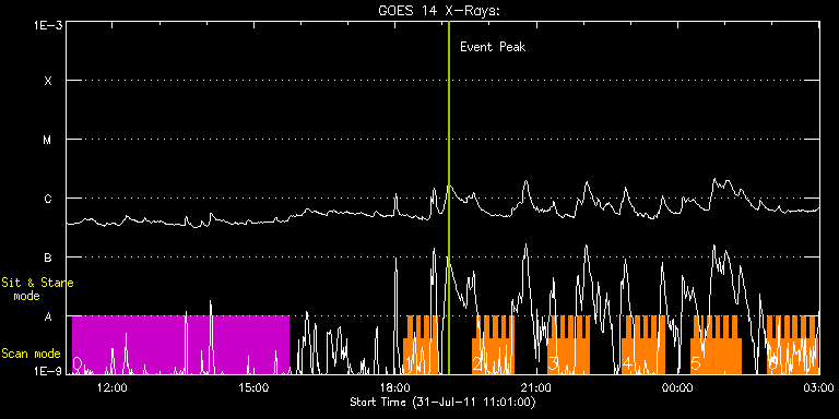 EIS Observation timeline overlay to GOES-Xray curve Code 1" 2" 40" 266" EIS Observations list for this event: STUDY ACRONYM ID DATE OBSERVED DESCRIPTION NOAA# TARGET 0 SK_CH_DIAG_320x384 | 23554 | 2011/07/31 11:08:57 | HOP 81 Polar Monitoring Campaign durin | | Coronal Hole TIMELINE ID DATE OBSERVED FITS FILE XCEN (+W/-E) YCEN (+N/-S) DUR ----------------------------------------------------------------------------------------------------------------- 23554 | 2011/07/31 11:08:57.000 | eis_l0_20110731_110857.fits.gz | -6.03 | 865.83 | 4h35m38s 1 HH_Flare+AR_180x152 | 23564 | 2011/07/31 18:10:57 | Flare monitoring of AR 11260 | 1260 | Flare TIMELINE ID DATE OBSERVED FITS FILE XCEN (+W/-E) YCEN (+N/-S) DUR ----------------------------------------------------------------------------------------------------------------- 23564 | 2011/07/31 18:10:57.000 | eis_l0_20110731_181057.fits.gz | 293.68 | 191.92 | 5m18s 23564 | 2011/07/31 18:16:17.000 | eis_l0_20110731_181617.fits.gz | 302.95 | 193.55 | 5m18s 23564 | 2011/07/31 18:21:38.000 | eis_l0_20110731_182138.fits.gz | 303.65 | 193.62 | 5m17s 23564 | 2011/07/31 18:26:58.000 | eis_l0_20110731_182658.fits.gz | 304.42 | 193.62 | 5m18s 23564 | 2011/07/31 18:32:19.000 | eis_l0_20110731_183219.fits.gz | 305.19 | 193.47 | 5m18s 23564 | 2011/07/31 18:37:40.000 | eis_l0_20110731_183740.fits.gz | 305.96 | 193.62 | 5m18s 23564 | 2011/07/31 18:43:01.000 | eis_l0_20110731_184301.fits.gz | 306.58 | 193.70 | 5m18s 23564 | 2011/07/31 18:48:22.000 | eis_l0_20110731_184822.fits.gz | 307.28 | 193.70 | 5m18s 2 HH_Flare+AR_180x152 | 23565 | 2011/07/31 19:38:10 | Flare monitoring of AR 11260 | 1260 | Flare TIMELINE ID DATE OBSERVED FITS FILE XCEN (+W/-E) YCEN (+N/-S) DUR ----------------------------------------------------------------------------------------------------------------- 23565 | 2011/07/31 19:38:10.000 | eis_l0_20110731_193810.fits.gz | 314.00 | 193.85 | 5m18s 23565 | 2011/07/31 19:43:30.000 | eis_l0_20110731_194330.fits.gz | 314.69 | 194.01 | 5m18s 23565 | 2011/07/31 19:48:51.000 | eis_l0_20110731_194851.fits.gz | 315.47 | 194.01 | 5m17s 23565 | 2011/07/31 19:54:11.000 | eis_l0_20110731_195411.fits.gz | 316.16 | 194.01 | 5m18s 23565 | 2011/07/31 19:59:32.000 | eis_l0_20110731_195932.fits.gz | 316.86 | 193.93 | 5m18s 23565 | 2011/07/31 20:04:53.000 | eis_l0_20110731_200453.fits.gz | 317.71 | 193.85 | 5m18s 23565 | 2011/07/31 20:10:14.000 | eis_l0_20110731_201014.fits.gz | 318.40 | 193.93 | 5m18s 23565 | 2011/07/31 20:15:35.000 | eis_l0_20110731_201535.fits.gz | 319.17 | 194.09 | 5m17s 23565 | 2011/07/31 20:20:55.000 | eis_l0_20110731_202055.fits.gz | 319.87 | 194.09 | 5m18s 23565 | 2011/07/31 20:26:16.000 | eis_l0_20110731_202616.fits.gz | 320.56 | 194.09 | 5m18s 3 HH_Flare+AR_180x152 | 23566 | 2011/07/31 21:14:43 | Flare monitoring of AR 11260 | 1260 | Flare TIMELINE ID DATE OBSERVED FITS FILE XCEN (+W/-E) YCEN (+N/-S) DUR ----------------------------------------------------------------------------------------------------------------- 23566 | 2011/07/31 21:14:43.000 | eis_l0_20110731_211443.fits.gz | 327.05 | 194.32 | 5m19s 23566 | 2011/07/31 21:20:04.000 | eis_l0_20110731_212004.fits.gz | 327.75 | 194.32 | 5m19s 23566 | 2011/07/31 21:25:25.000 | eis_l0_20110731_212525.fits.gz | 328.52 | 194.24 | 5m18s 23566 | 2011/07/31 21:30:45.000 | eis_l0_20110731_213045.fits.gz | 329.29 | 194.40 | 5m18s 23566 | 2011/07/31 21:36:06.000 | eis_l0_20110731_213606.fits.gz | 329.99 | 194.40 | 5m17s 23566 | 2011/07/31 21:41:26.000 | eis_l0_20110731_214126.fits.gz | 330.68 | 194.40 | 5m18s 23566 | 2011/07/31 21:46:47.000 | eis_l0_20110731_214647.fits.gz | 331.38 | 194.40 | 5m18s 23566 | 2011/07/31 21:52:08.000 | eis_l0_20110731_215208.fits.gz | 332.07 | 194.47 | 5m18s 23566 | 2011/07/31 21:57:28.000 | eis_l0_20110731_215728.fits.gz | 332.85 | 194.55 | 5m18s 23566 | 2011/07/31 22:02:49.000 | eis_l0_20110731_220249.fits.gz | 333.46 | 194.55 | 5m18s 4 HH_Flare+AR_180x152 | 23567 | 2011/07/31 22:49:43 | Flare monitoring of AR 11260 | 1260 | Flare TIMELINE ID DATE OBSERVED FITS FILE XCEN (+W/-E) YCEN (+N/-S) DUR ----------------------------------------------------------------------------------------------------------------- 23567 | 2011/07/31 22:49:43.000 | eis_l0_20110731_224943.fits.gz | 339.88 | 194.71 | 5m18s 23567 | 2011/07/31 22:55:04.000 | eis_l0_20110731_225504.fits.gz | 340.57 | 194.78 | 5m17s 23567 | 2011/07/31 23:00:24.000 | eis_l0_20110731_230024.fits.gz | 341.27 | 194.86 | 5m18s 23567 | 2011/07/31 23:05:44.000 | eis_l0_20110731_230544.fits.gz | 341.89 | 194.86 | 5m18s 23567 | 2011/07/31 23:11:05.000 | eis_l0_20110731_231105.fits.gz | 342.66 | 194.86 | 5m18s 23567 | 2011/07/31 23:16:26.000 | eis_l0_20110731_231626.fits.gz | 343.35 | 194.86 | 5m18s 23567 | 2011/07/31 23:21:47.000 | eis_l0_20110731_232147.fits.gz | 344.20 | 194.94 | 5m17s 23567 | 2011/07/31 23:27:07.000 | eis_l0_20110731_232707.fits.gz | 344.82 | 194.94 | 5m17s 23567 | 2011/07/31 23:32:27.000 | eis_l0_20110731_233227.fits.gz | 345.67 | 194.86 | 5m17s 23567 | 2011/07/31 23:37:47.000 | eis_l0_20110731_233747.fits.gz | 346.21 | 195.01 | 5m18s 5 HH_Flare+AR_180x152 | 23568 | 2011/08/01 00:16:13 | Flare monitoring of AR 11260 | 1260 | Flare TIMELINE ID DATE OBSERVED FITS FILE XCEN (+W/-E) YCEN (+N/-S) DUR ----------------------------------------------------------------------------------------------------------------- 23568 | 2011/08/01 00:16:13.000 | eis_l0_20110801_001613.fits.gz | 351.31 | 195.32 | 5m17s 23568 | 2011/08/01 00:21:33.000 | eis_l0_20110801_002133.fits.gz | 352.08 | 195.24 | 5m18s 23568 | 2011/08/01 00:26:53.000 | eis_l0_20110801_002653.fits.gz | 352.78 | 195.24 | 2m49s 23568 | 2011/08/01 00:30:05.000 | eis_l0_20110801_003005.fits.gz | 353.24 | 195.17 | 2m6s 23568 | 2011/08/01 00:32:14.000 | eis_l0_20110801_003214.fits.gz | 353.55 | 195.24 | 5m17s 23568 | 2011/08/01 00:37:33.000 | eis_l0_20110801_003733.fits.gz | 354.17 | 195.40 | 5m19s 23568 | 2011/08/01 00:42:54.000 | eis_l0_20110801_004254.fi