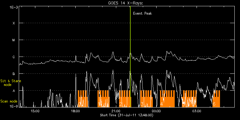 EIS Observation timeline overlay to GOES-Xray curve Code 1" 2" 40" 266" EIS Observations list for this event: STUDY ACRONYM ID DATE OBSERVED DESCRIPTION NOAA# TARGET 0 HH_Flare+AR_180x152 | 23564 | 2011/07/31 18:10:57 | Flare monitoring of AR 11260 | 1260 | Flare TIMELINE ID DATE OBSERVED FITS FILE XCEN (+W/-E) YCEN (+N/-S) DUR ----------------------------------------------------------------------------------------------------------------- 23564 | 2011/07/31 18:10:57.000 | eis_l0_20110731_181057.fits.gz | 293.68 | 191.92 | 5m18s 23564 | 2011/07/31 18:16:17.000 | eis_l0_20110731_181617.fits.gz | 302.95 | 193.55 | 5m18s 23564 | 2011/07/31 18:21:38.000 | eis_l0_20110731_182138.fits.gz | 303.65 | 193.62 | 5m17s 23564 | 2011/07/31 18:26:58.000 | eis_l0_20110731_182658.fits.gz | 304.42 | 193.62 | 5m18s 23564 | 2011/07/31 18:32:19.000 | eis_l0_20110731_183219.fits.gz | 305.19 | 193.47 | 5m18s 23564 | 2011/07/31 18:37:40.000 | eis_l0_20110731_183740.fits.gz | 305.96 | 193.62 | 5m18s 23564 | 2011/07/31 18:43:01.000 | eis_l0_20110731_184301.fits.gz | 306.58 | 193.70 | 5m18s 23564 | 2011/07/31 18:48:22.000 | eis_l0_20110731_184822.fits.gz | 307.28 | 193.70 | 5m18s 1 HH_Flare+AR_180x152 | 23565 | 2011/07/31 19:38:10 | Flare monitoring of AR 11260 | 1260 | Flare TIMELINE ID DATE OBSERVED FITS FILE XCEN (+W/-E) YCEN (+N/-S) DUR ----------------------------------------------------------------------------------------------------------------- 23565 | 2011/07/31 19:38:10.000 | eis_l0_20110731_193810.fits.gz | 314.00 | 193.85 | 5m18s 23565 | 2011/07/31 19:43:30.000 | eis_l0_20110731_194330.fits.gz | 314.69 | 194.01 | 5m18s 23565 | 2011/07/31 19:48:51.000 | eis_l0_20110731_194851.fits.gz | 315.47 | 194.01 | 5m17s 23565 | 2011/07/31 19:54:11.000 | eis_l0_20110731_195411.fits.gz | 316.16 | 194.01 | 5m18s 23565 | 2011/07/31 19:59:32.000 | eis_l0_20110731_195932.fits.gz | 316.86 | 193.93 | 5m18s 23565 | 2011/07/31 20:04:53.000 | eis_l0_20110731_200453.fits.gz | 317.71 | 193.85 | 5m18s 23565 | 2011/07/31 20:10:14.000 | eis_l0_20110731_201014.fits.gz | 318.40 | 193.93 | 5m18s 23565 | 2011/07/31 20:15:35.000 | eis_l0_20110731_201535.fits.gz | 319.17 | 194.09 | 5m17s 23565 | 2011/07/31 20:20:55.000 | eis_l0_20110731_202055.fits.gz | 319.87 | 194.09 | 5m18s 23565 | 2011/07/31 20:26:16.000 | eis_l0_20110731_202616.fits.gz | 320.56 | 194.09 | 5m18s 2 HH_Flare+AR_180x152 | 23566 | 2011/07/31 21:14:43 | Flare monitoring of AR 11260 | 1260 | Flare TIMELINE ID DATE OBSERVED FITS FILE XCEN (+W/-E) YCEN (+N/-S) DUR ----------------------------------------------------------------------------------------------------------------- 23566 | 2011/07/31 21:14:43.000 | eis_l0_20110731_211443.fits.gz | 327.05 | 194.32 | 5m19s 23566 | 2011/07/31 21:20:04.000 | eis_l0_20110731_212004.fits.gz | 327.75 | 194.32 | 5m19s 23566 | 2011/07/31 21:25:25.000 | eis_l0_20110731_212525.fits.gz | 328.52 | 194.24 | 5m18s 23566 | 2011/07/31 21:30:45.000 | eis_l0_20110731_213045.fits.gz | 329.29 | 194.40 | 5m18s 23566 | 2011/07/31 21:36:06.000 | eis_l0_20110731_213606.fits.gz | 329.99 | 194.40 | 5m17s 23566 | 2011/07/31 21:41:26.000 | eis_l0_20110731_214126.fits.gz | 330.68 | 194.40 | 5m18s 23566 | 2011/07/31 21:46:47.000 | eis_l0_20110731_214647.fits.gz | 331.38 | 194.40 | 5m18s 23566 | 2011/07/31 21:52:08.000 | eis_l0_20110731_215208.fits.gz | 332.07 | 194.47 | 5m18s 23566 | 2011/07/31 21:57:28.000 | eis_l0_20110731_215728.fits.gz | 332.85 | 194.55 | 5m18s 23566 | 2011/07/31 22:02:49.000 | eis_l0_20110731_220249.fits.gz | 333.46 | 194.55 | 5m18s 3 HH_Flare+AR_180x152 | 23567 | 2011/07/31 22:49:43 | Flare monitoring of AR 11260 | 1260 | Flare TIMELINE ID DATE OBSERVED FITS FILE XCEN (+W/-E) YCEN (+N/-S) DUR ----------------------------------------------------------------------------------------------------------------- 23567 | 2011/07/31 22:49:43.000 | eis_l0_20110731_224943.fits.gz | 339.88 | 194.71 | 5m18s 23567 | 2011/07/31 22:55:04.000 | eis_l0_20110731_225504.fits.gz | 340.57 | 194.78 | 5m17s 23567 | 2011/07/31 23:00:24.000 | eis_l0_20110731_230024.fits.gz | 341.27 | 194.86 | 5m18s 23567 | 2011/07/31 23:05:44.000 | eis_l0_20110731_230544.fits.gz | 341.89 | 194.86 | 5m18s 23567 | 2011/07/31 23:11:05.000 | eis_l0_20110731_231105.fits.gz | 342.66 | 194.86 | 5m18s 23567 | 2011/07/31 23:16:26.000 | eis_l0_20110731_231626.fits.gz | 343.35 | 194.86 | 5m18s 23567 | 2011/07/31 23:21:47.000 | eis_l0_20110731_232147.fits.gz | 344.20 | 194.94 | 5m17s 23567 | 2011/07/31 23:27:07.000 | eis_l0_20110731_232707.fits.gz | 344.82 | 194.94 | 5m17s 23567 | 2011/07/31 23:32:27.000 | eis_l0_20110731_233227.fits.gz | 345.67 | 194.86 | 5m17s 23567 | 2011/07/31 23:37:47.000 | eis_l0_20110731_233747.fits.gz | 346.21 | 195.01 | 5m18s 4 HH_Flare+AR_180x152 | 23568 | 2011/08/01 00:16:13 | Flare monitoring of AR 11260 | 1260 | Flare TIMELINE ID DATE OBSERVED FITS FILE XCEN (+W/-E) YCEN (+N/-S) DUR ----------------------------------------------------------------------------------------------------------------- 23568 | 2011/08/01 00:16:13.000 | eis_l0_20110801_001613.fits.gz | 351.31 | 195.32 | 5m17s 23568 | 2011/08/01 00:21:33.000 | eis_l0_20110801_002133.fits.gz | 352.08 | 195.24 | 5m18s 23568 | 2011/08/01 00:26:53.000 | eis_l0_20110801_002653.fits.gz | 352.78 | 195.24 | 2m49s 23568 | 2011/08/01 00:30:05.000 | eis_l0_20110801_003005.fits.gz | 353.24 | 195.17 | 2m6s 23568 | 2011/08/01 00:32:14.000 | eis_l0_20110801_003214.fits.gz | 353.55 | 195.24 | 5m17s 23568 | 2011/08/01 00:37:33.000 | eis_l0_20110801_003733.fits.gz | 354.17 | 195.40 | 5m19s 23568 | 2011/08/01 00:42:54.000 | eis_l0_20110801_004254.fits.gz | 354.94 | 195.24 | 5m18s 23568 | 2011/08/01 00:48:15.000 | eis_l0_20110801_004815.fits.gz | 355.56 | 195.24 | 5m18s 23568 | 2011/08/01 00:53:35.000 | eis_l0_20110801_005335.fits.gz | 356.33 | 195.32 | 5m19s 23568 | 2011/08/01 00:58:57.000 | eis_l0_20110801_005857.fits.gz | 357.10 | 195.32 | 5m18s 23568 | 2011/08/01 01:04:18.000 | eis_l0_20110801_010418.fits.gz | 357.72 | 1