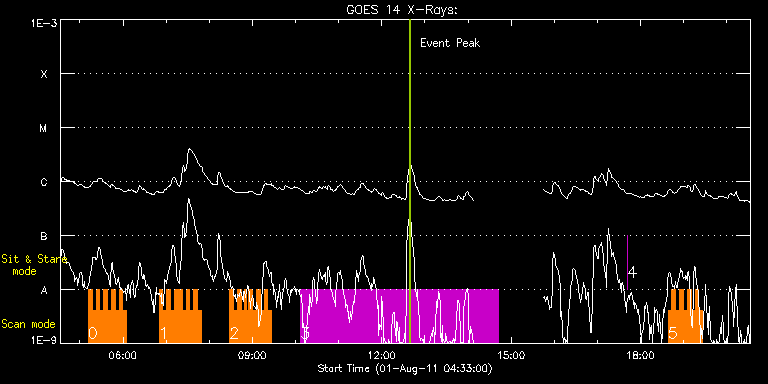 EIS Observation timeline overlay to GOES-Xray curve Code 1" 2" 40" 266" EIS Observations list for this event: STUDY ACRONYM ID DATE OBSERVED DESCRIPTION NOAA# TARGET 0 HH_Flare+AR_180x152 | 23570 | 2011/08/01 05:11:43 | Flare monitoring of AR 11261 | 1261 | Flare TIMELINE ID DATE OBSERVED FITS FILE XCEN (+W/-E) YCEN (+N/-S) DUR ----------------------------------------------------------------------------------------------------------------- 23570 | 2011/08/01 05:11:43.000 | eis_l0_20110801_051143.fits.gz | -89.08 | 144.73 | 5m18s 23570 | 2011/08/01 05:17:04.000 | eis_l0_20110801_051704.fits.gz | -88.15 | 144.49 | 5m18s 23570 | 2011/08/01 05:22:25.000 | eis_l0_20110801_052225.fits.gz | -87.38 | 144.42 | 5m18s 23570 | 2011/08/01 05:27:46.000 | eis_l0_20110801_052746.fits.gz | -86.76 | 144.34 | 5m18s 23570 | 2011/08/01 05:33:07.000 | eis_l0_20110801_053307.fits.gz | -85.99 | 144.57 | 5m18s 23570 | 2011/08/01 05:38:28.000 | eis_l0_20110801_053828.fits.gz | -85.14 | 144.42 | 5m18s 23570 | 2011/08/01 05:43:49.000 | eis_l0_20110801_054349.fits.gz | -84.37 | 144.34 | 5m17s 23570 | 2011/08/01 05:49:09.000 | eis_l0_20110801_054909.fits.gz | -83.67 | 144.42 | 5m17s 23570 | 2011/08/01 05:54:29.000 | eis_l0_20110801_055429.fits.gz | -82.82 | 144.49 | 5m17s 23570 | 2011/08/01 05:59:49.000 | eis_l0_20110801_055949.fits.gz | -81.97 | 144.42 | 5m19s 1 HH_Flare+AR_180x152 | 23571 | 2011/08/01 06:50:13 | Flare monitoring of AR 11260 | 1260 | Flare TIMELINE ID DATE OBSERVED FITS FILE XCEN (+W/-E) YCEN (+N/-S) DUR ----------------------------------------------------------------------------------------------------------------- 23571 | 2011/08/01 06:50:13.000 | eis_l0_20110801_065013.fits.gz | 402.99 | 197.49 | 5m17s 23571 | 2011/08/01 06:55:33.000 | eis_l0_20110801_065533.fits.gz | 403.68 | 197.25 | 5m18s 23571 | 2011/08/01 07:00:54.000 | eis_l0_20110801_070054.fits.gz | 404.45 | 197.33 | 5m17s 23571 | 2011/08/01 07:06:14.000 | eis_l0_20110801_070614.fits.gz | 405.15 | 197.33 | 5m18s 23571 | 2011/08/01 07:11:35.000 | eis_l0_20110801_071135.fits.gz | 405.69 | 197.49 | 5m17s 23571 | 2011/08/01 07:16:55.000 | eis_l0_20110801_071655.fits.gz | 406.54 | 197.33 | 2m6s 23571 | 2011/08/01 07:19:14.000 | eis_l0_20110801_071914.fits.gz | 406.77 | 197.33 | 3m 23571 | 2011/08/01 07:22:16.000 | eis_l0_20110801_072216.fits.gz | 407.08 | 197.49 | 5m18s 23571 | 2011/08/01 07:27:37.000 | eis_l0_20110801_072737.fits.gz | 407.85 | 197.33 | 5m18s 23571 | 2011/08/01 07:32:58.000 | eis_l0_20110801_073258.fits.gz | 408.47 | 197.49 | 5m18s 23571 | 2011/08/01 07:38:19.000 | eis_l0_20110801_073819.fits.gz | 409.17 | 197.49 | 5m18s 23571 | 2011/08/01 07:43:40.000 | eis_l0_20110801_074340.fits.gz | 409.94 | 197.56 | 5m18s 2 HH_Flare+AR_180x152 | 23572 | 2011/08/01 08:28:12 | Flare monitoring of AR 11260 | 1260 | Flare TIMELINE ID DATE OBSERVED FITS FILE XCEN (+W/-E) YCEN (+N/-S) DUR ----------------------------------------------------------------------------------------------------------------- 23572 | 2011/08/01 08:28:12.000 | eis_l0_20110801_082812.fits.gz | 415.50 | 197.95 | 5m17s 23572 | 2011/08/01 08:33:32.000 | eis_l0_20110801_083332.fits.gz | 416.27 | 197.87 | 5m18s 23572 | 2011/08/01 08:38:52.000 | eis_l0_20110801_083852.fits.gz | 417.05 | 197.95 | 5m18s 23572 | 2011/08/01 08:44:13.000 | eis_l0_20110801_084413.fits.gz | 417.59 | 197.95 | 5m18s 23572 | 2011/08/01 08:49:34.000 | eis_l0_20110801_084934.fits.gz | 418.36 | 197.87 | 2m39s 23572 | 2011/08/01 08:53:07.000 | eis_l0_20110801_085307.fits.gz | 418.82 | 197.95 | 1m46s 23572 | 2011/08/01 08:54:55.000 | eis_l0_20110801_085455.fits.gz | 419.13 | 197.79 | 5m18s 23572 | 2011/08/01 09:00:16.000 | eis_l0_20110801_090016.fits.gz | 419.67 | 197.95 | 5m18s 23572 | 2011/08/01 09:05:37.000 | eis_l0_20110801_090537.fits.gz | 420.37 | 197.95 | 5m17s 23572 | 2011/08/01 09:10:57.000 | eis_l0_20110801_091057.fits.gz | 421.06 | 198.10 | 5m17s 23572 | 2011/08/01 09:16:17.000 | eis_l0_20110801_091617.fits.gz | 421.76 | 198.03 | 5m17s 23572 | 2011/08/01 09:21:37.000 | eis_l0_20110801_092137.fits.gz | 422.53 | 198.03 | 5m18s 3 SK_CH_DIAG_320x384 | 23555 | 2011/08/01 10:07:26 | HOP 81 Polar Monitoring Campaign durin | | Coronal Hole TIMELINE ID DATE OBSERVED FITS FILE XCEN (+W/-E) YCEN (+N/-S) DUR ----------------------------------------------------------------------------------------------------------------- 23555 | 2011/08/01 10:07:26.000 | eis_l0_20110801_100726.fits.gz | -5.80 | -934.27 | 4h35m37s 4 regcal077 | 23553 | 2011/08/01 17:42:11 | Flatfield, 2 exposures, led 80ms, full | | Engineering TIMELINE ID DATE OBSERVED FITS FILE XCEN (+W/-E) YCEN (+N/-S) DUR ----------------------------------------------------------------------------------------------------------------- 23553 | 2011/08/01 17:42:11.000 | eis_l0_20110801_174211.fits.gz | 14.43 | -50.58 | 4s 5 HH_Flare+AR_180x152 | 23573 | 2011/08/01 18:38:25 | Flare monitoring of AR 11260 | 1260 | Flare TIMELINE ID DATE OBSERVED FITS FILE XCEN (+W/-E) YCEN (+N/-S) DUR ----------------------------------------------------------------------------------------------------------------- 23573 | 2011/08/01 18:38:25.000 | eis_l0_20110801_183825.fits.gz | 491.67 | 201.66 | 5m18s 23573 | 2011/08/01 18:43:46.000 | eis_l0_20110801_184346.fits.gz | 492.29 | 201.81 | 5m18s 23573 | 2011/08/01 18:49:07.000 | eis_l0_20110801_184907.fits.gz | 492.98 | 201.81 | 5m18s 23573 | 2011/08/01 18:54:28.000 | eis_l0_20110801_185428.fits.gz | 493.60 | 201.89 | 5m17s 23573 | 2011/08/01 18:59:48.000 | eis_l0_20110801_185948.fits.gz | 494.22 | 201.89 | 5m18s 23573 | 2011/08/01 19:05:09.000 | eis_l0_20110801_190509.fits.gz | 494.99 | 201.97 | 5m17s 23573 | 2011/08/01 19:10:29.000 | eis_l0_20110801_191029.fits.gz | 495.45 | 201.97 | 5m17s 23573 | 2011/08/01 19:15:49.000 | eis_l0_20110801_191549.fits.gz | 496.15 | 202.12 | 5m17s 23573 | 2011/08/01 19:21:09.000 | eis_l0_20110801_192109.fits.gz | 496.84 | 202.12 | 5m17s : Check study information : Download file : View thumbnails For 