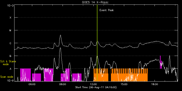 EIS Observation timeline overlay to GOES-Xray curve Code 1" 2" 40" 266" EIS Observations list for this event: STUDY ACRONYM ID DATE OBSERVED DESCRIPTION NOAA# TARGET 0 HPW021_VEL_120x512v1 | 23724 | 2011/08/06 04:50:12 | Active Region Temperature and Flows | 1263 | Active Region TIMELINE ID DATE OBSERVED FITS FILE XCEN (+W/-E) YCEN (+N/-S) DUR ----------------------------------------------------------------------------------------------------------------- 23724 | 2011/08/06 04:50:12.000 | eis_l0_20110806_045012.fits.gz | 497.65 | 190.91 | 1h1m54s 1 HH_FWHM_CAL_Norikura | 23713 | 2011/08/06 06:00:13 | Quiet Sun and Facular Region Propertie | 1263 | Active Region TIMELINE ID DATE OBSERVED FITS FILE XCEN (+W/-E) YCEN (+N/-S) DUR ----------------------------------------------------------------------------------------------------------------- 23713 | 2011/08/06 06:00:13.000 | eis_l0_20110806_060013.fits.gz | 507.91 | 158.32 | 51m53s 2 HH_FWHM_CAL_Norikura | 23714 | 2011/08/06 07:10:13 | Quiet Sun and Facular Region Propertie | 1263 | Active Region TIMELINE ID DATE OBSERVED FITS FILE XCEN (+W/-E) YCEN (+N/-S) DUR ----------------------------------------------------------------------------------------------------------------- 23714 | 2011/08/06 07:10:13.000 | eis_l0_20110806_071013.fits.gz | 516.48 | 159.02 | 51m53s 3 HH_FWHM_CAL_Norikura | 23715 | 2011/08/06 08:48:12 | Quiet Sun and Facular Region Propertie | 1263 | Active Region TIMELINE ID DATE OBSERVED FITS FILE XCEN (+W/-E) YCEN (+N/-S) DUR ----------------------------------------------------------------------------------------------------------------- 23715 | 2011/08/06 08:48:12.000 | eis_l0_20110806_084812.fits.gz | 528.22 | 159.87 | 27m39s 23715 | 2011/08/06 09:15:53.000 | eis_l0_20110806_091553.fits.gz | 531.54 | 160.18 | 24m12s 4 HH_FWHM_CAL_Norikura | 23727 | 2011/08/06 09:57:14 | Quiet Sun and Facular Region Propertie | 1263 | Active Region TIMELINE ID DATE OBSERVED FITS FILE XCEN (+W/-E) YCEN (+N/-S) DUR ----------------------------------------------------------------------------------------------------------------- 23727 | 2011/08/06 09:57:14.000 | eis_l0_20110806_095714.fits.gz | 536.41 | 160.56 | 51m53s 5 HH_Flare+AR_180x152 | 23728 | 2011/08/06 12:02:27 | Major flare Watch | 1263 | Flare TIMELINE ID DATE OBSERVED FITS FILE XCEN (+W/-E) YCEN (+N/-S) DUR ----------------------------------------------------------------------------------------------------------------- 23728 | 2011/08/06 12:02:27.000 | eis_l0_20110806_120227.fits.gz | 528.98 | 182.11 | 5m18s 23728 | 2011/08/06 12:07:48.000 | eis_l0_20110806_120748.fits.gz | 529.67 | 182.04 | 5m18s 23728 | 2011/08/06 12:13:09.000 | eis_l0_20110806_121309.fits.gz | 530.37 | 182.04 | 5m18s 23728 | 2011/08/06 12:18:29.000 | eis_l0_20110806_121829.fits.gz | 531.06 | 182.19 | 5m18s 23728 | 2011/08/06 12:23:50.000 | eis_l0_20110806_122350.fits.gz | 531.68 | 182.11 | 5m17s 23728 | 2011/08/06 12:29:10.000 | eis_l0_20110806_122910.fits.gz | 532.22 | 182.27 | 5m18s 23728 | 2011/08/06 12:34:31.000 | eis_l0_20110806_123431.fits.gz | 532.84 | 182.27 | 5m18s 23728 | 2011/08/06 12:39:52.000 | eis_l0_20110806_123952.fits.gz | 533.54 | 182.35 | 5m18s 23728 | 2011/08/06 12:45:13.000 | eis_l0_20110806_124513.fits.gz | 534.15 | 182.42 | 5m18s 23728 | 2011/08/06 12:50:34.000 | eis_l0_20110806_125034.fits.gz | 534.77 | 182.42 | 5m18s 23728 | 2011/08/06 12:55:54.000 | eis_l0_20110806_125554.fits.gz | 535.31 | 182.58 | 5m18s 23728 | 2011/08/06 13:01:15.000 | eis_l0_20110806_130115.fits.gz | 536.09 | 182.58 | 5m18s 23728 | 2011/08/06 13:06:35.000 | eis_l0_20110806_130635.fits.gz | 536.63 | 182.58 | 5m18s 23728 | 2011/08/06 13:11:56.000 | eis_l0_20110806_131156.fits.gz | 537.24 | 182.81 | 5m17s 23728 | 2011/08/06 13:17:16.000 | eis_l0_20110806_131716.fits.gz | 537.86 | 182.81 | 5m18s 23728 | 2011/08/06 13:22:37.000 | eis_l0_20110806_132237.fits.gz | 538.48 | 182.89 | 4m46s 23728 | 2011/08/06 13:43:26.000 | eis_l0_20110806_134326.fits.gz | 540.95 | 182.89 | 31s 23728 | 2011/08/06 13:44:00.000 | eis_l0_20110806_134400.fits.gz | 541.03 | 182.89 | 5m18s 23728 | 2011/08/06 13:49:20.000 | eis_l0_20110806_134920.fits.gz | 541.65 | 182.89 | 5m19s 23728 | 2011/08/06 13:54:42.000 | eis_l0_20110806_135442.fits.gz | 542.27 | 182.96 | 5m18s 23728 | 2011/08/06 14:00:03.000 | eis_l0_20110806_140003.fits.gz | 542.88 | 183.04 | 5m18s 23728 | 2011/08/06 14:05:24.000 | eis_l0_20110806_140524.fits.gz | 543.42 | 183.12 | 5m17s 23728 | 2011/08/06 14:10:44.000 | eis_l0_20110806_141044.fits.gz | 544.20 | 183.12 | 5m18s 23728 | 2011/08/06 14:16:05.000 | eis_l0_20110806_141605.fits.gz | 544.74 | 183.12 | 5m18s 23728 | 2011/08/06 14:21:26.000 | eis_l0_20110806_142126.fits.gz | 545.35 | 183.27 | 5m18s 23728 | 2011/08/06 14:26:47.000 | eis_l0_20110806_142647.fits.gz | 545.97 | 183.35 | 5m19s 23728 | 2011/08/06 14:32:08.000 | eis_l0_20110806_143208.fits.gz | 546.59 | 183.35 | 5m18s 23728 | 2011/08/06 14:37:29.000 | eis_l0_20110806_143729.fits.gz | 547.21 | 183.35 | 5m18s 23728 | 2011/08/06 14:42:50.000 | eis_l0_20110806_144250.fits.gz | 547.90 | 183.43 | 5m17s 23728 | 2011/08/06 14:48:10.000 | eis_l0_20110806_144810.fits.gz | 548.60 | 168.75 | 5m18s 23728 | 2011/08/06 14:53:30.000 | eis_l0_20110806_145330.fits.gz | 549.14 | 183.58 | 5m18s 23728 | 2011/08/06 14:58:51.000 | eis_l0_20110806_145851.fits.gz | 549.76 | 183.43 | 5m17s 23728 | 2011/08/06 15:04:11.000 | eis_l0_20110806_150411.fits.gz | 550.38 | 183.58 | 5m17s 23728 | 2011/08/06 15:09:31.000 | eis_l0_20110806_150931.fits.gz | 550.99 | 183.58 | 5m18s 23728 | 2011/08/06 15:14:52.000 | eis_l0_20110806_151452.fits.gz | 551.53 | 183.74 | 5m18s 23728 | 2011/08/06 15:20:13.000 | eis_l0_20110806_152013.fits.gz | 552.23 | 183.74 | 5m18s 23728 | 2011/08/06 15:25:34.000 | eis_l0_20110806_152534.fits.gz | 552.85 | 183.74 | 5m17s 23728 | 2011/08/06 15:30:54.000 | eis_l0_20110806_153054.fits.gz | 553.47 | 183.74 | 5m18s 23728 | 2011/08/06 15:36:15.000 | eis_l0_20110806_153615.fits.gz | 554.08 | 
