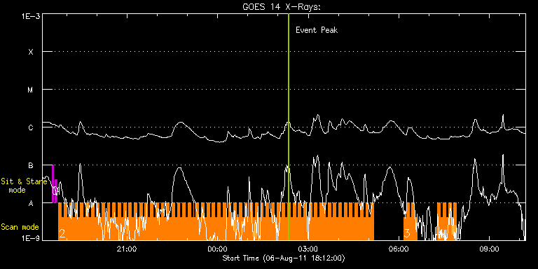 EIS Observation timeline overlay to GOES-Xray curve Code 1" 2" 40" 266" EIS Observations list for this event: STUDY ACRONYM ID DATE OBSERVED DESCRIPTION NOAA# TARGET 0 regcal071 | 23729 | 2011/08/06 18:31:12 | Dark exposures, CCD bottom rows (100s | | Engineering TIMELINE ID DATE OBSERVED FITS FILE XCEN (+W/-E) YCEN (+N/-S) DUR ----------------------------------------------------------------------------------------------------------------- 23729 | 2011/08/06 18:31:12.000 | eis_l0_20110806_183112.fits.gz | 14.51 | -305.50 | 3m22s 1 regcal072 | 23730 | 2011/08/06 18:37:42 | Dark exposures, top CCD rows (100s exp | | Engineering TIMELINE ID DATE OBSERVED FITS FILE XCEN (+W/-E) YCEN (+N/-S) DUR ----------------------------------------------------------------------------------------------------------------- 23730 | 2011/08/06 18:37:42.000 | eis_l0_20110806_183742.fits.gz | 591.71 | 391.67 | 3m22s 2 HH_Flare+AR_180x152 | 23731 | 2011/08/06 18:44:41 | Major flare Watch | 1263 | Flare TIMELINE ID DATE OBSERVED FITS FILE XCEN (+W/-E) YCEN (+N/-S) DUR ----------------------------------------------------------------------------------------------------------------- 23731 | 2011/08/06 18:44:41.000 | eis_l0_20110806_184441.fits.gz | 575.56 | 185.51 | 5m18s 23731 | 2011/08/06 18:50:02.000 | eis_l0_20110806_185002.fits.gz | 576.18 | 185.59 | 5m18s 23731 | 2011/08/06 18:55:23.000 | eis_l0_20110806_185523.fits.gz | 576.64 | 185.67 | 5m17s 23731 | 2011/08/06 19:00:43.000 | eis_l0_20110806_190043.fits.gz | 577.41 | 185.74 | 5m17s 23731 | 2011/08/06 19:06:03.000 | eis_l0_20110806_190603.fits.gz | 577.88 | 185.90 | 5m18s 23731 | 2011/08/06 19:11:24.000 | eis_l0_20110806_191124.fits.gz | 578.57 | 185.67 | 5m18s 23731 | 2011/08/06 19:16:45.000 | eis_l0_20110806_191645.fits.gz | 579.11 | 185.82 | 5m18s 23731 | 2011/08/06 19:22:06.000 | eis_l0_20110806_192206.fits.gz | 579.73 | 185.82 | 5m18s 23731 | 2011/08/06 19:27:26.000 | eis_l0_20110806_192726.fits.gz | 580.27 | 185.98 | 5m18s 23731 | 2011/08/06 19:32:47.000 | eis_l0_20110806_193247.fits.gz | 580.81 | 186.13 | 5m18s 23731 | 2011/08/06 19:38:07.000 | eis_l0_20110806_193807.fits.gz | 581.43 | 186.13 | 5m18s 23731 | 2011/08/06 19:43:28.000 | eis_l0_20110806_194328.fits.gz | 581.74 | 175.08 | 5m18s 23731 | 2011/08/06 19:48:49.000 | eis_l0_20110806_194849.fits.gz | 582.66 | 186.13 | 4m24s 23731 | 2011/08/06 19:53:58.000 | eis_l0_20110806_195358.fits.gz | 583.28 | 186.29 | 9s 23731 | 2011/08/06 19:54:10.000 | eis_l0_20110806_195410.fits.gz | 583.28 | 186.21 | 1m13s 23731 | 2011/08/06 19:55:46.000 | eis_l0_20110806_195546.fits.gz | 583.52 | 186.36 | 3m42s 23731 | 2011/08/06 19:59:30.000 | eis_l0_20110806_195930.fits.gz | 583.98 | 186.21 | 5m18s 23731 | 2011/08/06 20:04:51.000 | eis_l0_20110806_200451.fits.gz | 584.44 | 186.44 | 5m19s 23731 | 2011/08/06 20:10:12.000 | eis_l0_20110806_201012.fits.gz | 585.14 | 186.44 | 5m18s 23731 | 2011/08/06 20:15:33.000 | eis_l0_20110806_201533.fits.gz | 585.68 | 186.36 | 5m18s 23731 | 2011/08/06 20:20:54.000 | eis_l0_20110806_202054.fits.gz | 586.30 | 186.44 | 5m18s 23731 | 2011/08/06 20:26:15.000 | eis_l0_20110806_202615.fits.gz | 586.91 | 186.36 | 5m18s 23731 | 2011/08/06 20:31:35.000 | eis_l0_20110806_203135.fits.gz | 587.46 | 186.52 | 5m19s 23731 | 2011/08/06 20:36:56.000 | eis_l0_20110806_203656.fits.gz | 588.00 | 186.59 | 4m15s 23731 | 2011/08/06 20:42:39.000 | eis_l0_20110806_204239.fits.gz | 588.69 | 186.82 | 4m57s 23731 | 2011/08/06 20:47:39.000 | eis_l0_20110806_204739.fits.gz | 589.23 | 186.75 | 5m17s 23731 | 2011/08/06 20:52:59.000 | eis_l0_20110806_205259.fits.gz | 589.85 | 186.67 | 5m18s 23731 | 2011/08/06 20:58:20.000 | eis_l0_20110806_205820.fits.gz | 590.47 | 186.75 | 5m18s 23731 | 2011/08/06 21:03:41.000 | eis_l0_20110806_210341.fits.gz | 591.01 | 186.82 | 5m18s 23731 | 2011/08/06 21:09:02.000 | eis_l0_20110806_210902.fits.gz | 591.55 | 187.06 | 5m18s 23731 | 2011/08/06 21:14:23.000 | eis_l0_20110806_211423.fits.gz | 592.09 | 187.13 | 5m18s 23731 | 2011/08/06 21:19:43.000 | eis_l0_20110806_211943.fits.gz | 592.78 | 187.13 | 5m18s 23731 | 2011/08/06 21:25:03.000 | eis_l0_20110806_212503.fits.gz | 593.33 | 187.21 | 5m19s 23731 | 2011/08/06 21:30:25.000 | eis_l0_20110806_213025.fits.gz | 594.02 | 187.06 | 5m17s 23731 | 2011/08/06 21:35:45.000 | eis_l0_20110806_213545.fits.gz | 594.56 | 187.29 | 5m18s 23731 | 2011/08/06 21:41:06.000 | eis_l0_20110806_214106.fits.gz | 595.10 | 187.21 | 5m17s 23731 | 2011/08/06 21:46:26.000 | eis_l0_20110806_214626.fits.gz | 595.80 | 187.29 | 5m19s 23731 | 2011/08/06 21:51:47.000 | eis_l0_20110806_215147.fits.gz | 596.26 | 187.37 | 5m18s 23731 | 2011/08/06 21:57:08.000 | eis_l0_20110806_215708.fits.gz | 596.88 | 187.37 | 5m18s 23731 | 2011/08/06 22:02:29.000 | eis_l0_20110806_220229.fits.gz | 597.42 | 187.44 | 5m18s 23731 | 2011/08/06 22:07:50.000 | eis_l0_20110806_220750.fits.gz | 598.04 | 187.52 | 5m18s 23731 | 2011/08/06 22:13:10.000 | eis_l0_20110806_221310.fits.gz | 598.58 | 187.44 | 5m18s 23731 | 2011/08/06 22:18:31.000 | eis_l0_20110806_221831.fits.gz | 599.20 | 187.52 | 5m18s 23731 | 2011/08/06 22:23:52.000 | eis_l0_20110806_222352.fits.gz | 599.89 | 187.60 | 5m18s 23731 | 2011/08/06 22:29:13.000 | eis_l0_20110806_222913.fits.gz | 600.35 | 187.75 | 5m18s 23731 | 2011/08/06 22:34:34.000 | eis_l0_20110806_223434.fits.gz | 600.97 | 187.75 | 5m17s 23731 | 2011/08/06 22:39:54.000 | eis_l0_20110806_223954.fits.gz | 601.59 | 187.83 | 5m18s 23731 | 2011/08/06 22:45:15.000 | eis_l0_20110806_224515.fits.gz | 602.05 | 187.98 | 5m18s 23731 | 2011/08/06 22:50:36.000 | eis_l0_20110806_225036.fits.gz | 602.67 | 187.98 | 5m19s 23731 | 2011/08/06 22:55:57.000 | eis_l0_20110806_225557.fits.gz | 603.29 | 188.06 | 5m18s 23731 | 2011/08/06 23:01:18.000 | eis_l0_20110806_230118.fits.gz | 603.83 | 188.22 | 5m18s 23731 | 2011/08/06 23:06:38.000 | eis_l0_20110806_230638.fits.gz | 604.53 | 188.14 | 5m18s 23731 | 2011/08/06 23:11:59.000 | eis_l0_20110806_231159.fits.gz | 605.07 | 188.14 | 1m3s 23731 | 2