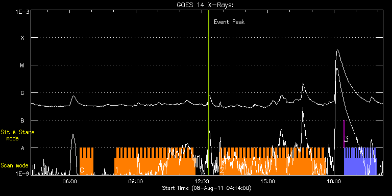 EIS Observation timeline overlay to GOES-Xray curve Code 1" 2" 40" 266" EIS Observations list for this event: STUDY ACRONYM ID DATE OBSERVED DESCRIPTION NOAA# TARGET 0 HH_Flare+AR_180x152 | 23745 | 2011/08/08 06:27:13 | Major flare Watch | 1263 | Flare TIMELINE ID DATE OBSERVED FITS FILE XCEN (+W/-E) YCEN (+N/-S) DUR ----------------------------------------------------------------------------------------------------------------- 23745 | 2011/08/08 06:27:13.000 | eis_l0_20110808_062713.fits.gz | 778.26 | 209.69 | 5m18s 23745 | 2011/08/08 06:32:33.000 | eis_l0_20110808_063233.fits.gz | 778.49 | 209.77 | 5m18s 23745 | 2011/08/08 06:37:53.000 | eis_l0_20110808_063753.fits.gz | 778.95 | 209.77 | 5m18s 23745 | 2011/08/08 06:43:14.000 | eis_l0_20110808_064314.fits.gz | 779.34 | 209.77 | 5m18s 23745 | 2011/08/08 06:48:35.000 | eis_l0_20110808_064835.fits.gz | 779.65 | 209.92 | 5m18s 23745 | 2011/08/08 06:53:56.000 | eis_l0_20110808_065356.fits.gz | 780.03 | 210.15 | 5m18s 23745 | 2011/08/08 06:59:17.000 | eis_l0_20110808_065917.fits.gz | 780.42 | 210.08 | 3m52s 1 HH_Flare+AR_180x152 | 23742 | 2011/08/08 08:02:13 | Major flare Watch | 1263 | Flare TIMELINE ID DATE OBSERVED FITS FILE XCEN (+W/-E) YCEN (+N/-S) DUR ----------------------------------------------------------------------------------------------------------------- 23742 | 2011/08/08 08:02:13.000 | eis_l0_20110808_080213.fits.gz | 801.12 | 191.38 | 5m18s 23742 | 2011/08/08 08:07:34.000 | eis_l0_20110808_080734.fits.gz | 801.43 | 191.38 | 5m17s 23742 | 2011/08/08 08:12:54.000 | eis_l0_20110808_081254.fits.gz | 801.82 | 191.62 | 5m17s 23742 | 2011/08/08 08:18:14.000 | eis_l0_20110808_081814.fits.gz | 802.28 | 191.46 | 5m18s 23742 | 2011/08/08 08:23:35.000 | eis_l0_20110808_082335.fits.gz | 802.59 | 191.69 | 5m17s 23742 | 2011/08/08 08:28:55.000 | eis_l0_20110808_082855.fits.gz | 802.90 | 191.85 | 5m18s 23742 | 2011/08/08 08:34:16.000 | eis_l0_20110808_083416.fits.gz | 803.28 | 192.00 | 5m18s 23742 | 2011/08/08 08:39:37.000 | eis_l0_20110808_083937.fits.gz | 803.75 | 191.85 | 5m18s 23742 | 2011/08/08 08:44:58.000 | eis_l0_20110808_084458.fits.gz | 804.06 | 192.08 | 5m18s 23742 | 2011/08/08 08:50:19.000 | eis_l0_20110808_085019.fits.gz | 804.44 | 192.08 | 5m17s 23742 | 2011/08/08 08:55:39.000 | eis_l0_20110808_085539.fits.gz | 804.83 | 192.08 | 5m18s 23742 | 2011/08/08 09:01:00.000 | eis_l0_20110808_090100.fits.gz | 805.22 | 192.31 | 5m18s 23742 | 2011/08/08 09:06:21.000 | eis_l0_20110808_090621.fits.gz | 805.60 | 192.23 | 5m17s 23742 | 2011/08/08 09:11:41.000 | eis_l0_20110808_091141.fits.gz | 805.91 | 192.54 | 5m18s 23742 | 2011/08/08 09:17:01.000 | eis_l0_20110808_091701.fits.gz | 806.30 | 192.54 | 5m18s 23742 | 2011/08/08 09:22:22.000 | eis_l0_20110808_092222.fits.gz | 806.61 | 192.39 | 5m17s 23742 | 2011/08/08 09:27:42.000 | eis_l0_20110808_092742.fits.gz | 806.99 | 192.54 | 5m18s 23742 | 2011/08/08 09:33:03.000 | eis_l0_20110808_093303.fits.gz | 807.30 | 192.77 | 5m18s 23742 | 2011/08/08 09:38:24.000 | eis_l0_20110808_093824.fits.gz | 807.77 | 192.85 | 5m18s 23742 | 2011/08/08 09:43:45.000 | eis_l0_20110808_094345.fits.gz | 808.15 | 192.77 | 5m18s 23742 | 2011/08/08 09:49:06.000 | eis_l0_20110808_094906.fits.gz | 808.46 | 192.93 | 5m17s 23742 | 2011/08/08 09:54:26.000 | eis_l0_20110808_095426.fits.gz | 808.92 | 192.93 | 5m18s 23742 | 2011/08/08 09:59:47.000 | eis_l0_20110808_095947.fits.gz | 809.16 | 192.93 | 5m17s 23742 | 2011/08/08 10:05:07.000 | eis_l0_20110808_100507.fits.gz | 809.46 | 193.08 | 5m18s 23742 | 2011/08/08 10:10:28.000 | eis_l0_20110808_101028.fits.gz | 810.01 | 193.08 | 5m18s 23742 | 2011/08/08 10:15:49.000 | eis_l0_20110808_101549.fits.gz | 810.31 | 193.31 | 5m18s 23742 | 2011/08/08 10:21:10.000 | eis_l0_20110808_102110.fits.gz | 810.78 | 193.31 | 5m17s 23742 | 2011/08/08 10:26:30.000 | eis_l0_20110808_102630.fits.gz | 811.01 | 193.39 | 5m17s 23742 | 2011/08/08 10:31:50.000 | eis_l0_20110808_103150.fits.gz | 811.40 | 193.55 | 5m18s 23742 | 2011/08/08 10:37:11.000 | eis_l0_20110808_103711.fits.gz | 811.86 | 193.47 | 5m18s 23742 | 2011/08/08 10:42:31.000 | eis_l0_20110808_104231.fits.gz | 812.09 | 193.62 | 5m19s 23742 | 2011/08/08 10:47:53.000 | eis_l0_20110808_104753.fits.gz | 812.40 | 193.70 | 5m18s 23742 | 2011/08/08 10:53:14.000 | eis_l0_20110808_105314.fits.gz | 812.86 | 193.85 | 5m18s 23742 | 2011/08/08 10:58:35.000 | eis_l0_20110808_105835.fits.gz | 813.17 | 193.78 | 5m18s 23742 | 2011/08/08 11:03:55.000 | eis_l0_20110808_110355.fits.gz | 813.48 | 193.93 | 5m19s 23742 | 2011/08/08 11:09:16.000 | eis_l0_20110808_110916.fits.gz | 813.87 | 194.16 | 5m19s 23742 | 2011/08/08 11:14:38.000 | eis_l0_20110808_111438.fits.gz | 814.25 | 194.16 | 5m17s 23742 | 2011/08/08 11:19:58.000 | eis_l0_20110808_111958.fits.gz | 814.64 | 194.16 | 5m18s 23742 | 2011/08/08 11:25:19.000 | eis_l0_20110808_112519.fits.gz | 814.95 | 194.24 | 5m18s 23742 | 2011/08/08 11:30:39.000 | eis_l0_20110808_113039.fits.gz | 815.34 | 194.24 | 5m19s 23742 | 2011/08/08 11:36:00.000 | eis_l0_20110808_113600.fits.gz | 815.80 | 194.24 | 5m18s 2 HH_Flare+AR_180x152 | 23735 | 2011/08/08 12:49:12 | Major flare Watch | 1263 | Flare TIMELINE ID DATE OBSERVED FITS FILE XCEN (+W/-E) YCEN (+N/-S) DUR ----------------------------------------------------------------------------------------------------------------- 23735 | 2011/08/08 12:49:12.000 | eis_l0_20110808_124912.fits.gz | 805.22 | 214.79 | 5m19s 23735 | 2011/08/08 12:54:34.000 | eis_l0_20110808_125434.fits.gz | 805.60 | 215.02 | 5m17s 23735 | 2011/08/08 12:59:54.000 | eis_l0_20110808_125954.fits.gz | 805.91 | 214.94 | 5m18s 23735 | 2011/08/08 13:05:15.000 | eis_l0_20110808_130515.fits.gz | 806.22 | 214.87 | 5m18s 23735 | 2011/08/08 13:10:36.000 | eis_l0_20110808_131036.fits.gz | 806.61 | 215.18 | 5m19s 23735 | 2011/08/08 13:15:57.000 | eis_l0_20110808_131557.fits.gz | 806.91 | 215.10 | 5m18s 23735 | 2011/08/08 13:21:18.000 | eis_l0_20110808_132118.fits.gz | 807.22 | 215.25 | 5m18s 23735 | 2011/08/08 13:26:38.