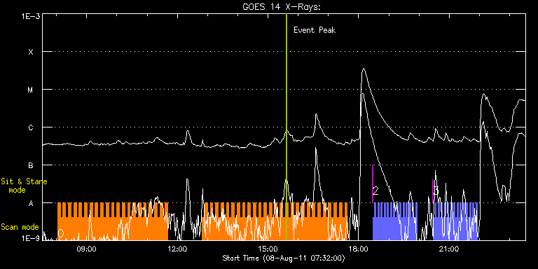 EIS Observation timeline overlay to GOES-Xray curve Code 1" 2" 40" 266" EIS Observations list for this event: STUDY ACRONYM ID DATE OBSERVED DESCRIPTION NOAA# TARGET 0 HH_Flare+AR_180x152 | 23742 | 2011/08/08 08:02:13 | Major flare Watch | 1263 | Flare TIMELINE ID DATE OBSERVED FITS FILE XCEN (+W/-E) YCEN (+N/-S) DUR ----------------------------------------------------------------------------------------------------------------- 23742 | 2011/08/08 08:02:13.000 | eis_l0_20110808_080213.fits.gz | 801.12 | 191.38 | 5m18s 23742 | 2011/08/08 08:07:34.000 | eis_l0_20110808_080734.fits.gz | 801.43 | 191.38 | 5m17s 23742 | 2011/08/08 08:12:54.000 | eis_l0_20110808_081254.fits.gz | 801.82 | 191.62 | 5m17s 23742 | 2011/08/08 08:18:14.000 | eis_l0_20110808_081814.fits.gz | 802.28 | 191.46 | 5m18s 23742 | 2011/08/08 08:23:35.000 | eis_l0_20110808_082335.fits.gz | 802.59 | 191.69 | 5m17s 23742 | 2011/08/08 08:28:55.000 | eis_l0_20110808_082855.fits.gz | 802.90 | 191.85 | 5m18s 23742 | 2011/08/08 08:34:16.000 | eis_l0_20110808_083416.fits.gz | 803.28 | 192.00 | 5m18s 23742 | 2011/08/08 08:39:37.000 | eis_l0_20110808_083937.fits.gz | 803.75 | 191.85 | 5m18s 23742 | 2011/08/08 08:44:58.000 | eis_l0_20110808_084458.fits.gz | 804.06 | 192.08 | 5m18s 23742 | 2011/08/08 08:50:19.000 | eis_l0_20110808_085019.fits.gz | 804.44 | 192.08 | 5m17s 23742 | 2011/08/08 08:55:39.000 | eis_l0_20110808_085539.fits.gz | 804.83 | 192.08 | 5m18s 23742 | 2011/08/08 09:01:00.000 | eis_l0_20110808_090100.fits.gz | 805.22 | 192.31 | 5m18s 23742 | 2011/08/08 09:06:21.000 | eis_l0_20110808_090621.fits.gz | 805.60 | 192.23 | 5m17s 23742 | 2011/08/08 09:11:41.000 | eis_l0_20110808_091141.fits.gz | 805.91 | 192.54 | 5m18s 23742 | 2011/08/08 09:17:01.000 | eis_l0_20110808_091701.fits.gz | 806.30 | 192.54 | 5m18s 23742 | 2011/08/08 09:22:22.000 | eis_l0_20110808_092222.fits.gz | 806.61 | 192.39 | 5m17s 23742 | 2011/08/08 09:27:42.000 | eis_l0_20110808_092742.fits.gz | 806.99 | 192.54 | 5m18s 23742 | 2011/08/08 09:33:03.000 | eis_l0_20110808_093303.fits.gz | 807.30 | 192.77 | 5m18s 23742 | 2011/08/08 09:38:24.000 | eis_l0_20110808_093824.fits.gz | 807.77 | 192.85 | 5m18s 23742 | 2011/08/08 09:43:45.000 | eis_l0_20110808_094345.fits.gz | 808.15 | 192.77 | 5m18s 23742 | 2011/08/08 09:49:06.000 | eis_l0_20110808_094906.fits.gz | 808.46 | 192.93 | 5m17s 23742 | 2011/08/08 09:54:26.000 | eis_l0_20110808_095426.fits.gz | 808.92 | 192.93 | 5m18s 23742 | 2011/08/08 09:59:47.000 | eis_l0_20110808_095947.fits.gz | 809.16 | 192.93 | 5m17s 23742 | 2011/08/08 10:05:07.000 | eis_l0_20110808_100507.fits.gz | 809.46 | 193.08 | 5m18s 23742 | 2011/08/08 10:10:28.000 | eis_l0_20110808_101028.fits.gz | 810.01 | 193.08 | 5m18s 23742 | 2011/08/08 10:15:49.000 | eis_l0_20110808_101549.fits.gz | 810.31 | 193.31 | 5m18s 23742 | 2011/08/08 10:21:10.000 | eis_l0_20110808_102110.fits.gz | 810.78 | 193.31 | 5m17s 23742 | 2011/08/08 10:26:30.000 | eis_l0_20110808_102630.fits.gz | 811.01 | 193.39 | 5m17s 23742 | 2011/08/08 10:31:50.000 | eis_l0_20110808_103150.fits.gz | 811.40 | 193.55 | 5m18s 23742 | 2011/08/08 10:37:11.000 | eis_l0_20110808_103711.fits.gz | 811.86 | 193.47 | 5m18s 23742 | 2011/08/08 10:42:31.000 | eis_l0_20110808_104231.fits.gz | 812.09 | 193.62 | 5m19s 23742 | 2011/08/08 10:47:53.000 | eis_l0_20110808_104753.fits.gz | 812.40 | 193.70 | 5m18s 23742 | 2011/08/08 10:53:14.000 | eis_l0_20110808_105314.fits.gz | 812.86 | 193.85 | 5m18s 23742 | 2011/08/08 10:58:35.000 | eis_l0_20110808_105835.fits.gz | 813.17 | 193.78 | 5m18s 23742 | 2011/08/08 11:03:55.000 | eis_l0_20110808_110355.fits.gz | 813.48 | 193.93 | 5m19s 23742 | 2011/08/08 11:09:16.000 | eis_l0_20110808_110916.fits.gz | 813.87 | 194.16 | 5m19s 23742 | 2011/08/08 11:14:38.000 | eis_l0_20110808_111438.fits.gz | 814.25 | 194.16 | 5m17s 23742 | 2011/08/08 11:19:58.000 | eis_l0_20110808_111958.fits.gz | 814.64 | 194.16 | 5m18s 23742 | 2011/08/08 11:25:19.000 | eis_l0_20110808_112519.fits.gz | 814.95 | 194.24 | 5m18s 23742 | 2011/08/08 11:30:39.000 | eis_l0_20110808_113039.fits.gz | 815.34 | 194.24 | 5m19s 23742 | 2011/08/08 11:36:00.000 | eis_l0_20110808_113600.fits.gz | 815.80 | 194.24 | 5m18s 1 HH_Flare+AR_180x152 | 23735 | 2011/08/08 12:49:12 | Major flare Watch | 1263 | Flare TIMELINE ID DATE OBSERVED FITS FILE XCEN (+W/-E) YCEN (+N/-S) DUR ----------------------------------------------------------------------------------------------------------------- 23735 | 2011/08/08 12:49:12.000 | eis_l0_20110808_124912.fits.gz | 805.22 | 214.79 | 5m19s 23735 | 2011/08/08 12:54:34.000 | eis_l0_20110808_125434.fits.gz | 805.60 | 215.02 | 5m17s 23735 | 2011/08/08 12:59:54.000 | eis_l0_20110808_125954.fits.gz | 805.91 | 214.94 | 5m18s 23735 | 2011/08/08 13:05:15.000 | eis_l0_20110808_130515.fits.gz | 806.22 | 214.87 | 5m18s 23735 | 2011/08/08 13:10:36.000 | eis_l0_20110808_131036.fits.gz | 806.61 | 215.18 | 5m19s 23735 | 2011/08/08 13:15:57.000 | eis_l0_20110808_131557.fits.gz | 806.91 | 215.10 | 5m18s 23735 | 2011/08/08 13:21:18.000 | eis_l0_20110808_132118.fits.gz | 807.22 | 215.25 | 5m18s 23735 | 2011/08/08 13:26:38.000 | eis_l0_20110808_132638.fits.gz | 807.69 | 215.25 | 5m18s 23735 | 2011/08/08 13:31:59.000 | eis_l0_20110808_133159.fits.gz | 808.15 | 215.25 | 5m19s 23735 | 2011/08/08 13:37:21.000 | eis_l0_20110808_133721.fits.gz | 808.38 | 215.33 | 5m18s 23735 | 2011/08/08 13:42:41.000 | eis_l0_20110808_134241.fits.gz | 808.69 | 215.48 | 5m18s 23735 | 2011/08/08 13:48:02.000 | eis_l0_20110808_134802.fits.gz | 809.08 | 215.48 | 5m17s 23735 | 2011/08/08 13:53:22.000 | eis_l0_20110808_135322.fits.gz | 809.39 | 215.64 | 5m17s 23735 | 2011/08/08 13:58:42.000 | eis_l0_20110808_135842.fits.gz | 809.77 | 215.72 | 5m17s 23735 | 2011/08/08 14:04:02.000 | eis_l0_20110808_140402.fits.gz | 810.08 | 215.79 | 5m17s 23735 | 2011/08/08 14:09:22.000 | eis_l0_20110808_140922.fits.gz | 810.47 | 215.95 | 5m17s 23735 | 2011/08/08 14:14:42.000 | eis_l0_20110808_141442.fits.gz | 810.70 | 216.02 | 5m17s 23735 | 2011/08/08 14: