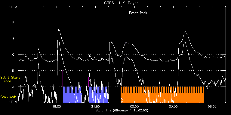 EIS Observation timeline overlay to GOES-Xray curve Code 1" 2" 40" 266" EIS Observations list for this event: STUDY ACRONYM ID DATE OBSERVED DESCRIPTION NOAA# TARGET 0 Alignment_modify_v2 | 23736 | 2011/08/08 18:27:26 | Hinode instrument alignment programme | | Quiet Sun TIMELINE ID DATE OBSERVED FITS FILE XCEN (+W/-E) YCEN (+N/-S) DUR ----------------------------------------------------------------------------------------------------------------- 23736 | 2011/08/08 18:27:26.000 | eis_l0_20110808_182726.fits.gz | -0.10 | 944.55 | 1m 23736 | 2011/08/08 18:28:52.000 | eis_l0_20110808_182852.fits.gz | -9.50 | 944.55 | 2m34s 23736 | 2011/08/08 18:31:59.000 | eis_l0_20110808_183159.fits.gz | -9.50 | 944.55 | 2m34s 23736 | 2011/08/08 18:35:07.000 | eis_l0_20110808_183507.fits.gz | -9.50 | 944.62 | 2m34s 23736 | 2011/08/08 18:38:14.000 | eis_l0_20110808_183814.fits.gz | -9.58 | 944.62 | 2m34s 23736 | 2011/08/08 18:41:22.000 | eis_l0_20110808_184122.fits.gz | -9.58 | 944.62 | 2m34s 23736 | 2011/08/08 18:44:29.000 | eis_l0_20110808_184429.fits.gz | -9.50 | 944.47 | 2m34s 23736 | 2011/08/08 18:47:37.000 | eis_l0_20110808_184737.fits.gz | -9.58 | 944.47 | 2m34s 23736 | 2011/08/08 18:50:44.000 | eis_l0_20110808_185044.fits.gz | -9.58 | 944.62 | 2m34s 23736 | 2011/08/08 18:53:52.000 | eis_l0_20110808_185352.fits.gz | -9.50 | 944.55 | 2m34s 23736 | 2011/08/08 18:57:00.000 | eis_l0_20110808_185700.fits.gz | -9.43 | 944.47 | 2m33s 23736 | 2011/08/08 19:00:07.000 | eis_l0_20110808_190007.fits.gz | -9.58 | 944.62 | 2m34s 23736 | 2011/08/08 19:03:15.000 | eis_l0_20110808_190315.fits.gz | -9.58 | 944.55 | 2m33s 23736 | 2011/08/08 19:06:22.000 | eis_l0_20110808_190622.fits.gz | -9.58 | 944.55 | 2m34s 23736 | 2011/08/08 19:09:30.000 | eis_l0_20110808_190930.fits.gz | -9.66 | 944.62 | 2m34s 23736 | 2011/08/08 19:12:37.000 | eis_l0_20110808_191237.fits.gz | -9.50 | 944.55 | 2m34s 23736 | 2011/08/08 19:15:45.000 | eis_l0_20110808_191545.fits.gz | -9.58 | 944.62 | 2m34s 23736 | 2011/08/08 19:18:52.000 | eis_l0_20110808_191852.fits.gz | -9.58 | 942.08 | 2m34s 23736 | 2011/08/08 19:22:00.000 | eis_l0_20110808_192200.fits.gz | -9.50 | 944.47 | 2m34s 23736 | 2011/08/08 19:25:07.000 | eis_l0_20110808_192507.fits.gz | -9.50 | 944.47 | 2m34s 23736 | 2011/08/08 19:28:15.000 | eis_l0_20110808_192815.fits.gz | -9.58 | 944.62 | 2m34s 23736 | 2011/08/08 19:31:22.000 | eis_l0_20110808_193122.fits.gz | -9.50 | 944.55 | 2m34s 23736 | 2011/08/08 19:34:30.000 | eis_l0_20110808_193430.fits.gz | -9.43 | 944.55 | 2m34s 23736 | 2011/08/08 19:37:37.000 | eis_l0_20110808_193737.fits.gz | -9.58 | 944.55 | 2m34s 23736 | 2011/08/08 19:40:45.000 | eis_l0_20110808_194045.fits.gz | -9.58 | 944.47 | 2m34s 23736 | 2011/08/08 19:43:52.000 | eis_l0_20110808_194352.fits.gz | -9.58 | 944.55 | 2m34s 23736 | 2011/08/08 19:47:00.000 | eis_l0_20110808_194700.fits.gz | -9.50 | 944.55 | 2m34s 23736 | 2011/08/08 19:50:08.000 | eis_l0_20110808_195008.fits.gz | -9.58 | 944.55 | 2m33s 23736 | 2011/08/08 19:53:15.000 | eis_l0_20110808_195315.fits.gz | -9.58 | 944.39 | 2m34s 1 Alignment_modify_v2 | 23737 | 2011/08/08 20:27:19 | Hinode instrument alignment programme | | Quiet Sun TIMELINE ID DATE OBSERVED FITS FILE XCEN (+W/-E) YCEN (+N/-S) DUR ----------------------------------------------------------------------------------------------------------------- 23737 | 2011/08/08 20:27:19.000 | eis_l0_20110808_202719.fits.gz | -9854.52 | -9963.20 | 1m 23737 | 2011/08/08 20:28:45.000 | eis_l0_20110808_202845.fits.gz | -9893.96 | -9963.20 | 2m33s 23737 | 2011/08/08 20:31:52.000 | eis_l0_20110808_203152.fits.gz | -9893.96 | -9963.20 | 2m34s 23737 | 2011/08/08 20:35:00.000 | eis_l0_20110808_203500.fits.gz | -9893.96 | -9963.20 | 2m34s 23737 | 2011/08/08 20:38:07.000 | eis_l0_20110808_203807.fits.gz | -9893.96 | -9963.20 | 2m34s 23737 | 2011/08/08 20:41:14.000 | eis_l0_20110808_204114.fits.gz | -9893.96 | -9963.20 | 2m35s 23737 | 2011/08/08 20:44:22.000 | eis_l0_20110808_204422.fits.gz | -9893.96 | -9963.20 | 2m34s 23737 | 2011/08/08 20:47:30.000 | eis_l0_20110808_204730.fits.gz | -9893.96 | -9963.20 | 2m34s 23737 | 2011/08/08 20:50:37.000 | eis_l0_20110808_205037.fits.gz | -9893.96 | -9963.20 | 2m34s 23737 | 2011/08/08 20:53:45.000 | eis_l0_20110808_205345.fits.gz | -9893.96 | -9963.20 | 2m34s 23737 | 2011/08/08 20:56:52.000 | eis_l0_20110808_205652.fits.gz | -9893.96 | -9963.20 | 2m34s 23737 | 2011/08/08 21:00:00.000 | eis_l0_20110808_210000.fits.gz | -9893.96 | -9963.20 | 2m34s 23737 | 2011/08/08 21:03:07.000 | eis_l0_20110808_210307.fits.gz | -9893.96 | -9963.20 | 2m34s 23737 | 2011/08/08 21:06:15.000 | eis_l0_20110808_210615.fits.gz | -9893.96 | -9963.20 | 2m34s 23737 | 2011/08/08 21:09:22.000 | eis_l0_20110808_210922.fits.gz | -9893.96 | -9963.20 | 2m34s 23737 | 2011/08/08 21:12:30.000 | eis_l0_20110808_211230.fits.gz | -9893.96 | -9963.20 | 2m34s 23737 | 2011/08/08 21:15:37.000 | eis_l0_20110808_211537.fits.gz | -9893.96 | -9963.20 | 2m34s 23737 | 2011/08/08 21:18:45.000 | eis_l0_20110808_211845.fits.gz | -9893.96 | -9963.20 | 2m34s 23737 | 2011/08/08 21:21:53.000 | eis_l0_20110808_212153.fits.gz | -9893.96 | -9963.20 | 2m33s 23737 | 2011/08/08 21:25:00.000 | eis_l0_20110808_212500.fits.gz | -9893.96 | -9963.20 | 2m34s 23737 | 2011/08/08 21:28:08.000 | eis_l0_20110808_212808.fits.gz | -9893.96 | -9963.20 | 2m34s 23737 | 2011/08/08 21:31:15.000 | eis_l0_20110808_213115.fits.gz | -9893.96 | -9963.20 | 2m34s 23737 | 2011/08/08 21:34:23.000 | eis_l0_20110808_213423.fits.gz | -9893.96 | -9963.20 | 2m34s 23737 | 2011/08/08 21:37:30.000 | eis_l0_20110808_213730.fits.gz | -9893.96 | -9963.20 | 2m34s 23737 | 2011/08/08 21:40:38.000 | eis_l0_20110808_214038.fits.gz | -9893.96 | -9963.20 | 2m34s 23737 | 2011/08/08 21:43:45.000 | eis_l0_20110808_214345.fits.gz | -9893.96 | -9963.20 | 2m34s 23737 | 2011/08/08 21:46:53.000 | eis_l0_20110808_214653.fits.gz | -9893.96 | -9963.20 | 2m34s 23737 | 2011/08/08 21:50:01.000 | eis_l0_20110808_215001.fits.gz | -9893.96 | -9963.20 | 2m33