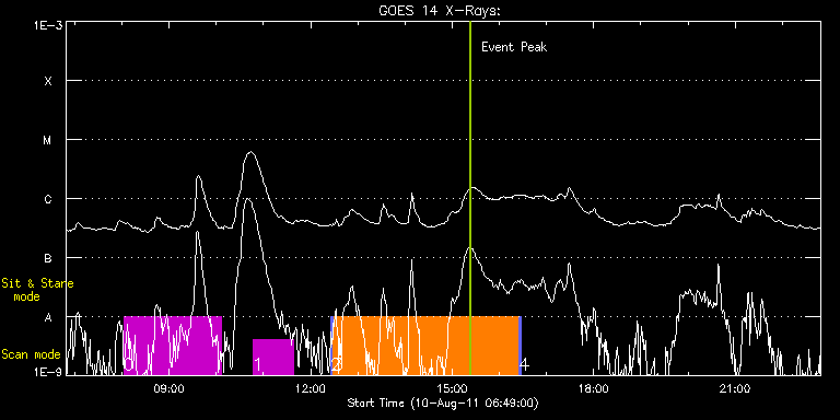 EIS Observation timeline overlay to GOES-Xray curve Code 1" 2" 40" 266" EIS Observations list for this event: STUDY ACRONYM ID DATE OBSERVED DESCRIPTION NOAA# TARGET 0 HPW021_VEL_240x512v1 | 23777 | 2011/08/10 08:02:19 | Evolution of magnetic topology in acti | | Active Region TIMELINE ID DATE OBSERVED FITS FILE XCEN (+W/-E) YCEN (+N/-S) DUR ----------------------------------------------------------------------------------------------------------------- 23777 | 2011/08/10 08:02:19.000 | eis_l0_20110810_080219.fits.gz | 148.97 | 183.58 | 2h3m48s 1 HH_FWHM_CAL_Norikura | 23781 | 2011/08/10 10:46:40 | Evolution of magnetic topology in acti | | Active Region TIMELINE ID DATE OBSERVED FITS FILE XCEN (+W/-E) YCEN (+N/-S) DUR ----------------------------------------------------------------------------------------------------------------- 23781 | 2011/08/10 10:46:40.000 | eis_l0_20110810_104640.fits.gz | 171.73 | 183.89 | 51m53s 2 PRY_slot_contextLITE | 23782 | 2011/08/10 12:25:03 | Search for slow mode oscillations in c | 1263 | Active Region TIMELINE ID DATE OBSERVED FITS FILE XCEN (+W/-E) YCEN (+N/-S) DUR ----------------------------------------------------------------------------------------------------------------- 23782 | 2011/08/10 12:25:03.000 | eis_l0_20110810_122503.fits.gz | 886.71 | 237.89 | 2m56s 3 Hot_loop_osci_2_v3 | 23783 | 2011/08/10 12:28:25 | Search for slow mode oscillations in c | 1263 | Active Region TIMELINE ID DATE OBSERVED FITS FILE XCEN (+W/-E) YCEN (+N/-S) DUR ----------------------------------------------------------------------------------------------------------------- 23783 | 2011/08/10 12:28:25.000 | eis_l0_20110810_122825.fits.gz | 892.79 | 284.89 | 1m8s 23783 | 2011/08/10 12:29:36.000 | eis_l0_20110810_122936.fits.gz | 892.87 | 284.96 | 1m9s 23783 | 2011/08/10 12:30:47.000 | eis_l0_20110810_123047.fits.gz | 892.95 | 284.81 | 1m9s 23783 | 2011/08/10 12:31:59.000 | eis_l0_20110810_123159.fits.gz | 892.95 | 284.89 | 1m8s 23783 | 2011/08/10 12:33:10.000 | eis_l0_20110810_123310.fits.gz | 892.95 | 284.81 | 1m9s 23783 | 2011/08/10 12:34:22.000 | eis_l0_20110810_123422.fits.gz | 892.95 | 284.96 | 1m8s 23783 | 2011/08/10 12:35:33.000 | eis_l0_20110810_123533.fits.gz | 892.87 | 284.81 | 1m8s 23783 | 2011/08/10 12:36:44.000 | eis_l0_20110810_123644.fits.gz | 892.87 | 284.89 | 1m9s 23783 | 2011/08/10 12:37:56.000 | eis_l0_20110810_123756.fits.gz | 892.87 | 284.73 | 1m8s 23783 | 2011/08/10 12:39:07.000 | eis_l0_20110810_123907.fits.gz | 892.87 | 284.81 | 1m8s 23783 | 2011/08/10 12:40:18.000 | eis_l0_20110810_124018.fits.gz | 892.87 | 284.73 | 1m9s 23783 | 2011/08/10 12:41:30.000 | eis_l0_20110810_124130.fits.gz | 892.87 | 284.96 | 1m8s 23783 | 2011/08/10 12:42:41.000 | eis_l0_20110810_124241.fits.gz | 892.79 | 284.81 | 1m9s 23783 | 2011/08/10 12:43:53.000 | eis_l0_20110810_124353.fits.gz | 892.79 | 284.89 | 1m8s 23783 | 2011/08/10 12:45:04.000 | eis_l0_20110810_124504.fits.gz | 892.79 | 284.96 | 1m9s 23783 | 2011/08/10 12:46:15.000 | eis_l0_20110810_124615.fits.gz | 892.87 | 284.81 | 1m9s 23783 | 2011/08/10 12:47:27.000 | eis_l0_20110810_124727.fits.gz | 892.87 | 284.81 | 1m8s 23783 | 2011/08/10 12:48:38.000 | eis_l0_20110810_124838.fits.gz | 892.87 | 284.89 | 1m8s 23783 | 2011/08/10 12:49:49.000 | eis_l0_20110810_124949.fits.gz | 892.79 | 284.81 | 1m9s 23783 | 2011/08/10 12:51:01.000 | eis_l0_20110810_125101.fits.gz | 892.79 | 284.89 | 1m8s 23783 | 2011/08/10 12:52:12.000 | eis_l0_20110810_125212.fits.gz | 892.87 | 284.73 | 1m8s 23783 | 2011/08/10 12:53:23.000 | eis_l0_20110810_125323.fits.gz | 892.87 | 284.81 | 1m8s 23783 | 2011/08/10 12:54:34.000 | eis_l0_20110810_125434.fits.gz | 892.79 | 284.89 | 1m9s 23783 | 2011/08/10 12:55:46.000 | eis_l0_20110810_125546.fits.gz | 892.79 | 284.89 | 1m8s 23783 | 2011/08/10 12:56:57.000 | eis_l0_20110810_125657.fits.gz | 892.79 | 284.81 | 1m9s 23783 | 2011/08/10 12:58:08.000 | eis_l0_20110810_125808.fits.gz | 892.79 | 284.73 | 1m9s 23783 | 2011/08/10 12:59:20.000 | eis_l0_20110810_125920.fits.gz | 892.79 | 284.89 | 1m8s 23783 | 2011/08/10 13:00:31.000 | eis_l0_20110810_130031.fits.gz | 892.87 | 284.89 | 1m9s 23783 | 2011/08/10 13:01:42.000 | eis_l0_20110810_130142.fits.gz | 892.79 | 284.96 | 1m9s 23783 | 2011/08/10 13:02:54.000 | eis_l0_20110810_130254.fits.gz | 892.79 | 284.89 | 1m8s 23783 | 2011/08/10 13:04:05.000 | eis_l0_20110810_130405.fits.gz | 892.79 | 284.89 | 1m9s 23783 | 2011/08/10 13:05:17.000 | eis_l0_20110810_130517.fits.gz | 892.87 | 284.89 | 1m8s 23783 | 2011/08/10 13:06:28.000 | eis_l0_20110810_130628.fits.gz | 892.79 | 284.81 | 1m9s 23783 | 2011/08/10 13:07:39.000 | eis_l0_20110810_130739.fits.gz | 892.79 | 284.89 | 1m9s 23783 | 2011/08/10 13:08:51.000 | eis_l0_20110810_130851.fits.gz | 892.87 | 284.73 | 1m8s 23783 | 2011/08/10 13:10:02.000 | eis_l0_20110810_131002.fits.gz | 892.95 | 284.89 | 1m9s 23783 | 2011/08/10 13:11:13.000 | eis_l0_20110810_131113.fits.gz | 892.79 | 284.89 | 1m9s 23783 | 2011/08/10 13:12:25.000 | eis_l0_20110810_131225.fits.gz | 892.79 | 284.96 | 1m8s 23783 | 2011/08/10 13:13:36.000 | eis_l0_20110810_131336.fits.gz | 892.79 | 284.89 | 1m8s 23783 | 2011/08/10 13:14:47.000 | eis_l0_20110810_131447.fits.gz | 892.87 | 284.89 | 1m9s 23783 | 2011/08/10 13:15:58.000 | eis_l0_20110810_131558.fits.gz | 892.87 | 284.81 | 1m9s 23783 | 2011/08/10 13:17:10.000 | eis_l0_20110810_131710.fits.gz | 892.79 | 284.89 | 1m8s 23783 | 2011/08/10 13:18:21.000 | eis_l0_20110810_131821.fits.gz | 892.79 | 284.96 | 1m9s 23783 | 2011/08/10 13:19:33.000 | eis_l0_20110810_131933.fits.gz | 892.95 | 284.81 | 1m8s 23783 | 2011/08/10 13:20:44.000 | eis_l0_20110810_132044.fits.gz | 892.79 | 284.96 | 1m8s 23783 | 2011/08/10 13:21:55.000 | eis_l0_20110810_132155.fits.gz | 892.95 | 284.89 | 1m8s 23783 | 2011/08/10 13:23:06.000 | eis_l0_20110810_132306.fits.gz | 892.79 | 284.89 | 1m9s 23783 | 2011/08/10 13:24:18.000 | eis_l0_20110810_132418.fits.gz | 892.95 | 284.81 | 1m8s 23783 | 2011/08/10 13:25:29.000 | eis_l0_20110810_132529.fits.