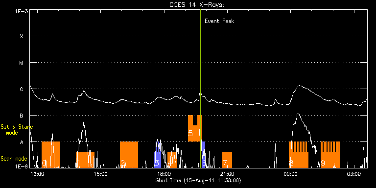 EIS Observation timeline overlay to GOES-Xray curve Code 1" 2" 40" 266" EIS Observations list for this event: STUDY ACRONYM ID DATE OBSERVED DESCRIPTION NOAA# TARGET 0 YKK_ARabund01 | 23820 | 2011/08/15 12:13:21 | Interchange reconnection AR-CH study ( | | Active Region TIMELINE ID DATE OBSERVED FITS FILE XCEN (+W/-E) YCEN (+N/-S) DUR ----------------------------------------------------------------------------------------------------------------- 23820 | 2011/08/15 12:13:21.000 | eis_l0_20110815_121321.fits.gz | 414.91 | -448.38 | 50m31s 1 YKK_ARabund01 | 23821 | 2011/08/15 13:50:48 | Interchange reconnection AR-CH study ( | | Active Region TIMELINE ID DATE OBSERVED FITS FILE XCEN (+W/-E) YCEN (+N/-S) DUR ----------------------------------------------------------------------------------------------------------------- 23821 | 2011/08/15 13:50:48.000 | eis_l0_20110815_135048.fits.gz | 426.81 | -447.76 | 50m33s 2 YKK_ARabund01 | 23825 | 2011/08/15 15:55:30 | Interchange reconnection AR-CH study ( | | Active Region TIMELINE ID DATE OBSERVED FITS FILE XCEN (+W/-E) YCEN (+N/-S) DUR ----------------------------------------------------------------------------------------------------------------- 23825 | 2011/08/15 15:55:30.000 | eis_l0_20110815_155530.fits.gz | 441.80 | -446.84 | 50m33s 3 PRY_slot_context_v3 | 23828 | 2011/08/15 17:33:18 | Slot context raster for interchange re | | Active Region TIMELINE ID DATE OBSERVED FITS FILE XCEN (+W/-E) YCEN (+N/-S) DUR ----------------------------------------------------------------------------------------------------------------- 23828 | 2011/08/15 17:33:18.000 | eis_l0_20110815_173318.fits.gz | 438.97 | -446.06 | 2m56s 23828 | 2011/08/15 17:36:18.000 | eis_l0_20110815_173618.fits.gz | 439.36 | -445.91 | 2m57s 23828 | 2011/08/15 17:39:19.000 | eis_l0_20110815_173919.fits.gz | 439.74 | -446.06 | 2m56s 23828 | 2011/08/15 17:42:19.000 | eis_l0_20110815_174219.fits.gz | 439.98 | -445.99 | 2m57s 23828 | 2011/08/15 17:45:20.000 | eis_l0_20110815_174520.fits.gz | 440.36 | -445.99 | 2m56s 23828 | 2011/08/15 17:48:20.000 | eis_l0_20110815_174820.fits.gz | 440.67 | -446.06 | 2m57s 4 PRY_footpoints_lite | 23808 | 2011/08/15 18:10:43 | Context scan for Chromospheric observa | | Active Region TIMELINE ID DATE OBSERVED FITS FILE XCEN (+W/-E) YCEN (+N/-S) DUR ----------------------------------------------------------------------------------------------------------------- 23808 | 2011/08/15 18:10:43.000 | eis_l0_20110815_181043.fits.gz | -104.33 | 137.93 | 26m23s 5 madj_qs_sns_15m | 23807 | 2011/08/15 19:08:42 | Observations of Chromosphere with BBSO | | Quiet Sun TIMELINE ID DATE OBSERVED FITS FILE XCEN (+W/-E) YCEN (+N/-S) DUR ----------------------------------------------------------------------------------------------------------------- 23807 | 2011/08/15 19:08:42.000 | eis_l0_20110815_190842.fits.gz | -95.68 | 137.70 | 13m9s 23807 | 2011/08/15 19:21:54.000 | eis_l0_20110815_192154.fits.gz | -93.75 | 137.54 | 13m8s 23807 | 2011/08/15 19:35:05.000 | eis_l0_20110815_193505.fits.gz | -91.81 | 137.54 | 13m7s 6 IUU_SLOT_136x400_Q65 | 23810 | 2011/08/15 19:48:23 | Context slot scan of Chromospheric obs | | Active Region TIMELINE ID DATE OBSERVED FITS FILE XCEN (+W/-E) YCEN (+N/-S) DUR ----------------------------------------------------------------------------------------------------------------- 23810 | 2011/08/15 19:48:23.000 | eis_l0_20110815_194823.fits.gz | -104.79 | 137.54 | 1m20s 23810 | 2011/08/15 19:49:52.000 | eis_l0_20110815_194952.fits.gz | -104.56 | 137.31 | 1m20s 23810 | 2011/08/15 19:51:20.000 | eis_l0_20110815_195120.fits.gz | -104.41 | 137.46 | 1m20s 23810 | 2011/08/15 19:52:49.000 | eis_l0_20110815_195249.fits.gz | -104.18 | 137.54 | 1m20s 23810 | 2011/08/15 19:54:17.000 | eis_l0_20110815_195417.fits.gz | -103.94 | 137.46 | 1m21s 7 PRY_footpoints_lite | 23809 | 2011/08/15 20:46:43 | Context scan for Chromospheric observa | | Active Region TIMELINE ID DATE OBSERVED FITS FILE XCEN (+W/-E) YCEN (+N/-S) DUR ----------------------------------------------------------------------------------------------------------------- 23809 | 2011/08/15 20:46:43.000 | eis_l0_20110815_204643.fits.gz | -81.23 | 137.31 | 26m23s 8 CAM_ARTB_RHESSI_b_2 | 23806 | 2011/08/15 23:55:05 | Coordinated AR Observations with Hida | | Active Region TIMELINE ID DATE OBSERVED FITS FILE XCEN (+W/-E) YCEN (+N/-S) DUR ----------------------------------------------------------------------------------------------------------------- 23806 | 2011/08/15 23:55:05.000 | eis_l0_20110815_235505.fits.gz | -53.65 | 137.00 | 3m52s 23806 | 2011/08/15 23:59:00.000 | eis_l0_20110815_235900.fits.gz | -53.11 | 137.00 | 3m52s 23806 | 2011/08/16 00:02:55.000 | eis_l0_20110816_000255.fits.gz | -52.57 | 137.08 | 3m52s 23806 | 2011/08/16 00:06:50.000 | eis_l0_20110816_000650.fits.gz | -52.03 | 137.15 | 3m51s 23806 | 2011/08/16 00:10:44.000 | eis_l0_20110816_001044.fits.gz | -51.34 | 137.00 | 3m52s 23806 | 2011/08/16 00:14:38.000 | eis_l0_20110816_001438.fits.gz | -50.79 | 136.85 | 3m52s 23806 | 2011/08/16 00:18:33.000 | eis_l0_20110816_001833.fits.gz | -50.25 | 136.92 | 3m52s 23806 | 2011/08/16 00:22:27.000 | eis_l0_20110816_002227.fits.gz | -49.71 | 136.92 | 3m52s 23806 | 2011/08/16 00:26:22.000 | eis_l0_20110816_002622.fits.gz | -49.10 | 137.00 | 3m52s 23806 | 2011/08/16 00:30:17.000 | eis_l0_20110816_003017.fits.gz | -48.55 | 136.92 | 3m52s 23806 | 2011/08/16 00:34:12.000 | eis_l0_20110816_003412.fits.gz | -47.94 | 136.92 | 3m51s 23806 | 2011/08/16 00:38:06.000 | eis_l0_20110816_003806.fits.gz | -47.32 | 137.08 | 3m40s 23806 | 2011/08/16 00:42:00.000 | eis_l0_20110816_004200.fits.gz | -46.78 | 136.92 | 3m53s 23806 | 2011/08/16 00:45:55.000 | eis_l0_20110816_004555.fits.gz | -46.24 | 137.00 | 3m52s 9 CAM_ARTB_RHESSI_b_2 | 23832 | 2011/08/16 01:25:42 | Coordinated observations with Hida (co | | Active Region TIMELINE ID DATE OBSERVED FITS FILE XCEN (+W/-E) YCEN (+N/-S) DUR -----------------------------------------