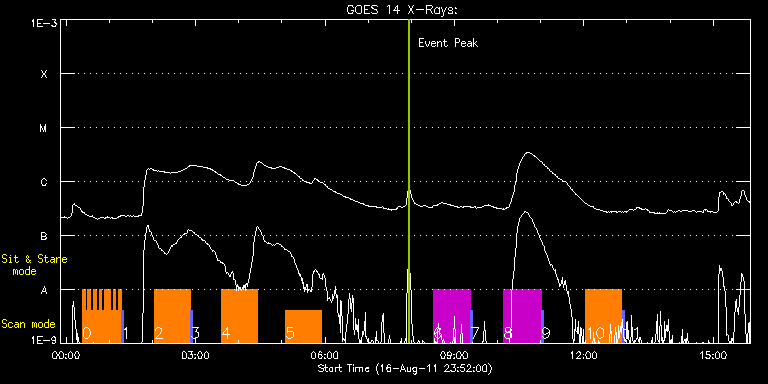 EIS Observation timeline overlay to GOES-Xray curve Code 1" 2" 40" 266" EIS Observations list for this event: STUDY ACRONYM ID DATE OBSERVED DESCRIPTION NOAA# TARGET 0 CAM_ARTB_RHESSI_b_2 | 23848 | 2011/08/17 00:22:13 | Coordinated AR Observations with Hida | | Active Region TIMELINE ID DATE OBSERVED FITS FILE XCEN (+W/-E) YCEN (+N/-S) DUR ----------------------------------------------------------------------------------------------------------------- 23848 | 2011/08/17 00:22:13.000 | eis_l0_20110817_002213.fits.gz | 131.97 | 247.31 | 3m52s 23848 | 2011/08/17 00:26:08.000 | eis_l0_20110817_002608.fits.gz | 132.67 | 247.23 | 3m52s 23848 | 2011/08/17 00:30:02.000 | eis_l0_20110817_003002.fits.gz | 133.13 | 247.23 | 3m52s 23848 | 2011/08/17 00:33:57.000 | eis_l0_20110817_003357.fits.gz | 133.67 | 247.23 | 3m52s 23848 | 2011/08/17 00:37:51.000 | eis_l0_20110817_003751.fits.gz | 134.29 | 247.31 | 3m52s 23848 | 2011/08/17 00:41:46.000 | eis_l0_20110817_004146.fits.gz | 134.75 | 247.16 | 3m52s 23848 | 2011/08/17 00:45:41.000 | eis_l0_20110817_004541.fits.gz | 135.29 | 247.23 | 3m51s 23848 | 2011/08/17 00:49:35.000 | eis_l0_20110817_004935.fits.gz | 135.84 | 247.16 | 3m52s 23848 | 2011/08/17 00:53:29.000 | eis_l0_20110817_005329.fits.gz | 136.30 | 247.23 | 3m41s 23848 | 2011/08/17 00:57:24.000 | eis_l0_20110817_005724.fits.gz | 136.92 | 247.23 | 33s 23848 | 2011/08/17 00:58:11.000 | eis_l0_20110817_005811.fits.gz | 137.07 | 247.16 | 3m5s 23848 | 2011/08/17 01:01:19.000 | eis_l0_20110817_010119.fits.gz | 137.54 | 247.16 | 3m52s 23848 | 2011/08/17 01:05:14.000 | eis_l0_20110817_010514.fits.gz | 137.92 | 247.31 | 3m52s 23848 | 2011/08/17 01:09:09.000 | eis_l0_20110817_010909.fits.gz | 138.54 | 247.31 | 3m51s 23848 | 2011/08/17 01:13:03.000 | eis_l0_20110817_011303.fits.gz | 139.16 | 247.31 | 3m52s 1 PRY_slot_context_v3 | 23849 | 2011/08/17 01:17:06 | Context for HOP 128 | | Active Region TIMELINE ID DATE OBSERVED FITS FILE XCEN (+W/-E) YCEN (+N/-S) DUR ----------------------------------------------------------------------------------------------------------------- 23849 | 2011/08/17 01:17:06.000 | eis_l0_20110817_011706.fits.gz | 124.88 | 247.08 | 2m56s 2 YKK_ARabund01 | 23843 | 2011/08/17 02:02:33 | Interchange reconnection AR-CH study ( | | Active Region TIMELINE ID DATE OBSERVED FITS FILE XCEN (+W/-E) YCEN (+N/-S) DUR ----------------------------------------------------------------------------------------------------------------- 23843 | 2011/08/17 02:02:33.000 | eis_l0_20110817_020233.fits.gz | 671.86 | -352.44 | 50m33s 3 PRY_slot_context_v3 | 23844 | 2011/08/17 02:53:17 | Interchange reconnection AR-CH study ( | | Active Region TIMELINE ID DATE OBSERVED FITS FILE XCEN (+W/-E) YCEN (+N/-S) DUR ----------------------------------------------------------------------------------------------------------------- 23844 | 2011/08/17 02:53:17.000 | eis_l0_20110817_025317.fits.gz | 649.78 | -425.83 | 2m57s 4 YKK_ARabund01 | 23850 | 2011/08/17 03:35:33 | Interchange reconnection AR-CH study ( | | Active Region TIMELINE ID DATE OBSERVED FITS FILE XCEN (+W/-E) YCEN (+N/-S) DUR ----------------------------------------------------------------------------------------------------------------- 23850 | 2011/08/17 03:35:33.000 | eis_l0_20110817_033533.fits.gz | 680.13 | -351.13 | 50m33s 5 YKK_ARabund01 | 23851 | 2011/08/17 05:05:13 | Interchange reconnection AR-CH study ( | | Active Region TIMELINE ID DATE OBSERVED FITS FILE XCEN (+W/-E) YCEN (+N/-S) DUR ----------------------------------------------------------------------------------------------------------------- 23851 | 2011/08/17 05:05:13.000 | eis_l0_20110817_050513.fits.gz | 688.16 | -350.20 | 50m33s 6 HH_FWHM_CAL_Norikura | 23852 | 2011/08/17 08:30:27 | TOO HOP 195 - Quiet Sun and Facular Re | | Active Region TIMELINE ID DATE OBSERVED FITS FILE XCEN (+W/-E) YCEN (+N/-S) DUR ----------------------------------------------------------------------------------------------------------------- 23852 | 2011/08/17 08:30:27.000 | eis_l0_20110817_083027.fits.gz | 198.76 | 248.39 | 51m53s 7 PRY_slot_contextLITE | 23853 | 2011/08/17 09:22:45 | TOO HOP 195 - Quiet Sun and Facular Re | | Active Region TIMELINE ID DATE OBSERVED FITS FILE XCEN (+W/-E) YCEN (+N/-S) DUR ----------------------------------------------------------------------------------------------------------------- 23853 | 2011/08/17 09:22:45.000 | eis_l0_20110817_092245.fits.gz | 191.32 | 248.70 | 2m57s 8 HH_FWHM_CAL_Norikura | 23854 | 2011/08/17 10:08:50 | TOO HOP 195 - Quiet Sun and Facular Re | | Active Region TIMELINE ID DATE OBSERVED FITS FILE XCEN (+W/-E) YCEN (+N/-S) DUR ----------------------------------------------------------------------------------------------------------------- 23854 | 2011/08/17 10:08:50.000 | eis_l0_20110817_100850.fits.gz | 212.05 | 248.85 | 51m53s 9 PRY_slot_contextLITE | 23855 | 2011/08/17 11:01:08 | TOO HOP 195 - Quiet Sun and Facular Re | | Active Region TIMELINE ID DATE OBSERVED FITS FILE XCEN (+W/-E) YCEN (+N/-S) DUR ----------------------------------------------------------------------------------------------------------------- 23855 | 2011/08/17 11:01:08.000 | eis_l0_20110817_110108.fits.gz | 204.60 | 248.93 | 2m56s 10 YKK_ARabund01 | 23867 | 2011/08/17 12:02:33 | Interchange reconnection AR-CH study ( | | Active Region TIMELINE ID DATE OBSERVED FITS FILE XCEN (+W/-E) YCEN (+N/-S) DUR ----------------------------------------------------------------------------------------------------------------- 23867 | 2011/08/17 12:02:33.000 | eis_l0_20110817_120233.fits.gz | 723.54 | -344.80 | 50m33s 11 PRY_slot_context_v3 | 23868 | 2011/08/17 12:53:17 | Interchange reconnection AR-CH study ( | | Active Region TIMELINE ID DATE OBSERVED FITS FILE XCEN (+W/-E) YCEN (+N/-S) DUR ----------------------------------------------------------------------------------------------------------------- 23868 | 2011/08/17 12:53:17.000 | eis_l0_20110817_125317.fits.gz | 700.84 | -418.18 | 2m57s : Che