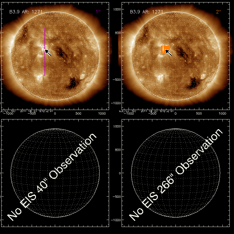 EIS Observation timeline overlay to GOES-Xray curve Code 1" 2" 40" 266" EIS Observations list for this event: STUDY ACRONYM ID DATE OBSERVED DESCRIPTION NOAA# TARGET 0 HH_Flare_180x152f | 23978 | 2011/08/20 11:08:35 | AR117271 flare obs | | Flare TIMELINE ID DATE OBSERVED FITS FILE XCEN (+W/-E) YCEN (+N/-S) DUR ----------------------------------------------------------------------------------------------------------------- 23978 | 2011/08/20 11:08:35.000 | eis_l0_20110820_110835.fits.gz | -278.26 | 137.23 | 2m48s 23978 | 2011/08/20 11:11:26.000 | eis_l0_20110820_111126.fits.gz | -277.87 | 137.15 | 2m48s 23978 | 2011/08/20 11:14:17.000 | eis_l0_20110820_111417.fits.gz | -277.56 | 137.23 | 2m48s 23978 | 2011/08/20 11:17:08.000 | eis_l0_20110820_111708.fits.gz | -277.10 | 137.23 | 2m48s 23978 | 2011/08/20 11:19:59.000 | eis_l0_20110820_111959.fits.gz | -276.64 | 137.23 | 2m48s 23978 | 2011/08/20 11:22:50.000 | eis_l0_20110820_112250.fits.gz | -276.25 | 137.23 | 2m48s 23978 | 2011/08/20 11:25:41.000 | eis_l0_20110820_112541.fits.gz | -275.86 | 137.00 | 2m47s 23978 | 2011/08/20 11:28:31.000 | eis_l0_20110820_112831.fits.gz | -275.40 | 137.15 | 2m48s 23978 | 2011/08/20 11:31:22.000 | eis_l0_20110820_113122.fits.gz | -275.09 | 137.15 | 2m48s 1 HH_Flare_180x152f | 23954 | 2011/08/20 11:59:47 | AR11271 flare obs | | Flare TIMELINE ID DATE OBSERVED FITS FILE XCEN (+W/-E) YCEN (+N/-S) DUR ----------------------------------------------------------------------------------------------------------------- 23954 | 2011/08/20 11:59:47.000 | eis_l0_20110820_115947.fits.gz | -271.15 | 136.92 | 2m47s 23954 | 2011/08/20 12:02:37.000 | eis_l0_20110820_120237.fits.gz | -270.69 | 137.00 | 2m47s 23954 | 2011/08/20 12:05:27.000 | eis_l0_20110820_120527.fits.gz | -270.30 | 137.08 | 2m48s 23954 | 2011/08/20 12:08:18.000 | eis_l0_20110820_120818.fits.gz | -269.84 | 136.85 | 2m48s 23954 | 2011/08/20 12:11:09.000 | eis_l0_20110820_121109.fits.gz | -269.45 | 137.00 | 2m48s 23954 | 2011/08/20 12:13:59.000 | eis_l0_20110820_121359.fits.gz | -269.07 | 136.92 | 2m49s 23954 | 2011/08/20 12:16:50.000 | eis_l0_20110820_121650.fits.gz | -268.68 | 136.92 | 2m49s 23954 | 2011/08/20 12:19:42.000 | eis_l0_20110820_121942.fits.gz | -268.29 | 136.77 | 2m47s 23954 | 2011/08/20 12:22:32.000 | eis_l0_20110820_122232.fits.gz | -267.91 | 136.85 | 2m48s 23954 | 2011/08/20 12:25:22.000 | eis_l0_20110820_122522.fits.gz | -267.37 | 136.69 | 2m49s 23954 | 2011/08/20 12:28:13.000 | eis_l0_20110820_122813.fits.gz | -267.14 | 136.85 | 2m48s 23954 | 2011/08/20 12:31:04.000 | eis_l0_20110820_123104.fits.gz | -266.67 | 136.69 | 2m48s 23954 | 2011/08/20 12:33:54.000 | eis_l0_20110820_123354.fits.gz | -266.29 | 136.69 | 2m49s 23954 | 2011/08/20 12:36:46.000 | eis_l0_20110820_123646.fits.gz | -265.98 | 136.92 | 2m47s 23954 | 2011/08/20 12:39:36.000 | eis_l0_20110820_123936.fits.gz | -265.44 | 136.85 | 2m48s 23954 | 2011/08/20 12:42:27.000 | eis_l0_20110820_124227.fits.gz | -265.05 | 136.77 | 2m48s 23954 | 2011/08/20 12:45:18.000 | eis_l0_20110820_124518.fits.gz | -264.66 | 136.77 | 2m48s 23954 | 2011/08/20 12:48:08.000 | eis_l0_20110820_124808.fits.gz | -264.28 | 136.69 | 2m49s 23954 | 2011/08/20 12:50:59.000 | eis_l0_20110820_125059.fits.gz | -263.89 | 136.62 | 2m49s 23954 | 2011/08/20 12:53:50.000 | eis_l0_20110820_125350.fits.gz | -263.43 | 136.62 | 2m48s 23954 | 2011/08/20 12:56:41.000 | eis_l0_20110820_125641.fits.gz | -263.04 | 136.69 | 2m48s 2 HH_Flare_180x152f | 23955 | 2011/08/20 13:38:51 | AR11271 flare obs | | Flare TIMELINE ID DATE OBSERVED FITS FILE XCEN (+W/-E) YCEN (+N/-S) DUR ----------------------------------------------------------------------------------------------------------------- 23955 | 2011/08/20 13:38:51.000 | eis_l0_20110820_133851.fits.gz | -257.09 | 136.46 | 2m48s 23955 | 2011/08/20 13:41:42.000 | eis_l0_20110820_134142.fits.gz | -256.71 | 136.54 | 2m49s 23955 | 2011/08/20 13:44:33.000 | eis_l0_20110820_134433.fits.gz | -256.24 | 136.31 | 2m49s 23955 | 2011/08/20 13:47:24.000 | eis_l0_20110820_134724.fits.gz | -255.93 | 136.38 | 2m49s 23955 | 2011/08/20 13:50:15.000 | eis_l0_20110820_135015.fits.gz | -255.47 | 136.31 | 2m48s 23955 | 2011/08/20 13:53:06.000 | eis_l0_20110820_135306.fits.gz | -255.16 | 136.31 | 2m48s 23955 | 2011/08/20 13:55:57.000 | eis_l0_20110820_135557.fits.gz | -254.70 | 136.31 | 2m13s 23955 | 2011/08/20 13:59:15.000 | eis_l0_20110820_135915.fits.gz | -254.24 | 136.31 | 2m20s 23955 | 2011/08/20 14:01:38.000 | eis_l0_20110820_140138.fits.gz | -253.93 | 136.38 | 2m48s 23955 | 2011/08/20 14:04:29.000 | eis_l0_20110820_140429.fits.gz | -253.46 | 136.15 | 2m48s 23955 | 2011/08/20 14:07:19.000 | eis_l0_20110820_140719.fits.gz | -253.15 | 136.23 | 2m48s 23955 | 2011/08/20 14:10:10.000 | eis_l0_20110820_141010.fits.gz | -252.77 | 136.23 | 2m48s 23955 | 2011/08/20 14:13:01.000 | eis_l0_20110820_141301.fits.gz | -252.23 | 136.31 | 2m48s 23955 | 2011/08/20 14:15:52.000 | eis_l0_20110820_141552.fits.gz | -251.84 | 136.23 | 2m48s 23955 | 2011/08/20 14:18:43.000 | eis_l0_20110820_141843.fits.gz | -251.45 | 136.23 | 2m48s 23955 | 2011/08/20 14:21:33.000 | eis_l0_20110820_142133.fits.gz | -251.07 | 136.07 | 2m48s 23955 | 2011/08/20 14:24:24.000 | eis_l0_20110820_142424.fits.gz | -250.68 | 136.07 | 2m48s 23955 | 2011/08/20 14:27:15.000 | eis_l0_20110820_142715.fits.gz | -250.22 | 136.15 | 2m48s 23955 | 2011/08/20 14:30:06.000 | eis_l0_20110820_143006.fits.gz | -249.91 | 136.07 | 2m48s 23955 | 2011/08/20 14:32:57.000 | eis_l0_20110820_143257.fits.gz | -249.52 | 136.23 | 2m48s 23955 | 2011/08/20 14:35:47.000 | eis_l0_20110820_143547.fits.gz | -249.06 | 136.15 | 2m48s 3 regcal071 | 23907 | 2011/08/20 16:24:12 | Dark exposures, CCD bottom rows (100s | | Engineering TIMELINE ID DATE OBSERVED FITS FILE XCEN (+W/-E) YCEN (+N/-S) DUR ----------------------------------------------------------------------------------------------------------------- 23907 | 2011/08/20 16:24:12.000 | eis_l0_20110820_162412.fits.gz | -216.77 | -169.4