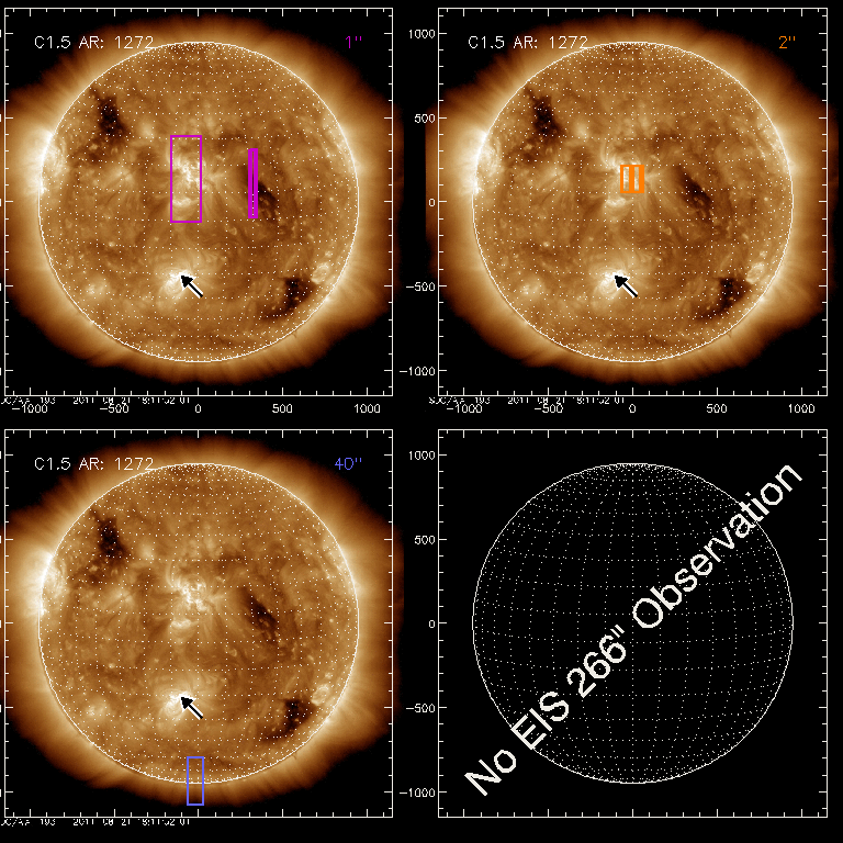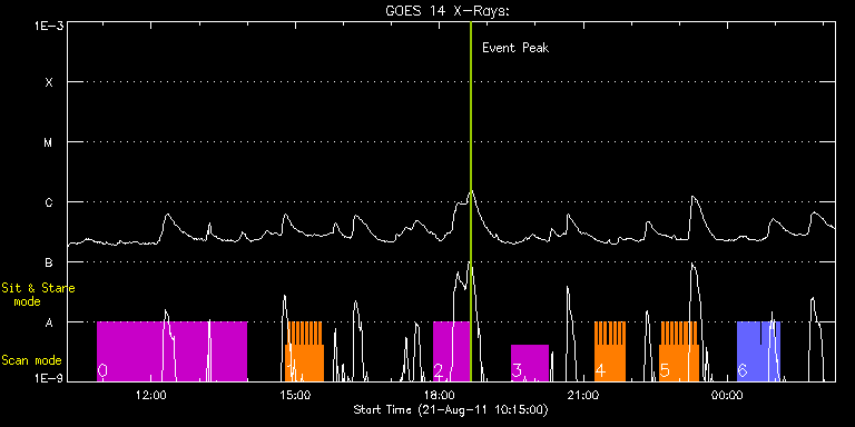 EIS Observation timeline overlay to GOES-Xray curve Code 1" 2" 40" 266" EIS Observations list for this event: STUDY ACRONYM ID DATE OBSERVED DESCRIPTION NOAA# TARGET 0 HPW021_VEL_360x512v1 | 23909 | 2011/08/21 10:52:51 | AR11271 flare obs | 1271 | Active Region TIMELINE ID DATE OBSERVED FITS FILE XCEN (+W/-E) YCEN (+N/-S) DUR ----------------------------------------------------------------------------------------------------------------- 23909 | 2011/08/21 10:52:51.000 | eis_l0_20110821_105251.fits.gz | -70.95 | 131.98 | 3h5m43s 1 HH_Flare_180x152f | 23966 | 2011/08/21 14:47:10 | AR11271 flare obs | 1271 | Flare TIMELINE ID DATE OBSERVED FITS FILE XCEN (+W/-E) YCEN (+N/-S) DUR ----------------------------------------------------------------------------------------------------------------- 23966 | 2011/08/21 14:47:10.000 | eis_l0_20110821_144710.fits.gz | -38.33 | 131.36 | 2m48s 23966 | 2011/08/21 14:50:01.000 | eis_l0_20110821_145001.fits.gz | -38.10 | 131.67 | 2m47s 23966 | 2011/08/21 14:52:51.000 | eis_l0_20110821_145251.fits.gz | -37.63 | 131.52 | 2m48s 23966 | 2011/08/21 14:55:42.000 | eis_l0_20110821_145542.fits.gz | -37.09 | 131.36 | 2m47s 23966 | 2011/08/21 14:58:32.000 | eis_l0_20110821_145832.fits.gz | -36.78 | 131.59 | 2m47s 23966 | 2011/08/21 15:01:22.000 | eis_l0_20110821_150122.fits.gz | -36.32 | 131.44 | 2m48s 23966 | 2011/08/21 15:04:13.000 | eis_l0_20110821_150413.fits.gz | -35.93 | 131.59 | 2m48s 23966 | 2011/08/21 15:07:04.000 | eis_l0_20110821_150704.fits.gz | -35.55 | 131.59 | 2m47s 23966 | 2011/08/21 15:09:54.000 | eis_l0_20110821_150954.fits.gz | -35.01 | 131.52 | 2m48s 23966 | 2011/08/21 15:12:45.000 | eis_l0_20110821_151245.fits.gz | -34.62 | 131.59 | 2m48s 23966 | 2011/08/21 15:15:36.000 | eis_l0_20110821_151536.fits.gz | -34.23 | 131.44 | 2m48s 23966 | 2011/08/21 15:18:26.000 | eis_l0_20110821_151826.fits.gz | -33.85 | 131.52 | 2m48s 23966 | 2011/08/21 15:21:17.000 | eis_l0_20110821_152117.fits.gz | -33.38 | 131.52 | 2m48s 23966 | 2011/08/21 15:24:08.000 | eis_l0_20110821_152408.fits.gz | -33.00 | 131.52 | 2m48s 23966 | 2011/08/21 15:26:58.000 | eis_l0_20110821_152658.fits.gz | -32.53 | 131.52 | 2m48s 23966 | 2011/08/21 15:29:49.000 | eis_l0_20110821_152949.fits.gz | -32.23 | 131.67 | 2m48s 23966 | 2011/08/21 15:32:40.000 | eis_l0_20110821_153240.fits.gz | -31.76 | 131.52 | 2m48s 2 NRL_QSCH_30x400_90s2 | 23949 | 2011/08/21 17:52:05 | HOP198 CH raster scan | | Quiet Sun TIMELINE ID DATE OBSERVED FITS FILE XCEN (+W/-E) YCEN (+N/-S) DUR ----------------------------------------------------------------------------------------------------------------- 23949 | 2011/08/21 17:52:05.000 | eis_l0_20110821_175205.fits.gz | 318.78 | 104.32 | 45m49s 3 NRL_QSCH_30x400_90s2 | 23950 | 2011/08/21 19:30:35 | HOP198 CH raster scan | | Quiet Sun TIMELINE ID DATE OBSERVED FITS FILE XCEN (+W/-E) YCEN (+N/-S) DUR ----------------------------------------------------------------------------------------------------------------- 23950 | 2011/08/21 19:30:35.000 | eis_l0_20110821_193035.fits.gz | 332.53 | 104.94 | 45m49s 4 HH_Flare_180x152f | 23967 | 2011/08/21 21:14:50 | AR11271 flare obs | 1271 | Flare TIMELINE ID DATE OBSERVED FITS FILE XCEN (+W/-E) YCEN (+N/-S) DUR ----------------------------------------------------------------------------------------------------------------- 23967 | 2011/08/21 21:14:50.000 | eis_l0_20110821_211450.fits.gz | 18.68 | 131.36 | 2m48s 23967 | 2011/08/21 21:17:41.000 | eis_l0_20110821_211741.fits.gz | 19.07 | 131.21 | 2m48s 23967 | 2011/08/21 21:20:32.000 | eis_l0_20110821_212032.fits.gz | 19.45 | 131.44 | 2m47s 23967 | 2011/08/21 21:23:22.000 | eis_l0_20110821_212322.fits.gz | 19.84 | 131.36 | 2m48s 23967 | 2011/08/21 21:26:13.000 | eis_l0_20110821_212613.fits.gz | 20.23 | 131.28 | 2m48s 23967 | 2011/08/21 21:29:03.000 | eis_l0_20110821_212903.fits.gz | 20.69 | 131.28 | 2m48s 23967 | 2011/08/21 21:31:54.000 | eis_l0_20110821_213154.fits.gz | 21.08 | 131.44 | 2m48s 23967 | 2011/08/21 21:34:45.000 | eis_l0_20110821_213445.fits.gz | 21.62 | 131.28 | 2m47s 23967 | 2011/08/21 21:37:35.000 | eis_l0_20110821_213735.fits.gz | 21.85 | 131.44 | 2m48s 23967 | 2011/08/21 21:40:26.000 | eis_l0_20110821_214026.fits.gz | 22.31 | 131.28 | 2m48s 23967 | 2011/08/21 21:43:17.000 | eis_l0_20110821_214317.fits.gz | 22.93 | 131.36 | 2m47s 23967 | 2011/08/21 21:46:07.000 | eis_l0_20110821_214607.fits.gz | 23.32 | 131.28 | 2m48s 23967 | 2011/08/21 21:48:58.000 | eis_l0_20110821_214858.fits.gz | 23.70 | 131.44 | 2m48s 5 HH_Flare_180x152f | 23968 | 2011/08/21 22:35:13 | AR11271 flare obs | 1271 | Flare TIMELINE ID DATE OBSERVED FITS FILE XCEN (+W/-E) YCEN (+N/-S) DUR ----------------------------------------------------------------------------------------------------------------- 23968 | 2011/08/21 22:35:13.000 | eis_l0_20110821_223513.fits.gz | 30.50 | 131.44 | 2m47s 23968 | 2011/08/21 22:38:03.000 | eis_l0_20110821_223803.fits.gz | 30.89 | 131.44 | 2m48s 23968 | 2011/08/21 22:40:54.000 | eis_l0_20110821_224054.fits.gz | 31.35 | 131.28 | 2m47s 23968 | 2011/08/21 22:43:44.000 | eis_l0_20110821_224344.fits.gz | 31.66 | 131.44 | 2m48s 23968 | 2011/08/21 22:46:35.000 | eis_l0_20110821_224635.fits.gz | 32.20 | 131.36 | 2m47s 23968 | 2011/08/21 22:49:25.000 | eis_l0_20110821_224925.fits.gz | 32.51 | 131.44 | 2m48s 23968 | 2011/08/21 22:52:16.000 | eis_l0_20110821_225216.fits.gz | 32.89 | 131.36 | 2m48s 23968 | 2011/08/21 22:55:06.000 | eis_l0_20110821_225506.fits.gz | 33.43 | 131.36 | 2m48s 23968 | 2011/08/21 22:57:57.000 | eis_l0_20110821_225757.fits.gz | 33.82 | 131.28 | 2m48s 23968 | 2011/08/21 23:00:48.000 | eis_l0_20110821_230048.fits.gz | 34.13 | 131.36 | 2m47s 23968 | 2011/08/21 23:03:38.000 | eis_l0_20110821_230338.fits.gz | 34.59 | 131.36 | 2m47s 23968 | 2011/08/21 23:06:28.000 | eis_l0_20110821_230628.fits.gz | 35.06 | 131.36 | 2m48s 23968 | 2011/08/21 23:09:19.000 | eis_l0_20110821_230919.fits.gz | 35.52 | 131.28 | 2m48s 23968 | 2011/08/21 23:12:10.000 | eis_l0_20110821_231210.