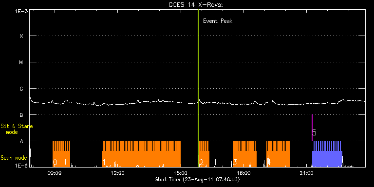 EIS Observation timeline overlay to GOES-Xray curve Code 1" 2" 40" 266" EIS Observations list for this event: STUDY ACRONYM ID DATE OBSERVED DESCRIPTION NOAA# TARGET 0 HH_Flare_180x152f | 23975 | 2011/08/23 08:54:47 | AR11271 flare obs | 1271 | Flare TIMELINE ID DATE OBSERVED FITS FILE XCEN (+W/-E) YCEN (+N/-S) DUR ----------------------------------------------------------------------------------------------------------------- 23975 | 2011/08/23 08:54:47.000 | eis_l0_20110823_085447.fits.gz | 326.36 | 137.85 | 2m48s 23975 | 2011/08/23 08:57:37.000 | eis_l0_20110823_085737.fits.gz | 326.74 | 137.85 | 2m48s 23975 | 2011/08/23 09:00:28.000 | eis_l0_20110823_090028.fits.gz | 327.21 | 137.93 | 2m43s 23975 | 2011/08/23 09:03:19.000 | eis_l0_20110823_090319.fits.gz | 327.59 | 137.93 | 2m47s 23975 | 2011/08/23 09:06:09.000 | eis_l0_20110823_090609.fits.gz | 328.06 | 137.93 | 2m48s 23975 | 2011/08/23 09:09:00.000 | eis_l0_20110823_090900.fits.gz | 328.37 | 137.93 | 2m47s 23975 | 2011/08/23 09:11:50.000 | eis_l0_20110823_091150.fits.gz | 328.75 | 137.93 | 2m48s 23975 | 2011/08/23 09:14:41.000 | eis_l0_20110823_091441.fits.gz | 329.22 | 137.93 | 2m48s 23975 | 2011/08/23 09:17:32.000 | eis_l0_20110823_091732.fits.gz | 329.52 | 138.01 | 2m48s 23975 | 2011/08/23 09:20:23.000 | eis_l0_20110823_092023.fits.gz | 329.91 | 137.93 | 2m49s 23975 | 2011/08/23 09:23:14.000 | eis_l0_20110823_092314.fits.gz | 330.38 | 138.01 | 2m48s 23975 | 2011/08/23 09:26:05.000 | eis_l0_20110823_092605.fits.gz | 330.76 | 137.93 | 2m48s 23975 | 2011/08/23 09:28:56.000 | eis_l0_20110823_092856.fits.gz | 331.15 | 138.01 | 2m47s 23975 | 2011/08/23 09:31:46.000 | eis_l0_20110823_093146.fits.gz | 331.38 | 138.08 | 2m48s 23975 | 2011/08/23 09:34:36.000 | eis_l0_20110823_093436.fits.gz | 331.77 | 138.01 | 2m48s 23975 | 2011/08/23 09:37:27.000 | eis_l0_20110823_093727.fits.gz | 332.31 | 138.16 | 2m48s 23975 | 2011/08/23 09:40:18.000 | eis_l0_20110823_094018.fits.gz | 332.69 | 138.16 | 2m48s 1 Cam_flare_diag | 23988 | 2011/08/23 11:15:14 | Small Cambrige Flare Study | | Flare TIMELINE ID DATE OBSERVED FITS FILE XCEN (+W/-E) YCEN (+N/-S) DUR ----------------------------------------------------------------------------------------------------------------- 23988 | 2011/08/23 11:15:14.000 | eis_l0_20110823_111514.fits.gz | 318.49 | 133.68 | 2m12s 23988 | 2011/08/23 11:17:28.000 | eis_l0_20110823_111728.fits.gz | 318.80 | 133.83 | 2m12s 23988 | 2011/08/23 11:19:43.000 | eis_l0_20110823_111943.fits.gz | 319.11 | 133.68 | 2m12s 23988 | 2011/08/23 11:21:58.000 | eis_l0_20110823_112158.fits.gz | 319.34 | 133.60 | 2m11s 23988 | 2011/08/23 11:24:12.000 | eis_l0_20110823_112412.fits.gz | 319.73 | 133.68 | 2m12s 23988 | 2011/08/23 11:26:27.000 | eis_l0_20110823_112627.fits.gz | 320.04 | 133.76 | 2m12s 23988 | 2011/08/23 11:28:42.000 | eis_l0_20110823_112842.fits.gz | 320.35 | 133.76 | 2m11s 23988 | 2011/08/23 11:30:56.000 | eis_l0_20110823_113056.fits.gz | 320.65 | 133.76 | 2m12s 23988 | 2011/08/23 11:33:10.000 | eis_l0_20110823_113310.fits.gz | 321.04 | 133.83 | 2m12s 23988 | 2011/08/23 11:35:25.000 | eis_l0_20110823_113525.fits.gz | 321.27 | 133.91 | 2m12s 23988 | 2011/08/23 11:37:40.000 | eis_l0_20110823_113740.fits.gz | 321.73 | 133.83 | 2m11s 23988 | 2011/08/23 11:39:54.000 | eis_l0_20110823_113954.fits.gz | 321.97 | 133.83 | 2m12s 23988 | 2011/08/23 11:42:09.000 | eis_l0_20110823_114209.fits.gz | 322.20 | 133.91 | 2m11s 23988 | 2011/08/23 11:44:23.000 | eis_l0_20110823_114423.fits.gz | 322.51 | 133.91 | 2m12s 23988 | 2011/08/23 11:46:38.000 | eis_l0_20110823_114638.fits.gz | 322.89 | 133.83 | 2m11s 23988 | 2011/08/23 11:48:52.000 | eis_l0_20110823_114852.fits.gz | 323.13 | 133.99 | 2m12s 23988 | 2011/08/23 11:51:07.000 | eis_l0_20110823_115107.fits.gz | 323.43 | 133.91 | 2m12s 23988 | 2011/08/23 11:53:22.000 | eis_l0_20110823_115322.fits.gz | 323.82 | 134.07 | 2m11s 23988 | 2011/08/23 11:55:36.000 | eis_l0_20110823_115536.fits.gz | 323.98 | 134.07 | 2m12s 23988 | 2011/08/23 11:57:50.000 | eis_l0_20110823_115750.fits.gz | 324.36 | 133.99 | 2m12s 23988 | 2011/08/23 12:00:05.000 | eis_l0_20110823_120005.fits.gz | 324.67 | 134.07 | 2m12s 23988 | 2011/08/23 12:02:19.000 | eis_l0_20110823_120219.fits.gz | 325.06 | 133.99 | 2m12s 23988 | 2011/08/23 12:04:34.000 | eis_l0_20110823_120434.fits.gz | 325.29 | 134.14 | 2m12s 23988 | 2011/08/23 12:06:48.000 | eis_l0_20110823_120648.fits.gz | 325.60 | 134.14 | 2m12s 23988 | 2011/08/23 12:09:03.000 | eis_l0_20110823_120903.fits.gz | 325.83 | 134.14 | 2m12s 23988 | 2011/08/23 12:11:18.000 | eis_l0_20110823_121118.fits.gz | 326.29 | 134.22 | 2m12s 23988 | 2011/08/23 12:13:32.000 | eis_l0_20110823_121332.fits.gz | 326.52 | 134.07 | 2m12s 23988 | 2011/08/23 12:15:47.000 | eis_l0_20110823_121547.fits.gz | 326.83 | 134.14 | 2m12s 23988 | 2011/08/23 12:18:02.000 | eis_l0_20110823_121802.fits.gz | 327.22 | 134.14 | 2m12s 23988 | 2011/08/23 12:20:17.000 | eis_l0_20110823_122017.fits.gz | 327.53 | 134.07 | 2m11s 23988 | 2011/08/23 12:22:31.000 | eis_l0_20110823_122231.fits.gz | 327.84 | 134.14 | 2m12s 23988 | 2011/08/23 12:24:46.000 | eis_l0_20110823_122446.fits.gz | 328.07 | 134.30 | 2m11s 23988 | 2011/08/23 12:27:00.000 | eis_l0_20110823_122700.fits.gz | 328.46 | 134.07 | 2m12s 23988 | 2011/08/23 12:29:14.000 | eis_l0_20110823_122914.fits.gz | 328.69 | 134.22 | 2m12s 23988 | 2011/08/23 12:31:29.000 | eis_l0_20110823_123129.fits.gz | 328.92 | 134.22 | 2m12s 23988 | 2011/08/23 12:33:43.000 | eis_l0_20110823_123343.fits.gz | 329.30 | 134.30 | 2m12s 23988 | 2011/08/23 12:35:58.000 | eis_l0_20110823_123558.fits.gz | 329.61 | 134.22 | 2m12s 23988 | 2011/08/23 12:38:12.000 | eis_l0_20110823_123812.fits.gz | 330.00 | 134.14 | 2m12s 23988 | 2011/08/23 12:40:27.000 | eis_l0_20110823_124027.fits.gz | 330.31 | 134.14 | 2m12s 23988 | 2011/08/23 12:42:41.000 | eis_l0_20110823_124241.fits.gz | 330.62 | 134.14 | 2m12s 23988 | 2011/08/23 12:44:56.000 | eis_l0_20110823_124456.fits.gz | 330.93 | 134.30 | 2m12s 23988 | 2011/08/23 12:47: