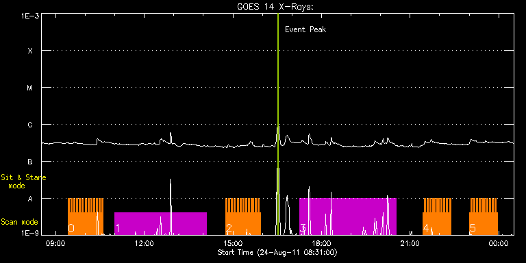 EIS Observation timeline overlay to GOES-Xray curve Code 1" 2" 40" 266" EIS Observations list for this event: STUDY ACRONYM ID DATE OBSERVED DESCRIPTION NOAA# TARGET 0 HH_Flare_180x152f | 23995 | 2011/08/24 09:25:13 | AR 11271 flare obs | 1271 | Flare TIMELINE ID DATE OBSERVED FITS FILE XCEN (+W/-E) YCEN (+N/-S) DUR ----------------------------------------------------------------------------------------------------------------- 23995 | 2011/08/24 09:25:13.000 | eis_l0_20110824_092513.fits.gz | 492.52 | 143.88 | 2m48s 23995 | 2011/08/24 09:28:04.000 | eis_l0_20110824_092804.fits.gz | 492.90 | 143.88 | 2m48s 23995 | 2011/08/24 09:30:55.000 | eis_l0_20110824_093055.fits.gz | 493.21 | 143.95 | 2m49s 23995 | 2011/08/24 09:33:46.000 | eis_l0_20110824_093346.fits.gz | 493.60 | 143.95 | 2m48s 23995 | 2011/08/24 09:36:37.000 | eis_l0_20110824_093637.fits.gz | 493.91 | 144.03 | 2m48s 23995 | 2011/08/24 09:39:28.000 | eis_l0_20110824_093928.fits.gz | 494.37 | 143.95 | 2m48s 23995 | 2011/08/24 09:42:19.000 | eis_l0_20110824_094219.fits.gz | 494.60 | 144.11 | 2m48s 23995 | 2011/08/24 09:45:09.000 | eis_l0_20110824_094509.fits.gz | 495.07 | 143.95 | 2m48s 23995 | 2011/08/24 09:48:00.000 | eis_l0_20110824_094800.fits.gz | 495.38 | 144.03 | 2m48s 23995 | 2011/08/24 09:50:51.000 | eis_l0_20110824_095051.fits.gz | 495.68 | 144.11 | 2m48s 23995 | 2011/08/24 09:53:42.000 | eis_l0_20110824_095342.fits.gz | 495.99 | 144.11 | 2m47s 23995 | 2011/08/24 09:56:32.000 | eis_l0_20110824_095632.fits.gz | 496.46 | 144.11 | 2m48s 23995 | 2011/08/24 09:59:23.000 | eis_l0_20110824_095923.fits.gz | 496.92 | 143.95 | 2m48s 23995 | 2011/08/24 10:02:14.000 | eis_l0_20110824_100214.fits.gz | 497.23 | 144.11 | 2m47s 23995 | 2011/08/24 10:05:04.000 | eis_l0_20110824_100504.fits.gz | 497.46 | 144.11 | 2m48s 23995 | 2011/08/24 10:07:55.000 | eis_l0_20110824_100755.fits.gz | 497.77 | 144.26 | 2m48s 23995 | 2011/08/24 10:10:46.000 | eis_l0_20110824_101046.fits.gz | 498.16 | 144.26 | 2m47s 23995 | 2011/08/24 10:13:36.000 | eis_l0_20110824_101336.fits.gz | 498.47 | 144.34 | 2m48s 23995 | 2011/08/24 10:16:27.000 | eis_l0_20110824_101627.fits.gz | 498.85 | 144.42 | 2m49s 23995 | 2011/08/24 10:19:18.000 | eis_l0_20110824_101918.fits.gz | 499.32 | 144.26 | 2m48s 23995 | 2011/08/24 10:22:09.000 | eis_l0_20110824_102209.fits.gz | 499.62 | 144.26 | 2m48s 23995 | 2011/08/24 10:24:59.000 | eis_l0_20110824_102459.fits.gz | 499.93 | 144.26 | 2m48s 23995 | 2011/08/24 10:27:50.000 | eis_l0_20110824_102750.fits.gz | 500.32 | 144.42 | 2m48s 23995 | 2011/08/24 10:30:40.000 | eis_l0_20110824_103040.fits.gz | 500.63 | 144.42 | 2m48s 23995 | 2011/08/24 10:33:31.000 | eis_l0_20110824_103331.fits.gz | 501.02 | 144.42 | 2m48s 1 HPW021_VEL_360x512v1 | 23996 | 2011/08/24 11:00:27 | Active Region Studies | 1271 | Active Region TIMELINE ID DATE OBSERVED FITS FILE XCEN (+W/-E) YCEN (+N/-S) DUR ----------------------------------------------------------------------------------------------------------------- 23996 | 2011/08/24 11:00:27.000 | eis_l0_20110824_110027.fits.gz | 506.24 | 144.73 | 3h5m42s 2 HH_Flare_180x152f | 23997 | 2011/08/24 14:45:26 | AR 11271 flare obs | 1271 | Flare TIMELINE ID DATE OBSERVED FITS FILE XCEN (+W/-E) YCEN (+N/-S) DUR ----------------------------------------------------------------------------------------------------------------- 23997 | 2011/08/24 14:45:26.000 | eis_l0_20110824_144526.fits.gz | 531.68 | 146.89 | 2m48s 23997 | 2011/08/24 14:48:17.000 | eis_l0_20110824_144817.fits.gz | 531.91 | 147.04 | 2m48s 23997 | 2011/08/24 14:51:08.000 | eis_l0_20110824_145108.fits.gz | 532.38 | 146.89 | 2m48s 23997 | 2011/08/24 14:53:59.000 | eis_l0_20110824_145359.fits.gz | 532.61 | 147.04 | 2m49s 23997 | 2011/08/24 14:56:50.000 | eis_l0_20110824_145650.fits.gz | 533.07 | 147.12 | 2m49s 23997 | 2011/08/24 14:59:41.000 | eis_l0_20110824_145941.fits.gz | 533.38 | 146.81 | 2m49s 23997 | 2011/08/24 15:02:33.000 | eis_l0_20110824_150233.fits.gz | 533.61 | 147.12 | 2m48s 23997 | 2011/08/24 15:05:23.000 | eis_l0_20110824_150523.fits.gz | 534.00 | 147.12 | 2m48s 23997 | 2011/08/24 15:08:14.000 | eis_l0_20110824_150814.fits.gz | 534.31 | 147.20 | 2m48s 23997 | 2011/08/24 15:11:05.000 | eis_l0_20110824_151105.fits.gz | 534.70 | 147.12 | 2m48s 23997 | 2011/08/24 15:13:55.000 | eis_l0_20110824_151355.fits.gz | 535.08 | 147.20 | 2m48s 23997 | 2011/08/24 15:16:46.000 | eis_l0_20110824_151646.fits.gz | 535.39 | 147.12 | 2m48s 23997 | 2011/08/24 15:19:37.000 | eis_l0_20110824_151937.fits.gz | 535.78 | 147.27 | 2m47s 23997 | 2011/08/24 15:22:27.000 | eis_l0_20110824_152227.fits.gz | 536.09 | 147.35 | 2m48s 23997 | 2011/08/24 15:25:18.000 | eis_l0_20110824_152518.fits.gz | 536.47 | 147.35 | 2m48s 23997 | 2011/08/24 15:28:08.000 | eis_l0_20110824_152808.fits.gz | 536.78 | 147.51 | 2m48s 23997 | 2011/08/24 15:30:59.000 | eis_l0_20110824_153059.fits.gz | 537.01 | 147.58 | 2m48s 23997 | 2011/08/24 15:33:50.000 | eis_l0_20110824_153350.fits.gz | 537.48 | 147.35 | 2m48s 23997 | 2011/08/24 15:36:41.000 | eis_l0_20110824_153641.fits.gz | 537.86 | 147.43 | 1m 23997 | 2011/08/24 15:37:49.000 | eis_l0_20110824_153749.fits.gz | 537.94 | 147.51 | 1m40s 23997 | 2011/08/24 15:39:31.000 | eis_l0_20110824_153931.fits.gz | 538.09 | 147.51 | 2m48s 23997 | 2011/08/24 15:42:22.000 | eis_l0_20110824_154222.fits.gz | 538.48 | 147.51 | 2m47s 23997 | 2011/08/24 15:45:12.000 | eis_l0_20110824_154512.fits.gz | 538.87 | 147.51 | 2m48s 23997 | 2011/08/24 15:48:03.000 | eis_l0_20110824_154803.fits.gz | 539.10 | 147.58 | 2m48s 23997 | 2011/08/24 15:50:54.000 | eis_l0_20110824_155054.fits.gz | 539.48 | 147.58 | 2m48s 23997 | 2011/08/24 15:53:44.000 | eis_l0_20110824_155344.fits.gz | 539.79 | 147.58 | 2m48s 3 SYNOP006 | 23981 | 2011/08/24 17:15:26 | Synoptic Observation | | Quiet Sun TIMELINE ID DATE OBSERVED FITS FILE XCEN (+W/-E) YCEN (+N/-S) DUR ----------------------------------------------------------------------------------------------------------------- 23981 | 2011/08/24 17:15:26.000 |