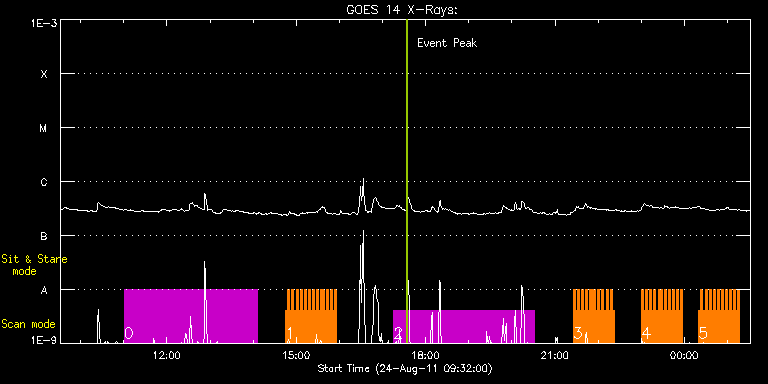 EIS Observation timeline overlay to GOES-Xray curve Code 1" 2" 40" 266" EIS Observations list for this event: STUDY ACRONYM ID DATE OBSERVED DESCRIPTION NOAA# TARGET 0 HPW021_VEL_360x512v1 | 23996 | 2011/08/24 11:00:27 | Active Region Studies | 1271 | Active Region TIMELINE ID DATE OBSERVED FITS FILE XCEN (+W/-E) YCEN (+N/-S) DUR ----------------------------------------------------------------------------------------------------------------- 23996 | 2011/08/24 11:00:27.000 | eis_l0_20110824_110027.fits.gz | 506.24 | 144.73 | 3h5m42s 1 HH_Flare_180x152f | 23997 | 2011/08/24 14:45:26 | AR 11271 flare obs | 1271 | Flare TIMELINE ID DATE OBSERVED FITS FILE XCEN (+W/-E) YCEN (+N/-S) DUR ----------------------------------------------------------------------------------------------------------------- 23997 | 2011/08/24 14:45:26.000 | eis_l0_20110824_144526.fits.gz | 531.68 | 146.89 | 2m48s 23997 | 2011/08/24 14:48:17.000 | eis_l0_20110824_144817.fits.gz | 531.91 | 147.04 | 2m48s 23997 | 2011/08/24 14:51:08.000 | eis_l0_20110824_145108.fits.gz | 532.38 | 146.89 | 2m48s 23997 | 2011/08/24 14:53:59.000 | eis_l0_20110824_145359.fits.gz | 532.61 | 147.04 | 2m49s 23997 | 2011/08/24 14:56:50.000 | eis_l0_20110824_145650.fits.gz | 533.07 | 147.12 | 2m49s 23997 | 2011/08/24 14:59:41.000 | eis_l0_20110824_145941.fits.gz | 533.38 | 146.81 | 2m49s 23997 | 2011/08/24 15:02:33.000 | eis_l0_20110824_150233.fits.gz | 533.61 | 147.12 | 2m48s 23997 | 2011/08/24 15:05:23.000 | eis_l0_20110824_150523.fits.gz | 534.00 | 147.12 | 2m48s 23997 | 2011/08/24 15:08:14.000 | eis_l0_20110824_150814.fits.gz | 534.31 | 147.20 | 2m48s 23997 | 2011/08/24 15:11:05.000 | eis_l0_20110824_151105.fits.gz | 534.70 | 147.12 | 2m48s 23997 | 2011/08/24 15:13:55.000 | eis_l0_20110824_151355.fits.gz | 535.08 | 147.20 | 2m48s 23997 | 2011/08/24 15:16:46.000 | eis_l0_20110824_151646.fits.gz | 535.39 | 147.12 | 2m48s 23997 | 2011/08/24 15:19:37.000 | eis_l0_20110824_151937.fits.gz | 535.78 | 147.27 | 2m47s 23997 | 2011/08/24 15:22:27.000 | eis_l0_20110824_152227.fits.gz | 536.09 | 147.35 | 2m48s 23997 | 2011/08/24 15:25:18.000 | eis_l0_20110824_152518.fits.gz | 536.47 | 147.35 | 2m48s 23997 | 2011/08/24 15:28:08.000 | eis_l0_20110824_152808.fits.gz | 536.78 | 147.51 | 2m48s 23997 | 2011/08/24 15:30:59.000 | eis_l0_20110824_153059.fits.gz | 537.01 | 147.58 | 2m48s 23997 | 2011/08/24 15:33:50.000 | eis_l0_20110824_153350.fits.gz | 537.48 | 147.35 | 2m48s 23997 | 2011/08/24 15:36:41.000 | eis_l0_20110824_153641.fits.gz | 537.86 | 147.43 | 1m 23997 | 2011/08/24 15:37:49.000 | eis_l0_20110824_153749.fits.gz | 537.94 | 147.51 | 1m40s 23997 | 2011/08/24 15:39:31.000 | eis_l0_20110824_153931.fits.gz | 538.09 | 147.51 | 2m48s 23997 | 2011/08/24 15:42:22.000 | eis_l0_20110824_154222.fits.gz | 538.48 | 147.51 | 2m47s 23997 | 2011/08/24 15:45:12.000 | eis_l0_20110824_154512.fits.gz | 538.87 | 147.51 | 2m48s 23997 | 2011/08/24 15:48:03.000 | eis_l0_20110824_154803.fits.gz | 539.10 | 147.58 | 2m48s 23997 | 2011/08/24 15:50:54.000 | eis_l0_20110824_155054.fits.gz | 539.48 | 147.58 | 2m48s 23997 | 2011/08/24 15:53:44.000 | eis_l0_20110824_155344.fits.gz | 539.79 | 147.58 | 2m48s 2 SYNOP006 | 23981 | 2011/08/24 17:15:26 | Synoptic Observation | | Quiet Sun TIMELINE ID DATE OBSERVED FITS FILE XCEN (+W/-E) YCEN (+N/-S) DUR ----------------------------------------------------------------------------------------------------------------- 23981 | 2011/08/24 17:15:26.000 | eis_l0_20110824_171526.fits.gz | 0.98 | -0.81 | 3h15m34s 3 HH_Flare_180x152f | 23998 | 2011/08/24 21:25:26 | AR 11271 flare obs | 1271 | Flare TIMELINE ID DATE OBSERVED FITS FILE XCEN (+W/-E) YCEN (+N/-S) DUR ----------------------------------------------------------------------------------------------------------------- 23998 | 2011/08/24 21:25:26.000 | eis_l0_20110824_212526.fits.gz | 578.57 | 151.21 | 2m49s 23998 | 2011/08/24 21:28:18.000 | eis_l0_20110824_212818.fits.gz | 578.88 | 151.29 | 2m49s 23998 | 2011/08/24 21:31:09.000 | eis_l0_20110824_213109.fits.gz | 579.19 | 151.21 | 2m48s 23998 | 2011/08/24 21:34:00.000 | eis_l0_20110824_213400.fits.gz | 579.50 | 151.21 | 2m48s 23998 | 2011/08/24 21:36:51.000 | eis_l0_20110824_213651.fits.gz | 579.73 | 151.29 | 2m48s 23998 | 2011/08/24 21:39:42.000 | eis_l0_20110824_213942.fits.gz | 580.19 | 151.37 | 2m48s 23998 | 2011/08/24 21:42:33.000 | eis_l0_20110824_214233.fits.gz | 580.42 | 151.29 | 2m48s 23998 | 2011/08/24 21:45:24.000 | eis_l0_20110824_214524.fits.gz | 580.81 | 151.21 | 2m47s 23998 | 2011/08/24 21:48:14.000 | eis_l0_20110824_214814.fits.gz | 581.20 | 151.37 | 1m1s 23998 | 2011/08/24 21:49:22.000 | eis_l0_20110824_214922.fits.gz | 581.28 | 151.29 | 1m40s 23998 | 2011/08/24 21:51:05.000 | eis_l0_20110824_215105.fits.gz | 581.43 | 151.45 | 2m2s 23998 | 2011/08/24 21:53:20.000 | eis_l0_20110824_215320.fits.gz | 581.74 | 151.37 | 4s 23998 | 2011/08/24 21:53:31.000 | eis_l0_20110824_215331.fits.gz | 581.74 | 151.45 | 5s 23998 | 2011/08/24 21:54:13.000 | eis_l0_20110824_215413.fits.gz | 581.89 | 151.37 | 1m6s 23998 | 2011/08/24 21:55:32.000 | eis_l0_20110824_215532.fits.gz | 581.97 | 151.60 | 1m12s 23998 | 2011/08/24 21:56:47.000 | eis_l0_20110824_215647.fits.gz | 582.12 | 151.52 | 2m48s 23998 | 2011/08/24 21:59:37.000 | eis_l0_20110824_215937.fits.gz | 582.43 | 151.52 | 2m48s 23998 | 2011/08/24 22:02:27.000 | eis_l0_20110824_220227.fits.gz | 582.82 | 151.52 | 2m48s 23998 | 2011/08/24 22:05:18.000 | eis_l0_20110824_220518.fits.gz | 583.13 | 151.52 | 2m48s 23998 | 2011/08/24 22:08:09.000 | eis_l0_20110824_220809.fits.gz | 583.36 | 151.60 | 2m48s 23998 | 2011/08/24 22:11:00.000 | eis_l0_20110824_221100.fits.gz | 583.67 | 151.68 | 2m48s 23998 | 2011/08/24 22:13:51.000 | eis_l0_20110824_221351.fits.gz | 584.06 | 151.68 | 2m47s 23998 | 2011/08/24 22:16:41.000 | eis_l0_20110824_221641.fits.gz | 584.36 | 151.76 | 2m48s 23998 | 2011/08/24 22:19:32.000 | eis_l0_20110824_221932.fits.gz | 584.60 | 151.68 | 2m48s 4 HH_Flare_180x152f | 23999 | 2011/08/24 2