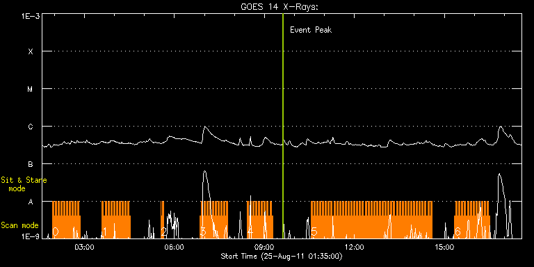 EIS Observation timeline overlay to GOES-Xray curve Code 1" 2" 40" 266" EIS Observations list for this event: STUDY ACRONYM ID DATE OBSERVED DESCRIPTION NOAA# TARGET 0 HH_Flare_180x152f | 24001 | 2011/08/25 01:55:13 | AR 11271 flare obs | 1271 | Flare TIMELINE ID DATE OBSERVED FITS FILE XCEN (+W/-E) YCEN (+N/-S) DUR ----------------------------------------------------------------------------------------------------------------- 24001 | 2011/08/25 01:55:13.000 | eis_l0_20110825_015513.fits.gz | 608.78 | 154.23 | 2m47s 24001 | 2011/08/25 01:58:03.000 | eis_l0_20110825_015803.fits.gz | 609.16 | 154.23 | 2m48s 24001 | 2011/08/25 02:00:54.000 | eis_l0_20110825_020054.fits.gz | 609.39 | 154.38 | 2m48s 24001 | 2011/08/25 02:03:45.000 | eis_l0_20110825_020345.fits.gz | 609.86 | 154.30 | 2m47s 24001 | 2011/08/25 02:06:35.000 | eis_l0_20110825_020635.fits.gz | 610.09 | 154.46 | 2m49s 24001 | 2011/08/25 02:09:26.000 | eis_l0_20110825_020926.fits.gz | 610.40 | 154.30 | 2m48s 24001 | 2011/08/25 02:12:17.000 | eis_l0_20110825_021217.fits.gz | 610.71 | 154.54 | 2m48s 24001 | 2011/08/25 02:15:07.000 | eis_l0_20110825_021507.fits.gz | 611.02 | 154.38 | 2m48s 24001 | 2011/08/25 02:17:58.000 | eis_l0_20110825_021758.fits.gz | 611.32 | 154.46 | 2m48s 24001 | 2011/08/25 02:20:49.000 | eis_l0_20110825_022049.fits.gz | 611.63 | 154.54 | 2m47s 24001 | 2011/08/25 02:23:39.000 | eis_l0_20110825_022339.fits.gz | 611.94 | 154.61 | 2m48s 24001 | 2011/08/25 02:26:30.000 | eis_l0_20110825_022630.fits.gz | 612.10 | 154.69 | 2m48s 24001 | 2011/08/25 02:29:21.000 | eis_l0_20110825_022921.fits.gz | 612.72 | 154.46 | 2m48s 24001 | 2011/08/25 02:32:12.000 | eis_l0_20110825_023212.fits.gz | 612.95 | 154.77 | 2m48s 24001 | 2011/08/25 02:35:03.000 | eis_l0_20110825_023503.fits.gz | 613.18 | 154.61 | 2m48s 24001 | 2011/08/25 02:37:53.000 | eis_l0_20110825_023753.fits.gz | 613.49 | 154.77 | 2m48s 24001 | 2011/08/25 02:40:44.000 | eis_l0_20110825_024044.fits.gz | 613.80 | 154.77 | 2m48s 24001 | 2011/08/25 02:43:35.000 | eis_l0_20110825_024335.fits.gz | 614.03 | 154.85 | 2m48s 24001 | 2011/08/25 02:46:25.000 | eis_l0_20110825_024625.fits.gz | 614.41 | 155.00 | 2m48s 24001 | 2011/08/25 02:49:16.000 | eis_l0_20110825_024916.fits.gz | 614.72 | 155.00 | 2m48s 1 HH_Flare_180x152f | 24002 | 2011/08/25 03:35:13 | AR 11271 flare obs | 1271 | Flare TIMELINE ID DATE OBSERVED FITS FILE XCEN (+W/-E) YCEN (+N/-S) DUR ----------------------------------------------------------------------------------------------------------------- 24002 | 2011/08/25 03:35:13.000 | eis_l0_20110825_033513.fits.gz | 619.74 | 155.54 | 2m48s 24002 | 2011/08/25 03:38:04.000 | eis_l0_20110825_033804.fits.gz | 619.98 | 155.54 | 2m48s 24002 | 2011/08/25 03:40:55.000 | eis_l0_20110825_034055.fits.gz | 620.36 | 155.54 | 2m48s 24002 | 2011/08/25 03:43:46.000 | eis_l0_20110825_034346.fits.gz | 620.75 | 155.62 | 2m48s 24002 | 2011/08/25 03:46:37.000 | eis_l0_20110825_034637.fits.gz | 620.98 | 155.54 | 2m47s 24002 | 2011/08/25 03:49:27.000 | eis_l0_20110825_034927.fits.gz | 621.29 | 155.62 | 2m48s 24002 | 2011/08/25 03:52:18.000 | eis_l0_20110825_035218.fits.gz | 621.60 | 155.54 | 2m48s 24002 | 2011/08/25 03:55:08.000 | eis_l0_20110825_035508.fits.gz | 621.91 | 155.62 | 2m49s 24002 | 2011/08/25 03:57:59.000 | eis_l0_20110825_035759.fits.gz | 622.29 | 155.54 | 2m48s 24002 | 2011/08/25 04:00:50.000 | eis_l0_20110825_040050.fits.gz | 622.53 | 155.85 | 2m47s 24002 | 2011/08/25 04:03:40.000 | eis_l0_20110825_040340.fits.gz | 622.91 | 155.85 | 2m48s 24002 | 2011/08/25 04:06:31.000 | eis_l0_20110825_040631.fits.gz | 623.14 | 155.85 | 2m48s 24002 | 2011/08/25 04:09:22.000 | eis_l0_20110825_040922.fits.gz | 623.45 | 155.85 | 2m48s 24002 | 2011/08/25 04:12:13.000 | eis_l0_20110825_041213.fits.gz | 623.76 | 155.85 | 2m48s 24002 | 2011/08/25 04:15:03.000 | eis_l0_20110825_041503.fits.gz | 624.07 | 155.85 | 2m48s 24002 | 2011/08/25 04:17:54.000 | eis_l0_20110825_041754.fits.gz | 624.46 | 155.93 | 2m49s 24002 | 2011/08/25 04:20:45.000 | eis_l0_20110825_042045.fits.gz | 624.77 | 155.77 | 2m48s 24002 | 2011/08/25 04:23:36.000 | eis_l0_20110825_042336.fits.gz | 625.00 | 156.08 | 2m47s 24002 | 2011/08/25 04:26:26.000 | eis_l0_20110825_042626.fits.gz | 625.38 | 156.16 | 2m48s 24002 | 2011/08/25 04:29:17.000 | eis_l0_20110825_042917.fits.gz | 625.61 | 156.00 | 2m48s 2 HH_Flare_180x152f | 24007 | 2011/08/25 05:32:39 | AR 11271 flare obs | 1271 | Flare TIMELINE ID DATE OBSERVED FITS FILE XCEN (+W/-E) YCEN (+N/-S) DUR ----------------------------------------------------------------------------------------------------------------- 24007 | 2011/08/25 05:32:39.000 | eis_l0_20110825_053239.fits.gz | 632.41 | 156.78 | 16s 24007 | 2011/08/25 05:32:57.000 | eis_l0_20110825_053257.fits.gz | 632.41 | 156.78 | 2m48s 24007 | 2011/08/25 05:35:47.000 | eis_l0_20110825_053547.fits.gz | 632.80 | 156.78 | 2m48s 3 HH_Flare_180x152f | 24003 | 2011/08/25 06:50:13 | AR 11271 flare obs | 1271 | Flare TIMELINE ID DATE OBSERVED FITS FILE XCEN (+W/-E) YCEN (+N/-S) DUR ----------------------------------------------------------------------------------------------------------------- 24003 | 2011/08/25 06:50:13.000 | eis_l0_20110825_065013.fits.gz | 605.38 | 191.92 | 2m47s 24003 | 2011/08/25 06:53:03.000 | eis_l0_20110825_065303.fits.gz | 605.68 | 191.92 | 2m47s 24003 | 2011/08/25 06:55:53.000 | eis_l0_20110825_065553.fits.gz | 605.92 | 192.00 | 2m48s 24003 | 2011/08/25 06:58:44.000 | eis_l0_20110825_065844.fits.gz | 606.30 | 191.92 | 2m47s 24003 | 2011/08/25 07:01:34.000 | eis_l0_20110825_070134.fits.gz | 606.61 | 192.00 | 2m48s 24003 | 2011/08/25 07:04:25.000 | eis_l0_20110825_070425.fits.gz | 606.92 | 192.08 | 2m47s 24003 | 2011/08/25 07:07:15.000 | eis_l0_20110825_070715.fits.gz | 607.31 | 192.00 | 2m48s 24003 | 2011/08/25 07:10:06.000 | eis_l0_20110825_071006.fits.gz | 607.46 | 192.16 | 2m48s 24003 | 2011/08/25 07:12:57.000 | eis_l0_20110825_071257.fits.gz | 607.85 | 192.16 | 2m48s 24003 | 2011/08/25 07:15:48.000 | eis_l0