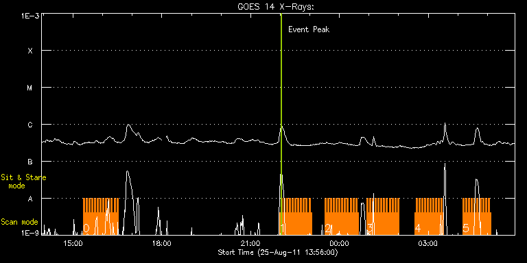 EIS Observation timeline overlay to GOES-Xray curve Code 1" 2" 40" 266" EIS Observations list for this event: STUDY ACRONYM ID DATE OBSERVED DESCRIPTION NOAA# TARGET 0 HH_Flare_180x152f | 24013 | 2011/08/25 15:20:13 | AR 11271 flare obs | 1271 | Flare TIMELINE ID DATE OBSERVED FITS FILE XCEN (+W/-E) YCEN (+N/-S) DUR ----------------------------------------------------------------------------------------------------------------- 24013 | 2011/08/25 15:20:13.000 | eis_l0_20110825_152013.fits.gz | 685.71 | 196.76 | 2m48s 24013 | 2011/08/25 15:23:04.000 | eis_l0_20110825_152304.fits.gz | 686.02 | 196.69 | 2m47s 24013 | 2011/08/25 15:25:54.000 | eis_l0_20110825_152554.fits.gz | 686.25 | 196.84 | 2m48s 24013 | 2011/08/25 15:28:45.000 | eis_l0_20110825_152845.fits.gz | 686.48 | 196.84 | 2m48s 24013 | 2011/08/25 15:31:36.000 | eis_l0_20110825_153136.fits.gz | 686.79 | 196.84 | 2m47s 24013 | 2011/08/25 15:34:26.000 | eis_l0_20110825_153426.fits.gz | 687.02 | 196.92 | 2m48s 24013 | 2011/08/25 15:37:16.000 | eis_l0_20110825_153716.fits.gz | 687.33 | 197.00 | 2m48s 24013 | 2011/08/25 15:40:07.000 | eis_l0_20110825_154007.fits.gz | 687.64 | 197.00 | 2m48s 24013 | 2011/08/25 15:42:58.000 | eis_l0_20110825_154258.fits.gz | 687.87 | 197.00 | 2m48s 24013 | 2011/08/25 15:45:49.000 | eis_l0_20110825_154549.fits.gz | 688.18 | 196.92 | 2m47s 24013 | 2011/08/25 15:48:39.000 | eis_l0_20110825_154839.fits.gz | 688.41 | 197.15 | 2m48s 24013 | 2011/08/25 15:51:30.000 | eis_l0_20110825_155130.fits.gz | 688.64 | 197.07 | 2m48s 24013 | 2011/08/25 15:54:21.000 | eis_l0_20110825_155421.fits.gz | 688.95 | 197.23 | 2m48s 24013 | 2011/08/25 15:57:12.000 | eis_l0_20110825_155712.fits.gz | 689.18 | 197.23 | 2m48s 24013 | 2011/08/25 16:00:02.000 | eis_l0_20110825_160002.fits.gz | 689.49 | 197.31 | 2m48s 24013 | 2011/08/25 16:02:53.000 | eis_l0_20110825_160253.fits.gz | 689.65 | 197.46 | 2m48s 24013 | 2011/08/25 16:05:44.000 | eis_l0_20110825_160544.fits.gz | 690.03 | 197.31 | 2m48s 24013 | 2011/08/25 16:08:34.000 | eis_l0_20110825_160834.fits.gz | 690.34 | 197.46 | 2m49s 24013 | 2011/08/25 16:11:25.000 | eis_l0_20110825_161125.fits.gz | 690.65 | 197.31 | 2m48s 24013 | 2011/08/25 16:14:16.000 | eis_l0_20110825_161416.fits.gz | 690.88 | 197.38 | 2m48s 24013 | 2011/08/25 16:17:07.000 | eis_l0_20110825_161707.fits.gz | 691.12 | 197.46 | 2m48s 24013 | 2011/08/25 16:19:57.000 | eis_l0_20110825_161957.fits.gz | 691.42 | 197.54 | 2m48s 24013 | 2011/08/25 16:22:48.000 | eis_l0_20110825_162248.fits.gz | 691.73 | 197.54 | 2m48s 24013 | 2011/08/25 16:25:39.000 | eis_l0_20110825_162539.fits.gz | 691.97 | 197.54 | 2m48s 24013 | 2011/08/25 16:28:30.000 | eis_l0_20110825_162830.fits.gz | 692.20 | 197.69 | 2m48s 1 HH_Flare_180x152f | 24014 | 2011/08/25 21:58:13 | AR 11271 flare obs | 1271 | Flare TIMELINE ID DATE OBSERVED FITS FILE XCEN (+W/-E) YCEN (+N/-S) DUR ----------------------------------------------------------------------------------------------------------------- 24014 | 2011/08/25 21:58:13.000 | eis_l0_20110825_215813.fits.gz | 722.79 | 202.10 | 2m48s 24014 | 2011/08/25 22:01:04.000 | eis_l0_20110825_220104.fits.gz | 722.94 | 202.10 | 2m48s 24014 | 2011/08/25 22:03:54.000 | eis_l0_20110825_220354.fits.gz | 723.17 | 202.17 | 2m49s 24014 | 2011/08/25 22:06:45.000 | eis_l0_20110825_220645.fits.gz | 723.41 | 202.25 | 2m48s 24014 | 2011/08/25 22:09:36.000 | eis_l0_20110825_220936.fits.gz | 723.71 | 202.25 | 2m47s 24014 | 2011/08/25 22:12:26.000 | eis_l0_20110825_221226.fits.gz | 723.87 | 202.40 | 2m49s 24014 | 2011/08/25 22:15:17.000 | eis_l0_20110825_221517.fits.gz | 724.18 | 202.25 | 2m48s 24014 | 2011/08/25 22:18:08.000 | eis_l0_20110825_221808.fits.gz | 724.41 | 202.33 | 2m48s 24014 | 2011/08/25 22:20:59.000 | eis_l0_20110825_222059.fits.gz | 724.72 | 202.40 | 2m48s 24014 | 2011/08/25 22:23:50.000 | eis_l0_20110825_222350.fits.gz | 724.95 | 202.48 | 2m48s 24014 | 2011/08/25 22:26:41.000 | eis_l0_20110825_222641.fits.gz | 725.26 | 202.48 | 2m48s 24014 | 2011/08/25 22:29:31.000 | eis_l0_20110825_222931.fits.gz | 725.41 | 202.56 | 2m48s 24014 | 2011/08/25 22:32:22.000 | eis_l0_20110825_223222.fits.gz | 725.72 | 202.56 | 2m48s 24014 | 2011/08/25 22:35:13.000 | eis_l0_20110825_223513.fits.gz | 725.95 | 202.64 | 2m47s 24014 | 2011/08/25 22:38:03.000 | eis_l0_20110825_223803.fits.gz | 726.26 | 202.64 | 2m48s 24014 | 2011/08/25 22:40:54.000 | eis_l0_20110825_224054.fits.gz | 726.49 | 202.64 | 2m48s 24014 | 2011/08/25 22:43:44.000 | eis_l0_20110825_224344.fits.gz | 726.65 | 202.87 | 2m48s 24014 | 2011/08/25 22:46:35.000 | eis_l0_20110825_224635.fits.gz | 726.88 | 202.87 | 2m48s 24014 | 2011/08/25 22:49:26.000 | eis_l0_20110825_224926.fits.gz | 727.27 | 202.79 | 2m48s 24014 | 2011/08/25 22:52:16.000 | eis_l0_20110825_225216.fits.gz | 727.42 | 202.95 | 2m48s 24014 | 2011/08/25 22:55:07.000 | eis_l0_20110825_225507.fits.gz | 727.73 | 202.87 | 2m48s 24014 | 2011/08/25 22:57:58.000 | eis_l0_20110825_225758.fits.gz | 727.96 | 203.02 | 2m47s 24014 | 2011/08/25 23:00:48.000 | eis_l0_20110825_230048.fits.gz | 728.12 | 203.10 | 2m48s 2 HH_Flare_180x152f | 24015 | 2011/08/25 23:30:13 | AR 11271 flare obs | 1271 | Flare TIMELINE ID DATE OBSERVED FITS FILE XCEN (+W/-E) YCEN (+N/-S) DUR ----------------------------------------------------------------------------------------------------------------- 24015 | 2011/08/25 23:30:13.000 | eis_l0_20110825_233013.fits.gz | 730.74 | 203.41 | 2m48s 24015 | 2011/08/25 23:33:04.000 | eis_l0_20110825_233304.fits.gz | 731.05 | 203.56 | 2m48s 24015 | 2011/08/25 23:35:54.000 | eis_l0_20110825_233554.fits.gz | 731.28 | 203.41 | 2m49s 24015 | 2011/08/25 23:38:46.000 | eis_l0_20110825_233846.fits.gz | 731.52 | 203.64 | 2m47s 24015 | 2011/08/25 23:41:36.000 | eis_l0_20110825_234136.fits.gz | 731.83 | 203.56 | 2m48s 24015 | 2011/08/25 23:44:27.000 | eis_l0_20110825_234427.fits.gz | 732.06 | 203.56 | 2m48s 24015 | 2011/08/25 23:47:17.000 | eis_l0_20110825_234717.fits.gz | 732.29 | 203.56 | 2m48s 24015 | 2011/08/25 23:50:08.000