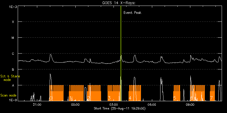 EIS Observation timeline overlay to GOES-Xray curve Code 1" 2" 40" 266" EIS Observations list for this event: STUDY ACRONYM ID DATE OBSERVED DESCRIPTION NOAA# TARGET 0 HH_Flare_180x152f | 24014 | 2011/08/25 21:58:13 | AR 11271 flare obs | 1271 | Flare TIMELINE ID DATE OBSERVED FITS FILE XCEN (+W/-E) YCEN (+N/-S) DUR ----------------------------------------------------------------------------------------------------------------- 24014 | 2011/08/25 21:58:13.000 | eis_l0_20110825_215813.fits.gz | 722.79 | 202.10 | 2m48s 24014 | 2011/08/25 22:01:04.000 | eis_l0_20110825_220104.fits.gz | 722.94 | 202.10 | 2m48s 24014 | 2011/08/25 22:03:54.000 | eis_l0_20110825_220354.fits.gz | 723.17 | 202.17 | 2m49s 24014 | 2011/08/25 22:06:45.000 | eis_l0_20110825_220645.fits.gz | 723.41 | 202.25 | 2m48s 24014 | 2011/08/25 22:09:36.000 | eis_l0_20110825_220936.fits.gz | 723.71 | 202.25 | 2m47s 24014 | 2011/08/25 22:12:26.000 | eis_l0_20110825_221226.fits.gz | 723.87 | 202.40 | 2m49s 24014 | 2011/08/25 22:15:17.000 | eis_l0_20110825_221517.fits.gz | 724.18 | 202.25 | 2m48s 24014 | 2011/08/25 22:18:08.000 | eis_l0_20110825_221808.fits.gz | 724.41 | 202.33 | 2m48s 24014 | 2011/08/25 22:20:59.000 | eis_l0_20110825_222059.fits.gz | 724.72 | 202.40 | 2m48s 24014 | 2011/08/25 22:23:50.000 | eis_l0_20110825_222350.fits.gz | 724.95 | 202.48 | 2m48s 24014 | 2011/08/25 22:26:41.000 | eis_l0_20110825_222641.fits.gz | 725.26 | 202.48 | 2m48s 24014 | 2011/08/25 22:29:31.000 | eis_l0_20110825_222931.fits.gz | 725.41 | 202.56 | 2m48s 24014 | 2011/08/25 22:32:22.000 | eis_l0_20110825_223222.fits.gz | 725.72 | 202.56 | 2m48s 24014 | 2011/08/25 22:35:13.000 | eis_l0_20110825_223513.fits.gz | 725.95 | 202.64 | 2m47s 24014 | 2011/08/25 22:38:03.000 | eis_l0_20110825_223803.fits.gz | 726.26 | 202.64 | 2m48s 24014 | 2011/08/25 22:40:54.000 | eis_l0_20110825_224054.fits.gz | 726.49 | 202.64 | 2m48s 24014 | 2011/08/25 22:43:44.000 | eis_l0_20110825_224344.fits.gz | 726.65 | 202.87 | 2m48s 24014 | 2011/08/25 22:46:35.000 | eis_l0_20110825_224635.fits.gz | 726.88 | 202.87 | 2m48s 24014 | 2011/08/25 22:49:26.000 | eis_l0_20110825_224926.fits.gz | 727.27 | 202.79 | 2m48s 24014 | 2011/08/25 22:52:16.000 | eis_l0_20110825_225216.fits.gz | 727.42 | 202.95 | 2m48s 24014 | 2011/08/25 22:55:07.000 | eis_l0_20110825_225507.fits.gz | 727.73 | 202.87 | 2m48s 24014 | 2011/08/25 22:57:58.000 | eis_l0_20110825_225758.fits.gz | 727.96 | 203.02 | 2m47s 24014 | 2011/08/25 23:00:48.000 | eis_l0_20110825_230048.fits.gz | 728.12 | 203.10 | 2m48s 1 HH_Flare_180x152f | 24015 | 2011/08/25 23:30:13 | AR 11271 flare obs | 1271 | Flare TIMELINE ID DATE OBSERVED FITS FILE XCEN (+W/-E) YCEN (+N/-S) DUR ----------------------------------------------------------------------------------------------------------------- 24015 | 2011/08/25 23:30:13.000 | eis_l0_20110825_233013.fits.gz | 730.74 | 203.41 | 2m48s 24015 | 2011/08/25 23:33:04.000 | eis_l0_20110825_233304.fits.gz | 731.05 | 203.56 | 2m48s 24015 | 2011/08/25 23:35:54.000 | eis_l0_20110825_233554.fits.gz | 731.28 | 203.41 | 2m49s 24015 | 2011/08/25 23:38:46.000 | eis_l0_20110825_233846.fits.gz | 731.52 | 203.64 | 2m47s 24015 | 2011/08/25 23:41:36.000 | eis_l0_20110825_234136.fits.gz | 731.83 | 203.56 | 2m48s 24015 | 2011/08/25 23:44:27.000 | eis_l0_20110825_234427.fits.gz | 732.06 | 203.56 | 2m48s 24015 | 2011/08/25 23:47:17.000 | eis_l0_20110825_234717.fits.gz | 732.29 | 203.56 | 2m48s 24015 | 2011/08/25 23:50:08.000 | eis_l0_20110825_235008.fits.gz | 732.60 | 203.56 | 2m48s 24015 | 2011/08/25 23:52:59.000 | eis_l0_20110825_235259.fits.gz | 732.60 | 203.64 | 2m48s 24015 | 2011/08/25 23:55:50.000 | eis_l0_20110825_235550.fits.gz | 732.91 | 203.87 | 2m48s 24015 | 2011/08/25 23:58:40.000 | eis_l0_20110825_235840.fits.gz | 733.37 | 203.64 | 2m48s 24015 | 2011/08/26 00:01:31.000 | eis_l0_20110826_000131.fits.gz | 733.53 | 203.79 | 2m48s 24015 | 2011/08/26 00:04:22.000 | eis_l0_20110826_000422.fits.gz | 733.76 | 203.79 | 2m47s 24015 | 2011/08/26 00:07:12.000 | eis_l0_20110826_000712.fits.gz | 734.07 | 203.87 | 2m49s 24015 | 2011/08/26 00:10:03.000 | eis_l0_20110826_001003.fits.gz | 734.30 | 203.95 | 2m48s 24015 | 2011/08/26 00:12:54.000 | eis_l0_20110826_001254.fits.gz | 734.53 | 204.10 | 2m47s 24015 | 2011/08/26 00:15:44.000 | eis_l0_20110826_001544.fits.gz | 734.76 | 204.03 | 2m49s 24015 | 2011/08/26 00:18:35.000 | eis_l0_20110826_001835.fits.gz | 734.99 | 204.03 | 2m48s 24015 | 2011/08/26 00:21:26.000 | eis_l0_20110826_002126.fits.gz | 735.30 | 204.10 | 2m48s 24015 | 2011/08/26 00:24:17.000 | eis_l0_20110826_002417.fits.gz | 735.46 | 204.26 | 2m48s 24015 | 2011/08/26 00:27:08.000 | eis_l0_20110826_002708.fits.gz | 735.77 | 204.26 | 2m48s 24015 | 2011/08/26 00:29:59.000 | eis_l0_20110826_002959.fits.gz | 736.00 | 204.18 | 2m48s 24015 | 2011/08/26 00:32:49.000 | eis_l0_20110826_003249.fits.gz | 736.23 | 204.26 | 2m48s 24015 | 2011/08/26 00:35:40.000 | eis_l0_20110826_003540.fits.gz | 736.38 | 204.34 | 2m48s 2 HH_Flare_180x152f | 24016 | 2011/08/26 00:55:13 | AR 11271 flare obs | 1271 | Flare TIMELINE ID DATE OBSERVED FITS FILE XCEN (+W/-E) YCEN (+N/-S) DUR ----------------------------------------------------------------------------------------------------------------- 24016 | 2011/08/26 00:55:13.000 | eis_l0_20110826_005513.fits.gz | 738.16 | 204.57 | 2m49s 24016 | 2011/08/26 00:58:05.000 | eis_l0_20110826_005805.fits.gz | 738.39 | 204.64 | 2m48s 24016 | 2011/08/26 01:00:56.000 | eis_l0_20110826_010056.fits.gz | 738.70 | 204.72 | 2m48s 24016 | 2011/08/26 01:03:47.000 | eis_l0_20110826_010347.fits.gz | 738.93 | 204.72 | 2m48s 24016 | 2011/08/26 01:06:38.000 | eis_l0_20110826_010638.fits.gz | 739.16 | 204.88 | 2m48s 24016 | 2011/08/26 01:09:29.000 | eis_l0_20110826_010929.fits.gz | 739.47 | 204.80 | 2m47s 24016 | 2011/08/26 01:12:19.000 | eis_l0_20110826_011219.fits.gz | 739.70 | 204.88 | 2m48s 24016 | 2011/08/26 01:15:10.000 | eis_l0_20110826_011510.fits.gz | 739.94 | 204.95 | 2m48s 24016 | 2011/08/26 01:18:00.000