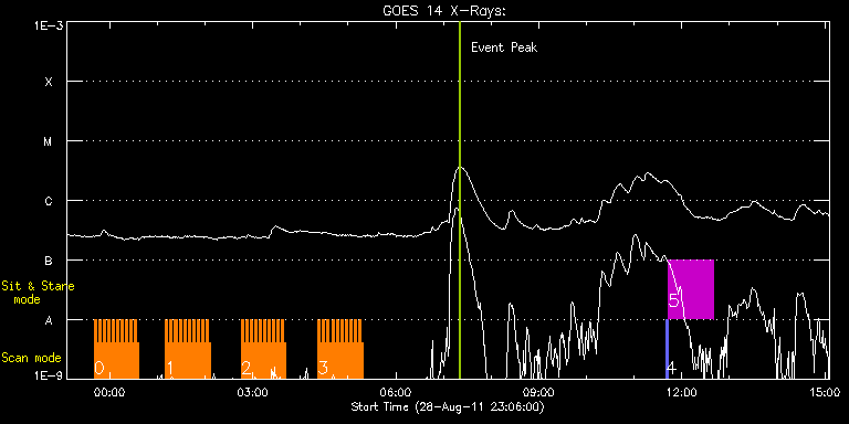 EIS Observation timeline overlay to GOES-Xray curve Code 1" 2" 40" 266" EIS Observations list for this event: STUDY ACRONYM ID DATE OBSERVED DESCRIPTION NOAA# TARGET 0 HH_Flare_180x152f | 24043 | 2011/08/28 23:40:13 | AR 11271 flare obs | 1278 | Flare TIMELINE ID DATE OBSERVED FITS FILE XCEN (+W/-E) YCEN (+N/-S) DUR ----------------------------------------------------------------------------------------------------------------- 24043 | 2011/08/28 23:40:13.000 | eis_l0_20110828_234013.fits.gz | 912.49 | 244.50 | 2m48s 24043 | 2011/08/28 23:43:04.000 | eis_l0_20110828_234304.fits.gz | 912.41 | 244.66 | 2m48s 24043 | 2011/08/28 23:45:55.000 | eis_l0_20110828_234555.fits.gz | 912.49 | 244.58 | 2m48s 24043 | 2011/08/28 23:48:46.000 | eis_l0_20110828_234846.fits.gz | 912.41 | 244.66 | 2m48s 24043 | 2011/08/28 23:51:36.000 | eis_l0_20110828_235136.fits.gz | 912.41 | 244.58 | 2m49s 24043 | 2011/08/28 23:54:27.000 | eis_l0_20110828_235427.fits.gz | 912.49 | 244.43 | 2m48s 24043 | 2011/08/28 23:57:18.000 | eis_l0_20110828_235718.fits.gz | 912.49 | 244.50 | 2m48s 24043 | 2011/08/29 00:00:09.000 | eis_l0_20110829_000009.fits.gz | 912.41 | 244.58 | 2m48s 24043 | 2011/08/29 00:03:00.000 | eis_l0_20110829_000300.fits.gz | 912.41 | 244.66 | 2m48s 24043 | 2011/08/29 00:05:51.000 | eis_l0_20110829_000551.fits.gz | 912.41 | 244.66 | 2m47s 24043 | 2011/08/29 00:08:41.000 | eis_l0_20110829_000841.fits.gz | 912.41 | 244.58 | 2m48s 24043 | 2011/08/29 00:11:32.000 | eis_l0_20110829_001132.fits.gz | 912.33 | 244.58 | 2m48s 24043 | 2011/08/29 00:14:22.000 | eis_l0_20110829_001422.fits.gz | 912.41 | 244.43 | 2m48s 24043 | 2011/08/29 00:17:13.000 | eis_l0_20110829_001713.fits.gz | 912.49 | 244.58 | 2m48s 24043 | 2011/08/29 00:20:04.000 | eis_l0_20110829_002004.fits.gz | 912.41 | 244.58 | 2m48s 24043 | 2011/08/29 00:22:54.000 | eis_l0_20110829_002254.fits.gz | 912.41 | 244.50 | 2m48s 24043 | 2011/08/29 00:25:45.000 | eis_l0_20110829_002545.fits.gz | 912.41 | 244.66 | 2m47s 24043 | 2011/08/29 00:28:35.000 | eis_l0_20110829_002835.fits.gz | 912.49 | 244.58 | 2m48s 24043 | 2011/08/29 00:31:26.000 | eis_l0_20110829_003126.fits.gz | 912.41 | 244.50 | 2m49s 24043 | 2011/08/29 00:34:17.000 | eis_l0_20110829_003417.fits.gz | 912.41 | 244.58 | 2m48s 1 HH_Flare_180x152f | 24044 | 2011/08/29 01:10:13 | AR 11271 flare obs | 1278 | Flare TIMELINE ID DATE OBSERVED FITS FILE XCEN (+W/-E) YCEN (+N/-S) DUR ----------------------------------------------------------------------------------------------------------------- 24044 | 2011/08/29 01:10:13.000 | eis_l0_20110829_011013.fits.gz | 912.49 | 245.66 | 2m48s 24044 | 2011/08/29 01:13:04.000 | eis_l0_20110829_011304.fits.gz | 912.49 | 245.50 | 2m48s 24044 | 2011/08/29 01:15:55.000 | eis_l0_20110829_011555.fits.gz | 912.41 | 245.66 | 2m49s 24044 | 2011/08/29 01:18:46.000 | eis_l0_20110829_011846.fits.gz | 912.49 | 245.43 | 2m49s 24044 | 2011/08/29 01:21:37.000 | eis_l0_20110829_012137.fits.gz | 912.49 | 245.50 | 2m49s 24044 | 2011/08/29 01:24:28.000 | eis_l0_20110829_012428.fits.gz | 912.41 | 245.50 | 2m48s 24044 | 2011/08/29 01:27:19.000 | eis_l0_20110829_012719.fits.gz | 912.41 | 245.58 | 2m48s 24044 | 2011/08/29 01:30:10.000 | eis_l0_20110829_013010.fits.gz | 912.41 | 245.66 | 2m48s 24044 | 2011/08/29 01:33:01.000 | eis_l0_20110829_013301.fits.gz | 912.41 | 245.43 | 2m48s 24044 | 2011/08/29 01:35:51.000 | eis_l0_20110829_013551.fits.gz | 912.49 | 245.43 | 2m49s 24044 | 2011/08/29 01:38:42.000 | eis_l0_20110829_013842.fits.gz | 912.41 | 245.58 | 2m48s 24044 | 2011/08/29 01:41:33.000 | eis_l0_20110829_014133.fits.gz | 912.41 | 245.50 | 2m48s 24044 | 2011/08/29 01:44:24.000 | eis_l0_20110829_014424.fits.gz | 912.49 | 245.58 | 2m49s 24044 | 2011/08/29 01:47:15.000 | eis_l0_20110829_014715.fits.gz | 912.41 | 245.66 | 2m48s 24044 | 2011/08/29 01:50:06.000 | eis_l0_20110829_015006.fits.gz | 912.41 | 245.58 | 2m47s 24044 | 2011/08/29 01:52:56.000 | eis_l0_20110829_015256.fits.gz | 912.49 | 245.58 | 2m48s 24044 | 2011/08/29 01:55:47.000 | eis_l0_20110829_015547.fits.gz | 912.41 | 245.58 | 2m48s 24044 | 2011/08/29 01:58:37.000 | eis_l0_20110829_015837.fits.gz | 912.41 | 245.50 | 2m49s 24044 | 2011/08/29 02:01:29.000 | eis_l0_20110829_020129.fits.gz | 912.41 | 245.66 | 2m47s 24044 | 2011/08/29 02:04:19.000 | eis_l0_20110829_020419.fits.gz | 912.41 | 245.66 | 2m48s 2 HH_Flare_180x152f | 24045 | 2011/08/29 02:45:13 | AR 11271 flare obs | 1278 | Flare TIMELINE ID DATE OBSERVED FITS FILE XCEN (+W/-E) YCEN (+N/-S) DUR ----------------------------------------------------------------------------------------------------------------- 24045 | 2011/08/29 02:45:13.000 | eis_l0_20110829_024513.fits.gz | 912.74 | 244.35 | 2m47s 24045 | 2011/08/29 02:48:03.000 | eis_l0_20110829_024803.fits.gz | 912.66 | 244.50 | 2m48s 24045 | 2011/08/29 02:50:53.000 | eis_l0_20110829_025053.fits.gz | 912.66 | 244.50 | 2m48s 24045 | 2011/08/29 02:53:44.000 | eis_l0_20110829_025344.fits.gz | 912.66 | 244.58 | 2m48s 24045 | 2011/08/29 02:56:35.000 | eis_l0_20110829_025635.fits.gz | 912.81 | 244.43 | 2m48s 24045 | 2011/08/29 02:59:26.000 | eis_l0_20110829_025926.fits.gz | 912.66 | 244.50 | 2m48s 24045 | 2011/08/29 03:02:17.000 | eis_l0_20110829_030217.fits.gz | 912.74 | 244.58 | 2m47s 24045 | 2011/08/29 03:05:07.000 | eis_l0_20110829_030507.fits.gz | 912.74 | 244.58 | 2m48s 24045 | 2011/08/29 03:07:58.000 | eis_l0_20110829_030758.fits.gz | 912.74 | 244.58 | 2m48s 24045 | 2011/08/29 03:10:49.000 | eis_l0_20110829_031049.fits.gz | 912.81 | 244.43 | 2m48s 24045 | 2011/08/29 03:13:40.000 | eis_l0_20110829_031340.fits.gz | 912.74 | 244.58 | 2m47s 24045 | 2011/08/29 03:16:30.000 | eis_l0_20110829_031630.fits.gz | 912.74 | 244.50 | 2m48s 24045 | 2011/08/29 03:19:21.000 | eis_l0_20110829_031921.fits.gz | 912.66 | 244.50 | 2m48s 24045 | 2011/08/29 03:22:12.000 | eis_l0_20110829_032212.fits.gz | 912.74 | 244.58 | 2m47s 24045 | 2011/08/29 03:25:02.000 | eis_l0_20110829_032502.fits.gz | 912.66 | 244.58 | 2m47s 24045 | 2011/08/29 03:27:52.000
