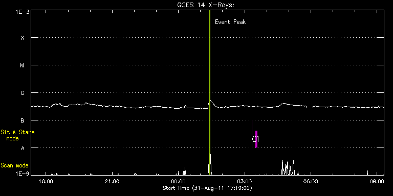 EIS Observation timeline overlay to GOES-Xray curve Code 1" 2" 40" 266" EIS Observations list for this event: STUDY ACRONYM ID DATE OBSERVED DESCRIPTION NOAA# TARGET 0 regcal077 | 24099 | 2011/09/01 03:20:11 | Flatfield, 2 exposures, led 80ms, full | | Engineering TIMELINE ID DATE OBSERVED FITS FILE XCEN (+W/-E) YCEN (+N/-S) DUR ----------------------------------------------------------------------------------------------------------------- 24099 | 2011/09/01 03:20:11.000 | eis_l0_20110901_032011.fits.gz | 145.68 | 68.92 | 4s 1 regcal074 | 24100 | 2011/09/01 03:30:11 | Dark exposures including overscan pixe | | Engineering TIMELINE ID DATE OBSERVED FITS FILE XCEN (+W/-E) YCEN (+N/-S) DUR ----------------------------------------------------------------------------------------------------------------- 24100 | 2011/09/01 03:30:11.000 | eis_l0_20110901_033011.fits.gz | 147.15 | 324.92 | 3m22s : Check study information : Download file : View thumbnails For this event, also check for: