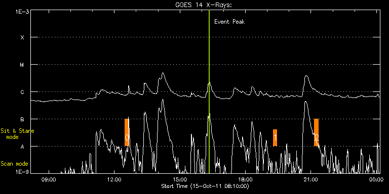 EIS Observation timeline overlay to GOES-Xray curve