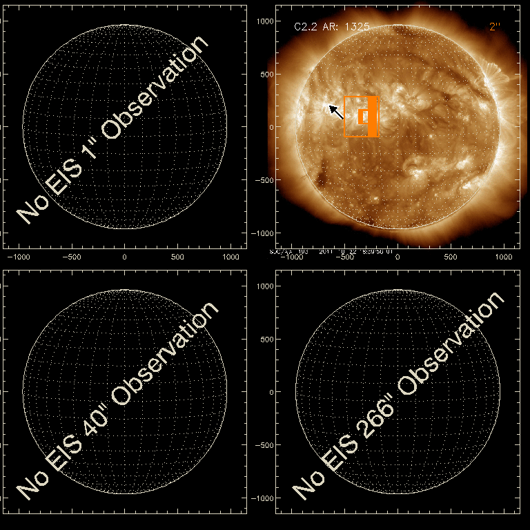 EIS Observation timeline overlay to GOES-Xray curve Code 1" 2" 40" 266" EIS Observations list for this event: STUDY ACRONYM ID DATE OBSERVED DESCRIPTION NOAA# TARGET 0 cam_ar_limb_lite_v2 | 24680 | 2011/10/22 11:19:58 | Limb AR Temperature Diagnostic | 1324 | Active Region TIMELINE ID DATE OBSERVED FITS FILE XCEN (+W/-E) YCEN (+N/-S) DUR ----------------------------------------------------------------------------------------------------------------- 24680 | 2011/10/22 11:19:58.000 | eis_l0_20111022_111958.fits.gz | -339.80 | 92.43 | 2h6m1s 1 BP_response1_2raster | 24671 | 2011/10/22 14:00:41 | HOP 203 - Properties of RBEs with Hino | | Quiet Sun TIMELINE ID DATE OBSERVED FITS FILE XCEN (+W/-E) YCEN (+N/-S) DUR ----------------------------------------------------------------------------------------------------------------- 24671 | 2011/10/22 14:00:41.000 | eis_l0_20111022_140041.fits.gz | -317.03 | 91.81 | 18m2s 24671 | 2011/10/22 14:18:46.000 | eis_l0_20111022_141846.fits.gz | -314.41 | 91.73 | 14m3s 24671 | 2011/10/22 14:33:56.000 | eis_l0_20111022_143356.fits.gz | -312.17 | 91.58 | 2m52s 2 BP_response1_2raster | 24672 | 2011/10/22 15:07:14 | HOP 203 - Properties of RBEs with Hino | | Quiet Sun TIMELINE ID DATE OBSERVED FITS FILE XCEN (+W/-E) YCEN (+N/-S) DUR ----------------------------------------------------------------------------------------------------------------- 24672 | 2011/10/22 15:07:14.000 | eis_l0_20111022_150714.fits.gz | -307.45 | 91.50 | 18m2s 24672 | 2011/10/22 15:25:19.000 | eis_l0_20111022_152519.fits.gz | -304.75 | 91.42 | 18m2s 24672 | 2011/10/22 15:43:24.000 | eis_l0_20111022_154324.fits.gz | -302.12 | 91.35 | 18m2s 24672 | 2011/10/22 16:01:29.000 | eis_l0_20111022_160129.fits.gz | -299.50 | 91.27 | 18m1s 3 BP_response1_2raster | 24673 | 2011/10/22 16:54:14 | HOP 203 - Properties of RBEs with Hino | | Quiet Sun TIMELINE ID DATE OBSERVED FITS FILE XCEN (+W/-E) YCEN (+N/-S) DUR ----------------------------------------------------------------------------------------------------------------- 24673 | 2011/10/22 16:54:14.000 | eis_l0_20111022_165414.fits.gz | -291.85 | 91.12 | 18m2s 24673 | 2011/10/22 17:12:19.000 | eis_l0_20111022_171219.fits.gz | -289.23 | 91.04 | 18m1s 24673 | 2011/10/22 17:30:23.000 | eis_l0_20111022_173023.fits.gz | -286.52 | 90.96 | 18m2s 24673 | 2011/10/22 17:48:28.000 | eis_l0_20111022_174828.fits.gz | -283.89 | 91.04 | 18m1s 4 IUU_SCAN_STEPS_002 | 24689 | 2011/10/22 20:43:04 | Active Region Studies | 1324 | Active Region TIMELINE ID DATE OBSERVED FITS FILE XCEN (+W/-E) YCEN (+N/-S) DUR ----------------------------------------------------------------------------------------------------------------- 24689 | 2011/10/22 20:43:04.000 | eis_l0_20111022_204304.fits.gz | -259.32 | 90.42 | 3m14s 24689 | 2011/10/22 20:46:21.000 | eis_l0_20111022_204621.fits.gz | -258.71 | 90.34 | 5m23s 24689 | 2011/10/22 20:51:48.000 | eis_l0_20111022_205148.fits.gz | -258.01 | 90.42 | 5m23s 24689 | 2011/10/22 20:57:14.000 | eis_l0_20111022_205714.fits.gz | -257.24 | 90.34 | 5m24s 5 IUU_SCAN_STEPS_002 | 24690 | 2011/10/22 21:45:14 | Active Region Studies | 1324 | Active Region TIMELINE ID DATE OBSERVED FITS FILE XCEN (+W/-E) YCEN (+N/-S) DUR ----------------------------------------------------------------------------------------------------------------- 24690 | 2011/10/22 21:45:14.000 | eis_l0_20111022_214514.fits.gz | -250.13 | 90.27 | 5m23s 24690 | 2011/10/22 21:50:40.000 | eis_l0_20111022_215040.fits.gz | -249.28 | 90.19 | 5m24s 24690 | 2011/10/22 21:56:07.000 | eis_l0_20111022_215607.fits.gz | -248.51 | 90.19 | 5m24s 24690 | 2011/10/22 22:01:34.000 | eis_l0_20111022_220134.fits.gz | -247.74 | 90.11 | 5m23s 24690 | 2011/10/22 22:07:01.000 | eis_l0_20111022_220701.fits.gz | -246.96 | 90.19 | 5m23s 24690 | 2011/10/22 22:12:27.000 | eis_l0_20111022_221227.fits.gz | -246.12 | 90.11 | 5m24s 24690 | 2011/10/22 22:17:54.000 | eis_l0_20111022_221754.fits.gz | -245.34 | 90.11 | 5m24s 24690 | 2011/10/22 22:23:21.000 | eis_l0_20111022_222321.fits.gz | -244.49 | 90.03 | 5m23s 24690 | 2011/10/22 22:28:48.000 | eis_l0_20111022_222848.fits.gz | -243.72 | 90.11 | 5m23s 24690 | 2011/10/22 22:34:15.000 | eis_l0_20111022_223415.fits.gz | -242.95 | 90.19 | 5m23s 6 IUU_SCAN_STEPS_002 | 24691 | 2011/10/22 23:32:04 | Active Region Studies | 1324 | Active Region TIMELINE ID DATE OBSERVED FITS FILE XCEN (+W/-E) YCEN (+N/-S) DUR ----------------------------------------------------------------------------------------------------------------- 24691 | 2011/10/22 23:32:04.000 | eis_l0_20111022_233204.fits.gz | -234.30 | 90.03 | 3m57s 24691 | 2011/10/22 23:36:04.000 | eis_l0_20111022_233604.fits.gz | -233.68 | 89.96 | 5m2s 24691 | 2011/10/22 23:41:31.000 | eis_l0_20111022_234131.fits.gz | -232.91 | 89.88 | 5m23s 24691 | 2011/10/22 23:46:58.000 | eis_l0_20111022_234658.fits.gz | -232.13 | 89.96 | 5m23s 24691 | 2011/10/22 23:52:24.000 | eis_l0_20111022_235224.fits.gz | -231.28 | 89.88 | 5m24s 24691 | 2011/10/22 23:57:51.000 | eis_l0_20111022_235751.fits.gz | -230.43 | 89.96 | 5m24s 24691 | 2011/10/23 00:03:18.000 | eis_l0_20111023_000318.fits.gz | -229.74 | 89.96 | 5m23s 24691 | 2011/10/23 00:08:45.000 | eis_l0_20111023_000845.fits.gz | -228.81 | 89.80 | 5m23s 7 IUU_SCAN_STEPS_002 | 24692 | 2011/10/23 00:44:14 | Active Region Studies | 1324 | Active Region TIMELINE ID DATE OBSERVED FITS FILE XCEN (+W/-E) YCEN (+N/-S) DUR ----------------------------------------------------------------------------------------------------------------- 24692 | 2011/10/23 00:44:14.000 | eis_l0_20111023_004414.fits.gz | -223.64 | 89.88 | 5m23s 24692 | 2011/10/23 00:49:40.000 | eis_l0_20111023_004940.fits.gz | -222.79 | 89.73 | 5m24s 24692 | 2011/10/23 00:55:07.000 | eis_l0_20111023_005507.fits.gz | -222.01 | 89.80 | 5m24s 24692 | 2011/10/23 01:00:34.000 | eis_l0_20111023_010034.fits.gz | -221.09 | 89.73 | 5m23s 24692 | 2011/10/23 01:06:01.000 | eis_l0_20111023_010601.fits.gz | -220.31 | 89.73 | 5m23s 24692 | 2011/10/23 01