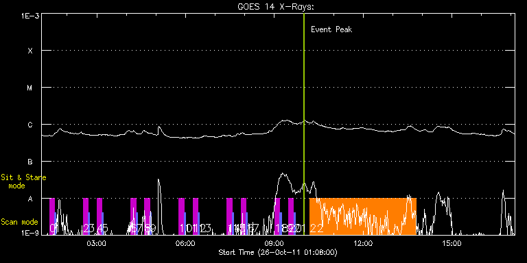 EIS Observation timeline overlay to GOES-Xray curve Code 1" 2" 40" 266" EIS Observations list for this event: STUDY ACRONYM ID DATE OBSERVED DESCRIPTION NOAA# TARGET 0 SK_DEEP_5x512_SLIT1 | 24721 | 2011/10/26 01:24:19 | HOP 79 - Synoptic SOT Irradiance Scans | | Quiet Sun TIMELINE ID DATE OBSERVED FITS FILE XCEN (+W/-E) YCEN (+N/-S) DUR ----------------------------------------------------------------------------------------------------------------- 24721 | 2011/10/26 01:24:19.000 | eis_l0_20111026_012419.fits.gz | -8.87 | -65.54 | 10m8s 1 PRY_slot_contextLITE | 24722 | 2011/10/26 01:34:53 | HOP 79 - Synoptic SOT Irradiance Scans | 1325 | Active Region TIMELINE ID DATE OBSERVED FITS FILE XCEN (+W/-E) YCEN (+N/-S) DUR ----------------------------------------------------------------------------------------------------------------- 24722 | 2011/10/26 01:34:53.000 | eis_l0_20111026_013453.fits.gz | -24.17 | -65.62 | 2m56s 2 SK_DEEP_5x512_SLIT1 | 24723 | 2011/10/26 02:32:20 | HOP 79 - Synoptic SOT Irradiance Scans | | Quiet Sun TIMELINE ID DATE OBSERVED FITS FILE XCEN (+W/-E) YCEN (+N/-S) DUR ----------------------------------------------------------------------------------------------------------------- 24723 | 2011/10/26 02:32:20.000 | eis_l0_20111026_023220.fits.gz | -9.03 | 24.37 | 10m8s 3 PRY_slot_contextLITE | 24724 | 2011/10/26 02:42:54 | HOP 79 - Synoptic SOT Irradiance Scans | 1325 | Active Region TIMELINE ID DATE OBSERVED FITS FILE XCEN (+W/-E) YCEN (+N/-S) DUR ----------------------------------------------------------------------------------------------------------------- 24724 | 2011/10/26 02:42:54.000 | eis_l0_20111026_024254.fits.gz | -24.17 | 24.37 | 2m56s 4 SK_DEEP_5x512_SLIT1 | 24725 | 2011/10/26 03:00:19 | HOP 79 - Synoptic SOT Irradiance Scans | | Quiet Sun TIMELINE ID DATE OBSERVED FITS FILE XCEN (+W/-E) YCEN (+N/-S) DUR ----------------------------------------------------------------------------------------------------------------- 24725 | 2011/10/26 03:00:19.000 | eis_l0_20111026_030019.fits.gz | -9.03 | 124.49 | 10m8s 5 PRY_slot_contextLITE | 24726 | 2011/10/26 03:10:53 | HOP 79 - Synoptic SOT Irradiance Scans | 1325 | Active Region TIMELINE ID DATE OBSERVED FITS FILE XCEN (+W/-E) YCEN (+N/-S) DUR ----------------------------------------------------------------------------------------------------------------- 24726 | 2011/10/26 03:10:53.000 | eis_l0_20111026_031053.fits.gz | -24.25 | 124.49 | 2m56s 6 SK_DEEP_5x512_SLIT1 | 24727 | 2011/10/26 04:09:20 | HOP 79 - Synoptic SOT Irradiance Scans | | Quiet Sun TIMELINE ID DATE OBSERVED FITS FILE XCEN (+W/-E) YCEN (+N/-S) DUR ----------------------------------------------------------------------------------------------------------------- 24727 | 2011/10/26 04:09:20.000 | eis_l0_20111026_040920.fits.gz | -9.10 | 224.52 | 10m8s 7 PRY_slot_contextLITE | 24728 | 2011/10/26 04:19:53 | HOP 79 - Synoptic SOT Irradiance Scans | 1325 | Active Region TIMELINE ID DATE OBSERVED FITS FILE XCEN (+W/-E) YCEN (+N/-S) DUR ----------------------------------------------------------------------------------------------------------------- 24728 | 2011/10/26 04:19:53.000 | eis_l0_20111026_041953.fits.gz | -24.25 | 224.45 | 2m57s 8 SK_DEEP_5x512_SLIT1 | 24729 | 2011/10/26 04:37:19 | HOP 79 - Synoptic SOT Irradiance Scans | | Quiet Sun TIMELINE ID DATE OBSERVED FITS FILE XCEN (+W/-E) YCEN (+N/-S) DUR ----------------------------------------------------------------------------------------------------------------- 24729 | 2011/10/26 04:37:19.000 | eis_l0_20111026_043719.fits.gz | -9.03 | 324.64 | 10m8s 9 PRY_slot_contextLITE | 24730 | 2011/10/26 04:47:52 | HOP 79 - Synoptic SOT Irradiance Scans | 1325 | Active Region TIMELINE ID DATE OBSERVED FITS FILE XCEN (+W/-E) YCEN (+N/-S) DUR ----------------------------------------------------------------------------------------------------------------- 24730 | 2011/10/26 04:47:52.000 | eis_l0_20111026_044752.fits.gz | -24.25 | 324.56 | 2m57s 10 SK_DEEP_5x512_SLIT1 | 24731 | 2011/10/26 05:46:50 | HOP 79 - Synoptic SOT Irradiance Scans | | Quiet Sun TIMELINE ID DATE OBSERVED FITS FILE XCEN (+W/-E) YCEN (+N/-S) DUR ----------------------------------------------------------------------------------------------------------------- 24731 | 2011/10/26 05:46:50.000 | eis_l0_20111026_054650.fits.gz | -9.03 | 424.67 | 10m7s 11 PRY_slot_contextLITE | 24732 | 2011/10/26 05:57:23 | HOP 79 - Synoptic SOT Irradiance Scans | 1325 | Active Region TIMELINE ID DATE OBSERVED FITS FILE XCEN (+W/-E) YCEN (+N/-S) DUR ----------------------------------------------------------------------------------------------------------------- 24732 | 2011/10/26 05:57:23.000 | eis_l0_20111026_055723.fits.gz | -24.17 | 424.67 | 2m56s 12 SK_DEEP_5x512_SLIT1 | 24733 | 2011/10/26 06:14:49 | HOP 79 - Synoptic SOT Irradiance Scans | | Quiet Sun TIMELINE ID DATE OBSERVED FITS FILE XCEN (+W/-E) YCEN (+N/-S) DUR ----------------------------------------------------------------------------------------------------------------- 24733 | 2011/10/26 06:14:49.000 | eis_l0_20111026_061449.fits.gz | -9.03 | 524.47 | 10m8s 13 PRY_slot_contextLITE | 24734 | 2011/10/26 06:25:23 | HOP 79 - Synoptic SOT Irradiance Scans | | Active Region TIMELINE ID DATE OBSERVED FITS FILE XCEN (+W/-E) YCEN (+N/-S) DUR ----------------------------------------------------------------------------------------------------------------- 24734 | 2011/10/26 06:25:23.000 | eis_l0_20111026_062523.fits.gz | -24.17 | 524.40 | 2m56s 14 SK_DEEP_5x512_SLIT1 | 24735 | 2011/10/26 07:24:20 | HOP 79 - Synoptic SOT Irradiance Scans | | Quiet Sun TIMELINE ID DATE OBSERVED FITS FILE XCEN (+W/-E) YCEN (+N/-S) DUR ----------------------------------------------------------------------------------------------------------------- 24735 | 2011/10/26 07:24:20.000 | eis_l0_20111026_072420.fits.gz | -9.03 | 624.59 | 10m8s 15 PRY_slot_contextLITE | 24736 | 2011/10/26 07:34:53 | HOP 79 - Synoptic SOT Irradiance Scans | | Activ