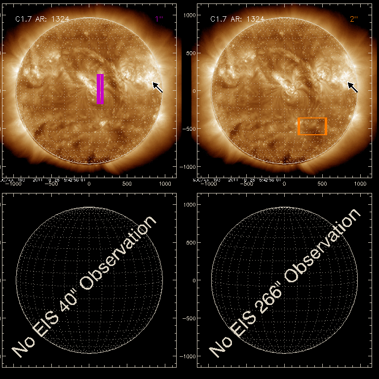 EIS Observation timeline overlay to GOES-Xray curve Code 1" 2" 40" 266" EIS Observations list for this event: STUDY ACRONYM ID DATE OBSERVED DESCRIPTION NOAA# TARGET 0 dhb_polar_scan_Q90 | 24750 | 2011/10/28 10:03:27 | Interchange Reconnection at CH Boundar | | Quiet Sun TIMELINE ID DATE OBSERVED FITS FILE XCEN (+W/-E) YCEN (+N/-S) DUR ----------------------------------------------------------------------------------------------------------------- 24750 | 2011/10/28 10:03:27.000 | eis_l0_20111028_100327.fits.gz | 361.06 | -473.95 | 50m9s 24750 | 2011/10/28 10:54:49.000 | eis_l0_20111028_105449.fits.gz | 367.48 | -473.64 | 1h29m36s 24750 | 2011/10/28 12:25:38.000 | eis_l0_20111028_122538.fits.gz | 378.75 | -473.10 | 1h12m51s 1 YK_AR_50x384 | 24751 | 2011/10/28 14:03:26 | Driving Mechanism of Super-Sonic Flows | 1330 | Active Region TIMELINE ID DATE OBSERVED FITS FILE XCEN (+W/-E) YCEN (+N/-S) DUR ----------------------------------------------------------------------------------------------------------------- 24751 | 2011/10/28 14:03:26.000 | eis_l0_20111028_140326.fits.gz | 134.42 | 15.34 | 16m57s 24751 | 2011/10/28 14:21:30.000 | eis_l0_20111028_142130.fits.gz | 137.36 | 15.26 | 20s 24751 | 2011/10/28 14:22:58.000 | eis_l0_20111028_142258.fits.gz | 137.59 | 15.41 | 17m19s 24751 | 2011/10/28 14:40:21.000 | eis_l0_20111028_144021.fits.gz | 140.29 | 15.49 | 18m23s 24751 | 2011/10/28 14:58:47.000 | eis_l0_20111028_145847.fits.gz | 143.08 | 15.64 | 18m24s 24751 | 2011/10/28 15:17:15.000 | eis_l0_20111028_151715.fits.gz | 145.93 | 15.64 | 18m24s 24751 | 2011/10/28 15:35:42.000 | eis_l0_20111028_153542.fits.gz | 148.79 | 15.49 | 15m52s 24751 | 2011/10/28 15:51:57.000 | eis_l0_20111028_155157.fits.gz | 151.26 | 15.72 | 2m9s 24751 | 2011/10/28 15:54:09.000 | eis_l0_20111028_155409.fits.gz | 151.65 | 15.64 | 18m24s 24751 | 2011/10/28 16:12:36.000 | eis_l0_20111028_161236.fits.gz | 154.43 | 15.72 | 18m24s 24751 | 2011/10/28 16:31:03.000 | eis_l0_20111028_163103.fits.gz | 157.37 | 15.80 | 18m24s 24751 | 2011/10/28 16:49:30.000 | eis_l0_20111028_164930.fits.gz | 160.15 | 15.88 | 18m24s 24751 | 2011/10/28 17:07:57.000 | eis_l0_20111028_170757.fits.gz | 163.01 | 15.95 | 18m24s : Check study information : Download file : View thumbnails For this event, also check for: