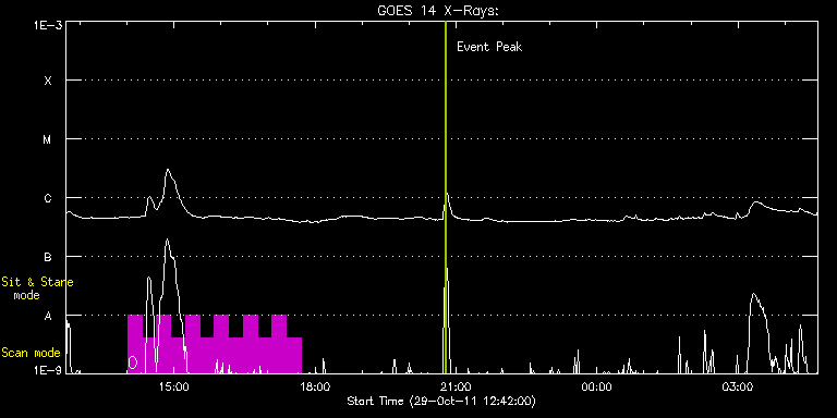 EIS Observation timeline overlay to GOES-Xray curve Code 1" 2" 40" 266" EIS Observations list for this event: STUDY ACRONYM ID DATE OBSERVED DESCRIPTION NOAA# TARGET 0 YK_AR_50x384 | 24801 | 2011/10/29 14:00:41 | Driving Mechanism of Super-Sonic Flows | 1330 | Active Region TIMELINE ID DATE OBSERVED FITS FILE XCEN (+W/-E) YCEN (+N/-S) DUR ----------------------------------------------------------------------------------------------------------------- 24801 | 2011/10/29 14:00:41.000 | eis_l0_20111029_140041.fits.gz | 357.52 | 12.09 | 18m24s 24801 | 2011/10/29 14:19:09.000 | eis_l0_20111029_141909.fits.gz | 360.14 | 12.17 | 18m23s 24801 | 2011/10/29 14:37:36.000 | eis_l0_20111029_143736.fits.gz | 362.77 | 12.17 | 18m24s 24801 | 2011/10/29 14:56:03.000 | eis_l0_20111029_145603.fits.gz | 365.63 | 12.25 | 18m23s 24801 | 2011/10/29 15:14:30.000 | eis_l0_20111029_151430.fits.gz | 368.17 | 12.48 | 18m23s 24801 | 2011/10/29 15:32:57.000 | eis_l0_20111029_153257.fits.gz | 370.96 | 12.55 | 18m24s 24801 | 2011/10/29 15:51:24.000 | eis_l0_20111029_155124.fits.gz | 373.51 | 12.71 | 18m24s 24801 | 2011/10/29 16:09:51.000 | eis_l0_20111029_160951.fits.gz | 376.21 | 12.79 | 18m23s 24801 | 2011/10/29 16:28:18.000 | eis_l0_20111029_162818.fits.gz | 378.76 | 12.86 | 18m24s 24801 | 2011/10/29 16:46:45.000 | eis_l0_20111029_164645.fits.gz | 381.46 | 12.94 | 18m24s 24801 | 2011/10/29 17:05:12.000 | eis_l0_20111029_170512.fits.gz | 384.17 | 13.02 | 18m24s 24801 | 2011/10/29 17:23:39.000 | eis_l0_20111029_172339.fits.gz | 386.79 | 13.25 | 18m24s : Check study information : Download file : View thumbnails For this event, also check for:
