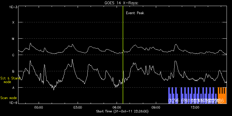 EIS Observation timeline overlay to GOES-Xray curve Code 1" 2" 40" 266" EIS Observations list for this event: STUDY ACRONYM ID DATE OBSERVED DESCRIPTION NOAA# TARGET 0 full_sun_slot_scan_1 | 24828 | 2011/11/01 09:57:20 | Multi-Temperature Full Disc Slot Scans | 1330 | Quiet Sun TIMELINE ID DATE OBSERVED FITS FILE XCEN (+W/-E) YCEN (+N/-S) DUR ----------------------------------------------------------------------------------------------------------------- 24828 | 2011/11/01 09:57:20.000 | eis_l0_20111101_095720.fits.gz | 920.72 | 185.58 | 5m28s 1 full_sun_slot_scan_1 | 24829 | 2011/11/01 10:02:53 | Multi-Temperature Full Disc Slot Scans | | Quiet Sun TIMELINE ID DATE OBSERVED FITS FILE XCEN (+W/-E) YCEN (+N/-S) DUR ----------------------------------------------------------------------------------------------------------------- 24829 | 2011/11/01 10:02:53.000 | eis_l0_20111101_100253.fits.gz | 920.72 | -286.50 | 5m26s 2 full_sun_slot_scan_1 | 24830 | 2011/11/01 10:13:13 | Multi-Temperature Full Disc Slot Scans | 1333 | Quiet Sun TIMELINE ID DATE OBSERVED FITS FILE XCEN (+W/-E) YCEN (+N/-S) DUR ----------------------------------------------------------------------------------------------------------------- 24830 | 2011/11/01 10:13:13.000 | eis_l0_20111101_101313.fits.gz | 452.75 | 185.42 | 5m27s 3 full_sun_slot_scan_1 | 24831 | 2011/11/01 10:18:45 | Multi-Temperature Full Disc Slot Scans | | Quiet Sun TIMELINE ID DATE OBSERVED FITS FILE XCEN (+W/-E) YCEN (+N/-S) DUR ----------------------------------------------------------------------------------------------------------------- 24831 | 2011/11/01 10:18:45.000 | eis_l0_20111101_101845.fits.gz | 452.68 | -286.42 | 5m27s 4 full_sun_slot_scan_1 | 24832 | 2011/11/01 10:29:13 | Multi-Temperature Full Disc Slot Scans | 1332 | Quiet Sun TIMELINE ID DATE OBSERVED FITS FILE XCEN (+W/-E) YCEN (+N/-S) DUR ----------------------------------------------------------------------------------------------------------------- 24832 | 2011/11/01 10:29:13.000 | eis_l0_20111101_102913.fits.gz | -15.37 | 185.58 | 5m27s 5 full_sun_slot_scan_1 | 24833 | 2011/11/01 10:34:46 | Multi-Temperature Full Disc Slot Scans | | Quiet Sun TIMELINE ID DATE OBSERVED FITS FILE XCEN (+W/-E) YCEN (+N/-S) DUR ----------------------------------------------------------------------------------------------------------------- 24833 | 2011/11/01 10:34:46.000 | eis_l0_20111101_103446.fits.gz | -15.21 | -286.42 | 5m26s 6 full_sun_slot_scan_1 | 24834 | 2011/11/01 10:54:43 | Multi-Temperature Full Disc Slot Scans | 1335 | Quiet Sun TIMELINE ID DATE OBSERVED FITS FILE XCEN (+W/-E) YCEN (+N/-S) DUR ----------------------------------------------------------------------------------------------------------------- 24834 | 2011/11/01 10:54:43.000 | eis_l0_20111101_105443.fits.gz | -483.26 | 185.50 | 5m28s 7 full_sun_slot_scan_1 | 24835 | 2011/11/01 11:00:16 | Multi-Temperature Full Disc Slot Scans | | Quiet Sun TIMELINE ID DATE OBSERVED FITS FILE XCEN (+W/-E) YCEN (+N/-S) DUR ----------------------------------------------------------------------------------------------------------------- 24835 | 2011/11/01 11:00:16.000 | eis_l0_20111101_110016.fits.gz | -483.26 | -286.42 | 5m27s 8 full_sun_slot_scan_1 | 24836 | 2011/11/01 11:10:43 | Multi-Temperature Full Disc Slot Scans | | Quiet Sun TIMELINE ID DATE OBSERVED FITS FILE XCEN (+W/-E) YCEN (+N/-S) DUR ----------------------------------------------------------------------------------------------------------------- 24836 | 2011/11/01 11:10:43.000 | eis_l0_20111101_111043.fits.gz | -9884.69 | -9777.20 | 5m28s 9 full_sun_slot_scan_1 | 24837 | 2011/11/01 11:16:16 | Multi-Temperature Full Disc Slot Scans | | Quiet Sun TIMELINE ID DATE OBSERVED FITS FILE XCEN (+W/-E) YCEN (+N/-S) DUR ----------------------------------------------------------------------------------------------------------------- 24837 | 2011/11/01 11:16:16.000 | eis_l0_20111101_111616.fits.gz | -9884.69 | -10249.20 | 5m27s 10 full_sun_slot_scan_1 | 24838 | 2011/11/01 11:26:43 | Multi-Temperature Full Disc Slot Scans | | Quiet Sun TIMELINE ID DATE OBSERVED FITS FILE XCEN (+W/-E) YCEN (+N/-S) DUR ----------------------------------------------------------------------------------------------------------------- 24838 | 2011/11/01 11:26:43.000 | eis_l0_20111101_112643.fits.gz | 760.97 | 655.63 | 5m28s 11 full_sun_slot_scan_1 | 24839 | 2011/11/01 11:36:43 | Multi-Temperature Full Disc Slot Scans | | Quiet Sun TIMELINE ID DATE OBSERVED FITS FILE XCEN (+W/-E) YCEN (+N/-S) DUR ----------------------------------------------------------------------------------------------------------------- 24839 | 2011/11/01 11:36:43.000 | eis_l0_20111101_113643.fits.gz | 395.82 | 1032.67 | 5m27s 12 full_sun_slot_scan_1 | 24840 | 2011/11/01 11:42:15 | Multi-Temperature Full Disc Slot Scans | 1332 | Quiet Sun TIMELINE ID DATE OBSERVED FITS FILE XCEN (+W/-E) YCEN (+N/-S) DUR ----------------------------------------------------------------------------------------------------------------- 24840 | 2011/11/01 11:42:15.000 | eis_l0_20111101_114215.fits.gz | 395.82 | 560.52 | 5m27s 13 full_sun_slot_scan_1 | 24841 | 2011/11/01 11:52:43 | Multi-Temperature Full Disc Slot Scans | | Quiet Sun TIMELINE ID DATE OBSERVED FITS FILE XCEN (+W/-E) YCEN (+N/-S) DUR ----------------------------------------------------------------------------------------------------------------- 24841 | 2011/11/01 11:52:43.000 | eis_l0_20111101_115243.fits.gz | -15.29 | 1126.61 | 5m27s 14 full_sun_slot_scan_1 | 24842 | 2011/11/01 11:58:15 | Multi-Temperature Full Disc Slot Scans | 1332 | Quiet Sun TIMELINE ID DATE OBSERVED FITS FILE XCEN (+W/-E) YCEN (+N/-S) DUR ----------------------------------------------------------------------------------------------------------------- 24842 | 2011/11/01 11:58:15.000 | eis_l0_20111101_115815.fits.gz | -15.29 | 654.61 | 5m27s 15 full_sun_slot_scan_1 | 24843 | 2011/11/01 12:08:43 | Multi-Temperature Full Disc Slot Scans | 