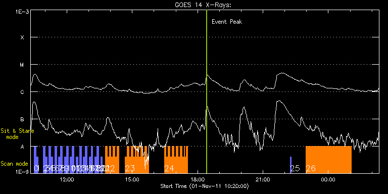 EIS Observation timeline overlay to GOES-Xray curve Code 1" 2" 40" 266" EIS Observations list for this event: STUDY ACRONYM ID DATE OBSERVED DESCRIPTION NOAA# TARGET 0 full_sun_slot_scan_1 | 24832 | 2011/11/01 10:29:13 | Multi-Temperature Full Disc Slot Scans | 1332 | Quiet Sun TIMELINE ID DATE OBSERVED FITS FILE XCEN (+W/-E) YCEN (+N/-S) DUR ----------------------------------------------------------------------------------------------------------------- 24832 | 2011/11/01 10:29:13.000 | eis_l0_20111101_102913.fits.gz | -15.37 | 185.58 | 5m27s 1 full_sun_slot_scan_1 | 24833 | 2011/11/01 10:34:46 | Multi-Temperature Full Disc Slot Scans | | Quiet Sun TIMELINE ID DATE OBSERVED FITS FILE XCEN (+W/-E) YCEN (+N/-S) DUR ----------------------------------------------------------------------------------------------------------------- 24833 | 2011/11/01 10:34:46.000 | eis_l0_20111101_103446.fits.gz | -15.21 | -286.42 | 5m26s 2 full_sun_slot_scan_1 | 24834 | 2011/11/01 10:54:43 | Multi-Temperature Full Disc Slot Scans | 1335 | Quiet Sun TIMELINE ID DATE OBSERVED FITS FILE XCEN (+W/-E) YCEN (+N/-S) DUR ----------------------------------------------------------------------------------------------------------------- 24834 | 2011/11/01 10:54:43.000 | eis_l0_20111101_105443.fits.gz | -483.26 | 185.50 | 5m28s 3 full_sun_slot_scan_1 | 24835 | 2011/11/01 11:00:16 | Multi-Temperature Full Disc Slot Scans | | Quiet Sun TIMELINE ID DATE OBSERVED FITS FILE XCEN (+W/-E) YCEN (+N/-S) DUR ----------------------------------------------------------------------------------------------------------------- 24835 | 2011/11/01 11:00:16.000 | eis_l0_20111101_110016.fits.gz | -483.26 | -286.42 | 5m27s 4 full_sun_slot_scan_1 | 24836 | 2011/11/01 11:10:43 | Multi-Temperature Full Disc Slot Scans | | Quiet Sun TIMELINE ID DATE OBSERVED FITS FILE XCEN (+W/-E) YCEN (+N/-S) DUR ----------------------------------------------------------------------------------------------------------------- 24836 | 2011/11/01 11:10:43.000 | eis_l0_20111101_111043.fits.gz | -9884.69 | -9777.20 | 5m28s 5 full_sun_slot_scan_1 | 24837 | 2011/11/01 11:16:16 | Multi-Temperature Full Disc Slot Scans | | Quiet Sun TIMELINE ID DATE OBSERVED FITS FILE XCEN (+W/-E) YCEN (+N/-S) DUR ----------------------------------------------------------------------------------------------------------------- 24837 | 2011/11/01 11:16:16.000 | eis_l0_20111101_111616.fits.gz | -9884.69 | -10249.20 | 5m27s 6 full_sun_slot_scan_1 | 24838 | 2011/11/01 11:26:43 | Multi-Temperature Full Disc Slot Scans | | Quiet Sun TIMELINE ID DATE OBSERVED FITS FILE XCEN (+W/-E) YCEN (+N/-S) DUR ----------------------------------------------------------------------------------------------------------------- 24838 | 2011/11/01 11:26:43.000 | eis_l0_20111101_112643.fits.gz | 760.97 | 655.63 | 5m28s 7 full_sun_slot_scan_1 | 24839 | 2011/11/01 11:36:43 | Multi-Temperature Full Disc Slot Scans | | Quiet Sun TIMELINE ID DATE OBSERVED FITS FILE XCEN (+W/-E) YCEN (+N/-S) DUR ----------------------------------------------------------------------------------------------------------------- 24839 | 2011/11/01 11:36:43.000 | eis_l0_20111101_113643.fits.gz | 395.82 | 1032.67 | 5m27s 8 full_sun_slot_scan_1 | 24840 | 2011/11/01 11:42:15 | Multi-Temperature Full Disc Slot Scans | 1332 | Quiet Sun TIMELINE ID DATE OBSERVED FITS FILE XCEN (+W/-E) YCEN (+N/-S) DUR ----------------------------------------------------------------------------------------------------------------- 24840 | 2011/11/01 11:42:15.000 | eis_l0_20111101_114215.fits.gz | 395.82 | 560.52 | 5m27s 9 full_sun_slot_scan_1 | 24841 | 2011/11/01 11:52:43 | Multi-Temperature Full Disc Slot Scans | | Quiet Sun TIMELINE ID DATE OBSERVED FITS FILE XCEN (+W/-E) YCEN (+N/-S) DUR ----------------------------------------------------------------------------------------------------------------- 24841 | 2011/11/01 11:52:43.000 | eis_l0_20111101_115243.fits.gz | -15.29 | 1126.61 | 5m27s 10 full_sun_slot_scan_1 | 24842 | 2011/11/01 11:58:15 | Multi-Temperature Full Disc Slot Scans | 1332 | Quiet Sun TIMELINE ID DATE OBSERVED FITS FILE XCEN (+W/-E) YCEN (+N/-S) DUR ----------------------------------------------------------------------------------------------------------------- 24842 | 2011/11/01 11:58:15.000 | eis_l0_20111101_115815.fits.gz | -15.29 | 654.61 | 5m27s 11 full_sun_slot_scan_1 | 24843 | 2011/11/01 12:08:43 | Multi-Temperature Full Disc Slot Scans | | Quiet Sun TIMELINE ID DATE OBSERVED FITS FILE XCEN (+W/-E) YCEN (+N/-S) DUR ----------------------------------------------------------------------------------------------------------------- 24843 | 2011/11/01 12:08:43.000 | eis_l0_20111101_120843.fits.gz | -426.48 | 1032.60 | 5m27s 12 full_sun_slot_scan_1 | 24844 | 2011/11/01 12:14:16 | Multi-Temperature Full Disc Slot Scans | | Quiet Sun TIMELINE ID DATE OBSERVED FITS FILE XCEN (+W/-E) YCEN (+N/-S) DUR ----------------------------------------------------------------------------------------------------------------- 24844 | 2011/11/01 12:14:16.000 | eis_l0_20111101_121416.fits.gz | -426.40 | 560.75 | 5m26s 13 full_sun_slot_scan_1 | 24845 | 2011/11/01 12:24:43 | Multi-Temperature Full Disc Slot Scans | | Quiet Sun TIMELINE ID DATE OBSERVED FITS FILE XCEN (+W/-E) YCEN (+N/-S) DUR ----------------------------------------------------------------------------------------------------------------- 24845 | 2011/11/01 12:24:43.000 | eis_l0_20111101_122443.fits.gz | -830.25 | 655.55 | 5m28s 14 full_sun_slot_scan_1 | 24846 | 2011/11/01 12:34:43 | Multi-Temperature Full Disc Slot Scans | | Quiet Sun TIMELINE ID DATE OBSERVED FITS FILE XCEN (+W/-E) YCEN (+N/-S) DUR ----------------------------------------------------------------------------------------------------------------- 24846 | 2011/11/01 12:34:43.000 | eis_l0_20111101_123443.fits.gz | 798.21 | -757.09 | 5m27s 15 full_sun_slot_scan_1 | 24847 | 2011/11/01 12:44:43 | Multi-Temperature Full Disc Slot Scans | | Quiet