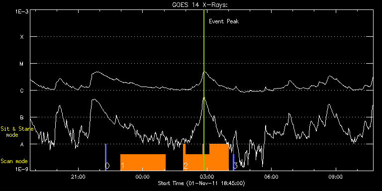 EIS Observation timeline overlay to GOES-Xray curve Code 1" 2" 40" 266" EIS Observations list for this event: STUDY ACRONYM ID DATE OBSERVED DESCRIPTION NOAA# TARGET 0 PRY_slot_context_v3 | 24881 | 2011/11/01 22:14:47 | Limb Active Region Study - Context | | Active Region TIMELINE ID DATE OBSERVED FITS FILE XCEN (+W/-E) YCEN (+N/-S) DUR ----------------------------------------------------------------------------------------------------------------- 24881 | 2011/11/01 22:14:47.000 | eis_l0_20111101_221447.fits.gz | -9884.69 | -9963.20 | 2m56s 1 cam_ar_limb_lite_v2 | 24879 | 2011/11/01 22:58:03 | Limb Active Region Study - Temperature | | Active Region TIMELINE ID DATE OBSERVED FITS FILE XCEN (+W/-E) YCEN (+N/-S) DUR ----------------------------------------------------------------------------------------------------------------- 24879 | 2011/11/01 22:58:03.000 | eis_l0_20111101_225803.fits.gz | -9869.70 | -9963.20 | 2h6m1s 2 cam_ar_limb_lite_v2 | 24876 | 2011/11/02 01:53:36 | Limb Active Region Study - Temperature | | Active Region TIMELINE ID DATE OBSERVED FITS FILE XCEN (+W/-E) YCEN (+N/-S) DUR ----------------------------------------------------------------------------------------------------------------- 24876 | 2011/11/02 01:53:36.000 | eis_l0_20111102_015336.fits.gz | -9869.70 | -9963.20 | 5m25s 24876 | 2011/11/02 01:59:03.000 | eis_l0_20111102_015903.fits.gz | -9869.70 | -9963.20 | 48m13s 24876 | 2011/11/02 02:48:04.000 | eis_l0_20111102_024804.fits.gz | -9869.70 | -9963.20 | 3m5s 24876 | 2011/11/02 02:51:11.000 | eis_l0_20111102_025111.fits.gz | -9869.70 | -9963.20 | 16m18s 24876 | 2011/11/02 03:07:31.000 | eis_l0_20111102_030731.fits.gz | -9869.70 | -9963.20 | 52m6s 3 PRY_slot_context_v3 | 24880 | 2011/11/02 04:13:01 | Limb Active Region Study - Context | | Active Region TIMELINE ID DATE OBSERVED FITS FILE XCEN (+W/-E) YCEN (+N/-S) DUR ----------------------------------------------------------------------------------------------------------------- 24880 | 2011/11/02 04:13:01.000 | eis_l0_20111102_041301.fits.gz | -9884.69 | -9963.20 | 10s 24880 | 2011/11/02 04:13:37.000 | eis_l0_20111102_041337.fits.gz | -9884.69 | -9963.20 | 46s 24880 | 2011/11/02 04:14:36.000 | eis_l0_20111102_041436.fits.gz | -9884.69 | -9963.20 | 1m21s : Check study information : Download file : View thumbnails For this event, also check for:
