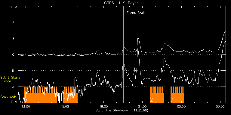 EIS Observation timeline overlay to GOES-Xray curve Code 1" 2" 40" 266" EIS Observations list for this event: STUDY ACRONYM ID DATE OBSERVED DESCRIPTION NOAA# TARGET 0 IUU_SCAN_STEPS_002 | 24903 | 2011/11/04 11:52:34 | Active Region Studies - Dynamics | 1339 | Active Region TIMELINE ID DATE OBSERVED FITS FILE XCEN (+W/-E) YCEN (+N/-S) DUR ----------------------------------------------------------------------------------------------------------------- 24903 | 2011/11/04 11:52:34.000 | eis_l0_20111104_115234.fits.gz | -746.76 | 266.62 | 5m24s 24903 | 2011/11/04 11:58:01.000 | eis_l0_20111104_115801.fits.gz | -746.22 | 266.39 | 5m23s 24903 | 2011/11/04 12:03:28.000 | eis_l0_20111104_120328.fits.gz | -745.83 | 266.39 | 5m23s 24903 | 2011/11/04 12:08:54.000 | eis_l0_20111104_120854.fits.gz | -745.37 | 266.39 | 5m24s 24903 | 2011/11/04 12:14:21.000 | eis_l0_20111104_121421.fits.gz | -744.90 | 266.39 | 42s 24903 | 2011/11/04 12:15:26.000 | eis_l0_20111104_121526.fits.gz | -744.75 | 266.31 | 4m19s 24903 | 2011/11/04 12:19:48.000 | eis_l0_20111104_121948.fits.gz | -744.36 | 266.31 | 5m23s 24903 | 2011/11/04 12:25:15.000 | eis_l0_20111104_122515.fits.gz | -743.90 | 266.31 | 5m23s 24903 | 2011/11/04 12:30:42.000 | eis_l0_20111104_123042.fits.gz | -743.51 | 266.31 | 5m23s 24903 | 2011/11/04 12:36:08.000 | eis_l0_20111104_123608.fits.gz | -743.05 | 266.16 | 5m24s 24903 | 2011/11/04 12:41:35.000 | eis_l0_20111104_124135.fits.gz | -742.59 | 266.31 | 5m23s 24903 | 2011/11/04 12:47:02.000 | eis_l0_20111104_124702.fits.gz | -742.12 | 266.16 | 5m23s 24903 | 2011/11/04 12:52:29.000 | eis_l0_20111104_125229.fits.gz | -741.58 | 266.16 | 5m23s 24903 | 2011/11/04 12:57:55.000 | eis_l0_20111104_125755.fits.gz | -741.20 | 266.16 | 5m24s 24903 | 2011/11/04 13:03:22.000 | eis_l0_20111104_130322.fits.gz | -740.65 | 266.00 | 5m24s 24903 | 2011/11/04 13:08:49.000 | eis_l0_20111104_130849.fits.gz | -740.19 | 266.08 | 5m23s 24903 | 2011/11/04 13:14:16.000 | eis_l0_20111104_131416.fits.gz | -739.65 | 265.85 | 5m23s 24903 | 2011/11/04 13:19:43.000 | eis_l0_20111104_131943.fits.gz | -739.11 | 265.85 | 5m23s 24903 | 2011/11/04 13:25:09.000 | eis_l0_20111104_132509.fits.gz | -738.72 | 265.70 | 5m24s 24903 | 2011/11/04 13:30:36.000 | eis_l0_20111104_133036.fits.gz | -738.26 | 265.77 | 5m24s 24903 | 2011/11/04 13:36:03.000 | eis_l0_20111104_133603.fits.gz | -737.80 | 265.77 | 5m23s 24903 | 2011/11/04 13:41:30.000 | eis_l0_20111104_134130.fits.gz | -737.33 | 265.62 | 5m23s 24903 | 2011/11/04 13:46:56.000 | eis_l0_20111104_134656.fits.gz | -736.87 | 265.62 | 5m24s 24903 | 2011/11/04 13:52:23.000 | eis_l0_20111104_135223.fits.gz | -736.41 | 265.70 | 5m24s 24903 | 2011/11/04 13:57:50.000 | eis_l0_20111104_135750.fits.gz | -735.86 | 265.70 | 5m23s 24903 | 2011/11/04 14:03:17.000 | eis_l0_20111104_140317.fits.gz | -735.40 | 265.54 | 5m23s 24903 | 2011/11/04 14:08:43.000 | eis_l0_20111104_140843.fits.gz | -734.86 | 265.39 | 5m24s 24903 | 2011/11/04 14:14:10.000 | eis_l0_20111104_141410.fits.gz | -734.40 | 265.39 | 5m24s 24903 | 2011/11/04 14:19:37.000 | eis_l0_20111104_141937.fits.gz | -733.93 | 265.46 | 5m23s 1 IUU_SCAN_STEPS_002 | 24902 | 2011/11/04 14:53:09 | Active Region Studies - Dynamics | | Active Region TIMELINE ID DATE OBSERVED FITS FILE XCEN (+W/-E) YCEN (+N/-S) DUR ----------------------------------------------------------------------------------------------------------------- 24902 | 2011/11/04 14:53:09.000 | eis_l0_20111104_145309.fits.gz | -731.00 | 265.23 | 5m23s 24902 | 2011/11/04 14:58:36.000 | eis_l0_20111104_145836.fits.gz | -730.53 | 265.15 | 5m23s 24902 | 2011/11/04 15:04:02.000 | eis_l0_20111104_150402.fits.gz | -729.99 | 265.08 | 1m47s 24902 | 2011/11/04 15:06:12.000 | eis_l0_20111104_150612.fits.gz | -729.92 | 265.15 | 3m14s 24902 | 2011/11/04 15:09:29.000 | eis_l0_20111104_150929.fits.gz | -729.53 | 265.00 | 4m41s 24902 | 2011/11/04 15:14:56.000 | eis_l0_20111104_151456.fits.gz | -729.07 | 265.08 | 20s 24902 | 2011/11/04 15:15:40.000 | eis_l0_20111104_151540.fits.gz | -728.99 | 265.08 | 41s 24902 | 2011/11/04 15:17:06.000 | eis_l0_20111104_151706.fits.gz | -728.91 | 265.00 | 3m14s 24902 | 2011/11/04 15:20:23.000 | eis_l0_20111104_152023.fits.gz | -728.60 | 264.92 | 5m24s 24902 | 2011/11/04 15:25:50.000 | eis_l0_20111104_152550.fits.gz | -728.14 | 264.92 | 5m23s 24902 | 2011/11/04 15:31:17.000 | eis_l0_20111104_153117.fits.gz | -727.60 | 264.92 | 5m23s 24902 | 2011/11/04 15:36:43.000 | eis_l0_20111104_153643.fits.gz | -727.14 | 264.77 | 5m24s 24902 | 2011/11/04 15:42:10.000 | eis_l0_20111104_154210.fits.gz | -726.59 | 264.77 | 5m24s 24902 | 2011/11/04 15:47:37.000 | eis_l0_20111104_154737.fits.gz | -726.21 | 264.85 | 5m23s 24902 | 2011/11/04 15:53:04.000 | eis_l0_20111104_155304.fits.gz | -725.67 | 264.69 | 5m23s 2 IUU_SCAN_STEPS_002 | 24897 | 2011/11/04 21:35:04 | Active Region Studies - Dynamics | | Active Region TIMELINE ID DATE OBSERVED FITS FILE XCEN (+W/-E) YCEN (+N/-S) DUR ----------------------------------------------------------------------------------------------------------------- 24897 | 2011/11/04 21:35:04.000 | eis_l0_20111104_213504.fits.gz | -693.84 | 262.30 | 3m35s 24897 | 2011/11/04 21:39:03.000 | eis_l0_20111104_213903.fits.gz | -693.53 | 262.45 | 20s 24897 | 2011/11/04 21:40:09.000 | eis_l0_20111104_214009.fits.gz | -693.38 | 262.22 | 5m23s 24897 | 2011/11/04 21:45:36.000 | eis_l0_20111104_214536.fits.gz | -692.99 | 262.30 | 5m23s 24897 | 2011/11/04 21:51:03.000 | eis_l0_20111104_215103.fits.gz | -692.30 | 262.14 | 4m18s 24897 | 2011/11/04 21:55:44.000 | eis_l0_20111104_215544.fits.gz | -691.91 | 262.22 | 42s 24897 | 2011/11/04 21:56:29.000 | eis_l0_20111104_215629.fits.gz | -691.83 | 262.14 | 5m24s 24897 | 2011/11/04 22:01:56.000 | eis_l0_20111104_220156.fits.gz | -691.29 | 262.07 | 5m24s 24897 | 2011/11/04 22:07:23.000 | eis_l0_20111104_220723.fits.gz | -690.75 | 262.07 | 5m23s 24897 | 2011/11/04 22:12:50.000 | eis_l0_20111104_221250.fits.gz | -690.21 | 262.07 | 5m23s 24897 | 2011/11/04 