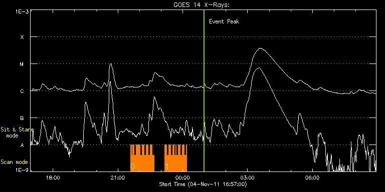 EIS Observation timeline overlay to GOES-Xray curve Code 1" 2" 40" 266" EIS Observations list for this event: STUDY ACRONYM ID DATE OBSERVED DESCRIPTION NOAA# TARGET 0 IUU_SCAN_STEPS_002 | 24897 | 2011/11/04 21:35:04 | Active Region Studies - Dynamics | | Active Region TIMELINE ID DATE OBSERVED FITS FILE XCEN (+W/-E) YCEN (+N/-S) DUR ----------------------------------------------------------------------------------------------------------------- 24897 | 2011/11/04 21:35:04.000 | eis_l0_20111104_213504.fits.gz | -693.84 | 262.30 | 3m35s 24897 | 2011/11/04 21:39:03.000 | eis_l0_20111104_213903.fits.gz | -693.53 | 262.45 | 20s 24897 | 2011/11/04 21:40:09.000 | eis_l0_20111104_214009.fits.gz | -693.38 | 262.22 | 5m23s 24897 | 2011/11/04 21:45:36.000 | eis_l0_20111104_214536.fits.gz | -692.99 | 262.30 | 5m23s 24897 | 2011/11/04 21:51:03.000 | eis_l0_20111104_215103.fits.gz | -692.30 | 262.14 | 4m18s 24897 | 2011/11/04 21:55:44.000 | eis_l0_20111104_215544.fits.gz | -691.91 | 262.22 | 42s 24897 | 2011/11/04 21:56:29.000 | eis_l0_20111104_215629.fits.gz | -691.83 | 262.14 | 5m24s 24897 | 2011/11/04 22:01:56.000 | eis_l0_20111104_220156.fits.gz | -691.29 | 262.07 | 5m24s 24897 | 2011/11/04 22:07:23.000 | eis_l0_20111104_220723.fits.gz | -690.75 | 262.07 | 5m23s 24897 | 2011/11/04 22:12:50.000 | eis_l0_20111104_221250.fits.gz | -690.21 | 262.07 | 5m23s 24897 | 2011/11/04 22:18:16.000 | eis_l0_20111104_221816.fits.gz | -689.67 | 262.07 | 5m24s 24897 | 2011/11/04 22:23:43.000 | eis_l0_20111104_222343.fits.gz | -689.21 | 261.91 | 5m24s 24897 | 2011/11/04 22:29:10.000 | eis_l0_20111104_222910.fits.gz | -688.67 | 261.99 | 5m23s 24897 | 2011/11/04 22:34:37.000 | eis_l0_20111104_223437.fits.gz | -688.13 | 261.91 | 5m23s 1 IUU_SCAN_STEPS_002 | 24898 | 2011/11/04 23:09:43 | Active Region Studies - Dynamics | | Active Region TIMELINE ID DATE OBSERVED FITS FILE XCEN (+W/-E) YCEN (+N/-S) DUR ----------------------------------------------------------------------------------------------------------------- 24898 | 2011/11/04 23:09:43.000 | eis_l0_20111104_230943.fits.gz | -684.73 | 261.52 | 5m23s 24898 | 2011/11/04 23:15:09.000 | eis_l0_20111104_231509.fits.gz | -684.26 | 261.68 | 5m24s 24898 | 2011/11/04 23:20:36.000 | eis_l0_20111104_232036.fits.gz | -683.57 | 261.52 | 5m24s 24898 | 2011/11/04 23:26:03.000 | eis_l0_20111104_232603.fits.gz | -683.10 | 261.52 | 5m23s 24898 | 2011/11/04 23:31:29.000 | eis_l0_20111104_233129.fits.gz | -682.64 | 261.60 | 5m24s 24898 | 2011/11/04 23:36:56.000 | eis_l0_20111104_233656.fits.gz | -682.02 | 261.52 | 3m36s 24898 | 2011/11/04 23:40:55.000 | eis_l0_20111104_234055.fits.gz | -681.56 | 261.45 | 1m25s 24898 | 2011/11/04 23:42:23.000 | eis_l0_20111104_234223.fits.gz | -681.48 | 261.52 | 5m23s 24898 | 2011/11/04 23:47:50.000 | eis_l0_20111104_234750.fits.gz | -680.94 | 261.29 | 5m23s 24898 | 2011/11/04 23:53:17.000 | eis_l0_20111104_235317.fits.gz | -680.40 | 261.37 | 5m23s 24898 | 2011/11/04 23:58:43.000 | eis_l0_20111104_235843.fits.gz | -679.86 | 261.37 | 5m24s 24898 | 2011/11/05 00:04:10.000 | eis_l0_20111105_000410.fits.gz | -679.40 | 261.37 | 5m24s 24898 | 2011/11/05 00:09:37.000 | eis_l0_20111105_000937.fits.gz | -678.86 | 261.29 | 1m25s : Check study information : Download file : View thumbnails For this event, also check for: