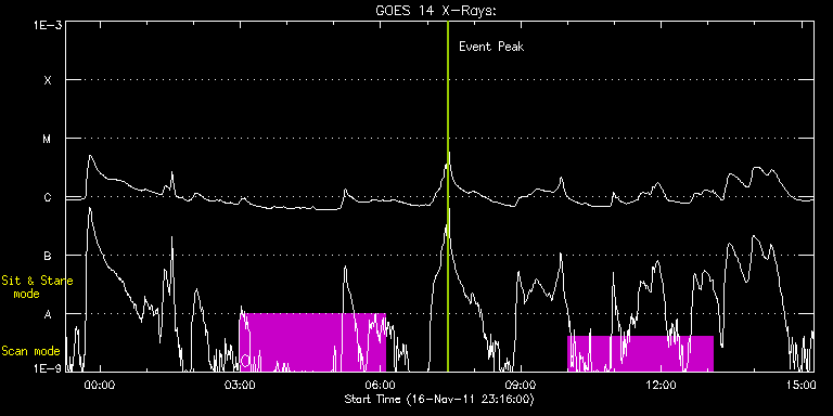EIS Observation timeline overlay to GOES-Xray curve Code 1" 2" 40" 266" EIS Observations list for this event: STUDY ACRONYM ID DATE OBSERVED DESCRIPTION NOAA# TARGET 0 HPW021_VEL_360x512v1 | 24987 | 2011/11/17 03:00:27 | AR observation for EIS-SUMER studies | 1346 | Active Region TIMELINE ID DATE OBSERVED FITS FILE XCEN (+W/-E) YCEN (+N/-S) DUR ----------------------------------------------------------------------------------------------------------------- 24987 | 2011/11/17 03:00:27.000 | eis_l0_20111117_030027.fits.gz | -332.09 | -452.55 | 3h5m42s 1 HPW021_VEL_360x512v1 | 24988 | 2011/11/17 10:00:41 | HOP205 AR study | 1346 | Active Region TIMELINE ID DATE OBSERVED FITS FILE XCEN (+W/-E) YCEN (+N/-S) DUR ----------------------------------------------------------------------------------------------------------------- 24988 | 2011/11/17 10:00:41.000 | eis_l0_20111117_100041.fits.gz | -161.45 | -392.18 | 3h5m42s : Check study information : Download file : View thumbnails For this event, also check for: